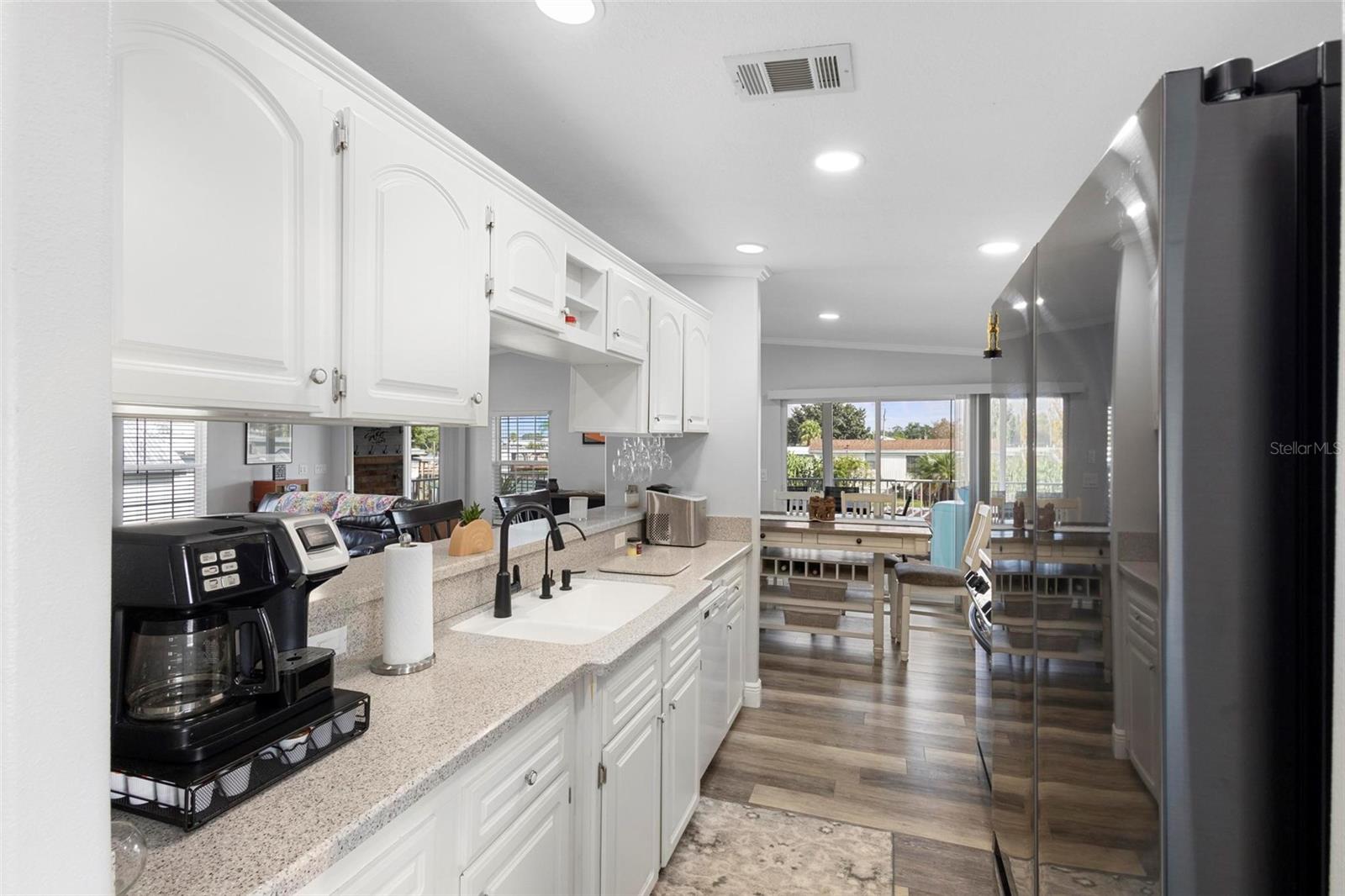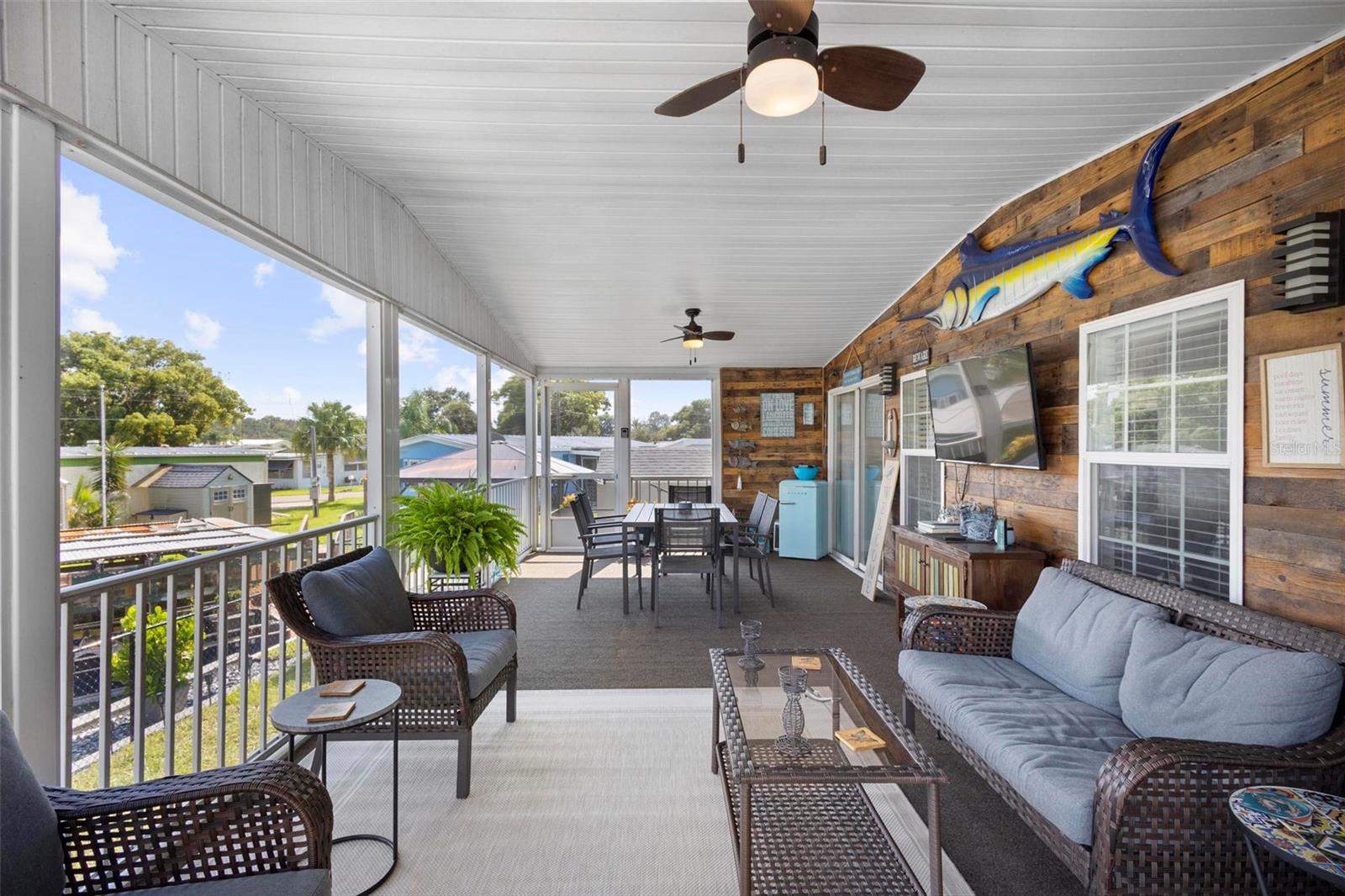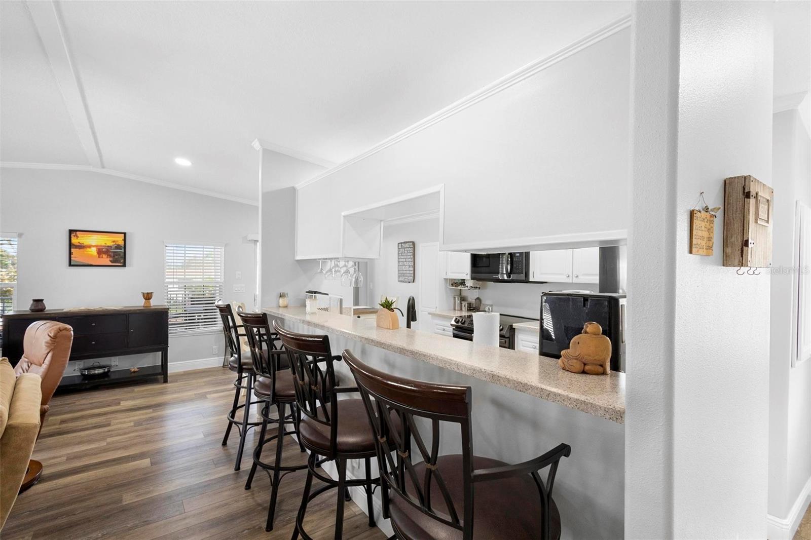 1333 Westland Dr. é uma charmosa casa fabricada à beira-mar localizada em uma comunidade de carrinhos de golfe com mais de 55 anos, situada em um Canal do Lago Dora com 69 pés de beira do lago, oferecendo vistas deslumbrantes da comunidade e da cidade. Esta linda casa foi lindamente atualizada e está pronta para morar. Possui 1.188 pés quadrados, 2 quartos grandes e 2 banheiros completos. A casa também possui um telhado totalmente novo, substituído em 2024, uma garagem para carrinhos de golfe e um galpão. Além disso, foi recentemente pintado por dentro e por fora, com novo piso de pranchas de vinil de luxo. Um lindo teto desmontado com nova iluminação embutida foi adicionado. A casa fabricada em 2006 foi mantida impecavelmente e novos eletrodomésticos em aço inoxidável preto estão incluídos. Os banheiros foram atualizados de forma moderna, sendo o banheiro de hóspedes totalmente novo. A lareira a lenha foi recentemente pintada e está em excelentes condições de funcionamento. Imagine tomar seu chá ou café enquanto aprecia a vista, o nascer do sol, os fogos de artifício, o lançamento do ônibus e muito mais na espaçosa varanda dos fundos com vista para o Lago Dora. Aproveite a pequena piscina privada acima do solo e o ELEVADOR DE BARCO de propriedade privada para o seu barco! Esta propriedade é imperdível, então agende seu tour privado antes que seja tarde demais. A propriedade também possui uma baixa taxa HOA de US$ 23. Curta viagem de carrinho de golfe até o centro de Tavares e não muito longe da bela cidade de Monte Dora.