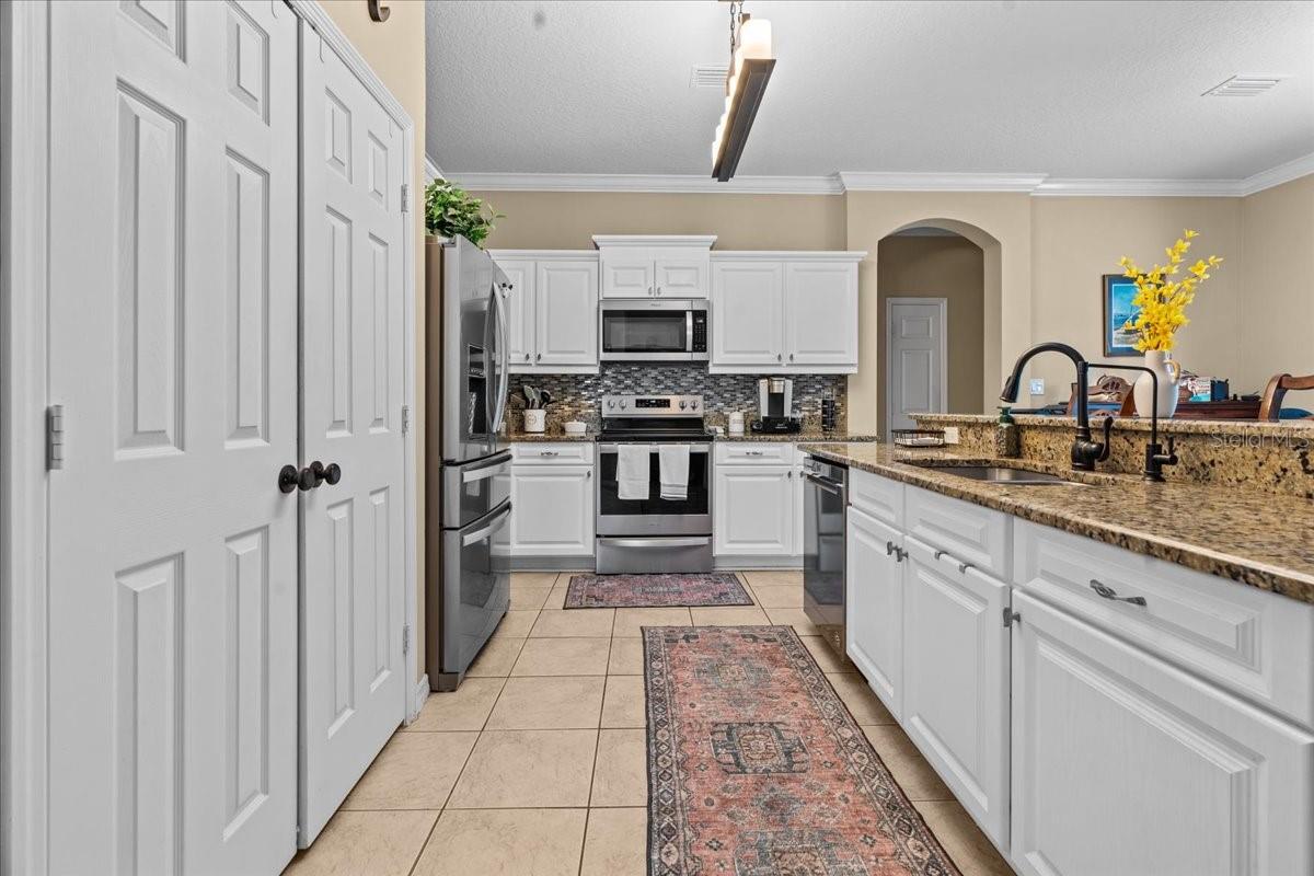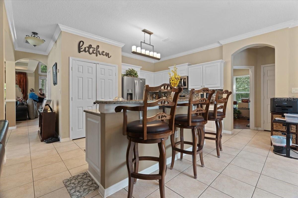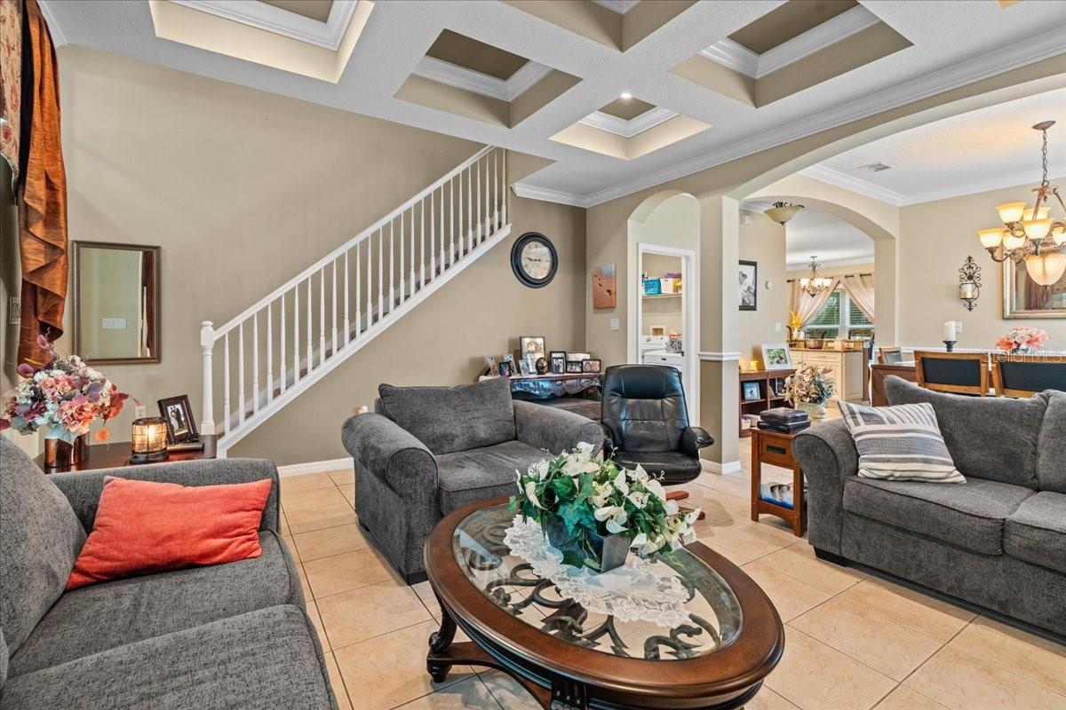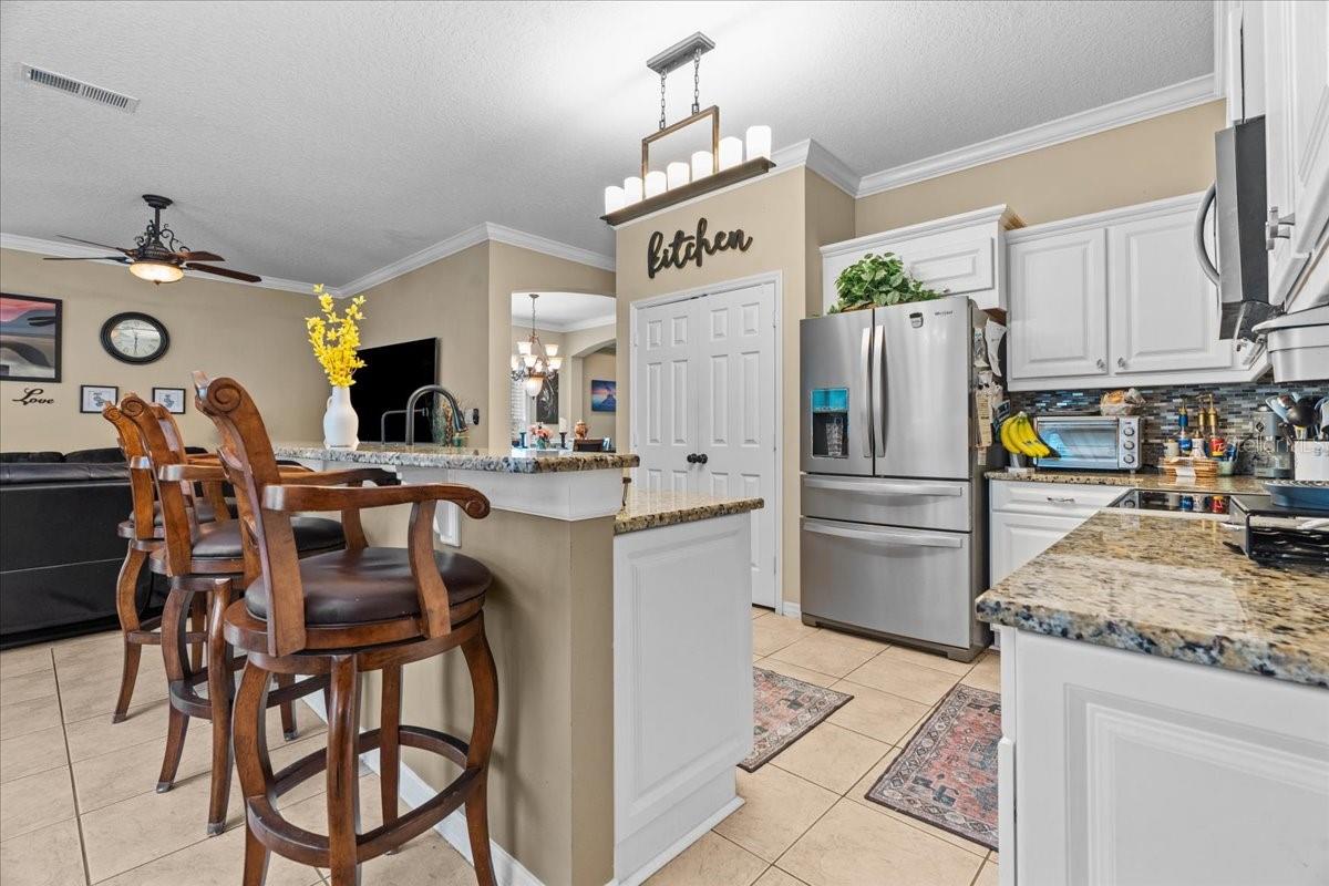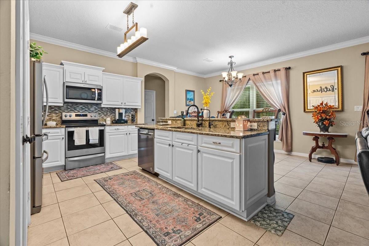 Esta casa deslumbrante e meticulosamente mantida na procurada comunidade à beira-mar de Lake Saunders Pointe, em Tavares, certamente deixará uma impressão duradoura! Pronta para morar, esta residência de 4 quartos, 3 banheiros e 2 andares apresenta características de luxo e um layout cuidadoso por toda parte. Ao entrar, você descobrirá espaços distintos, incluindo uma sala de jantar formal, sala de estar, sala de família e um loft com bar no andar de cima - ideal para privacidade ou para receber convidados. A sala possui teto em caixotões com iluminação integrada e tetos altos de 2,7 metros. A cozinha é uma delícia para o chef, com armários atualizados, bancadas de granito, eletrodomésticos de aço inoxidável, balcão e uma charmosa copa. A sala familiar adjacente se abre para uma varanda nos fundos, perfeita para relaxar ou organizar reuniões. Um quarto no andar de baixo, facilmente usado como escritório ou escritório, está convenientemente localizado próximo a um banheiro completo. No andar de cima, você encontrará mais três quartos, incluindo a espaçosa suíte master. O master é um verdadeiro retiro com portas duplas, um closet grande e um luxuoso banheiro privativo com bancada de granito, pia dupla, chuveiro separado e banheira de jardim. As características adicionais incluem tratamentos de janela, luminárias de design, garagem para 2 carros e uma despensa interna com armazenamento extra. As comodidades da comunidade são abundantes e incluem manutenção do gramado, uso de sprinklers, doca para barcos e rampas e acesso ao clube de recreação - tudo situado no sereno lago privado de 287 acres de Saunders. As atualizações recentes incluem um novo telhado e ar condicionado em 2019, armários de cozinha em 2020, amaciante de água e osmose reversa embaixo da pia em 2022 e novas janelas em 2022. Máquina de lavar e secar roupa estão incluídas!