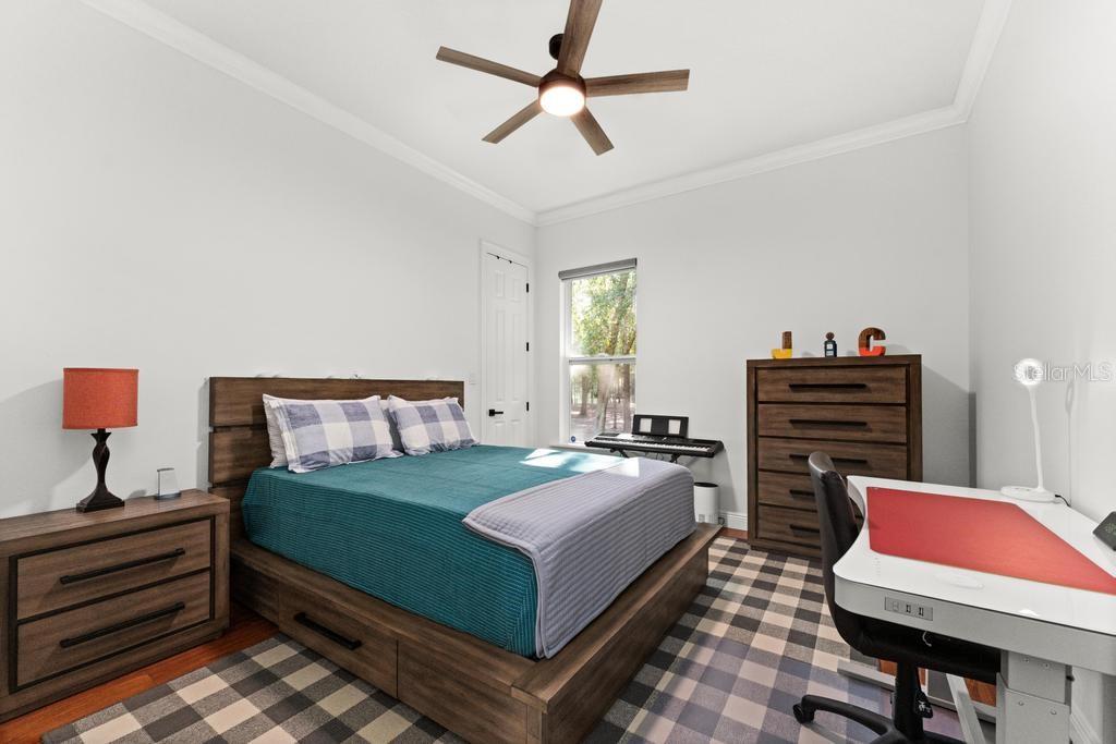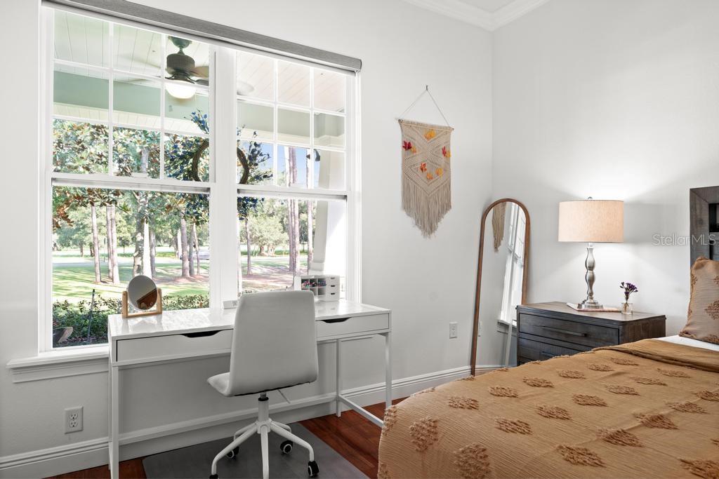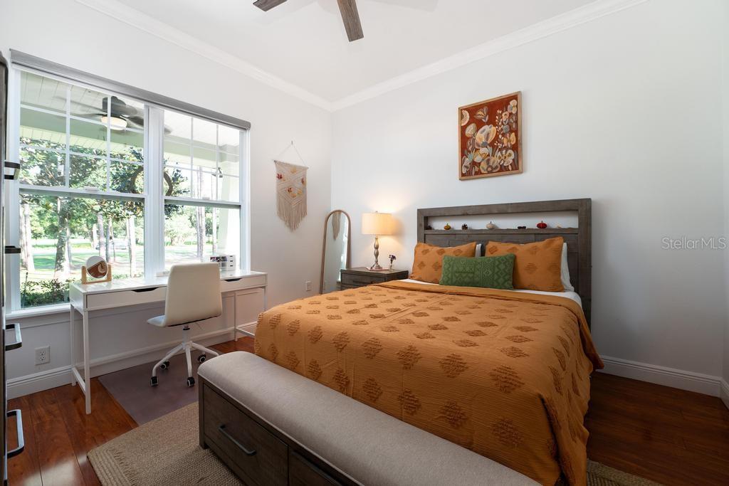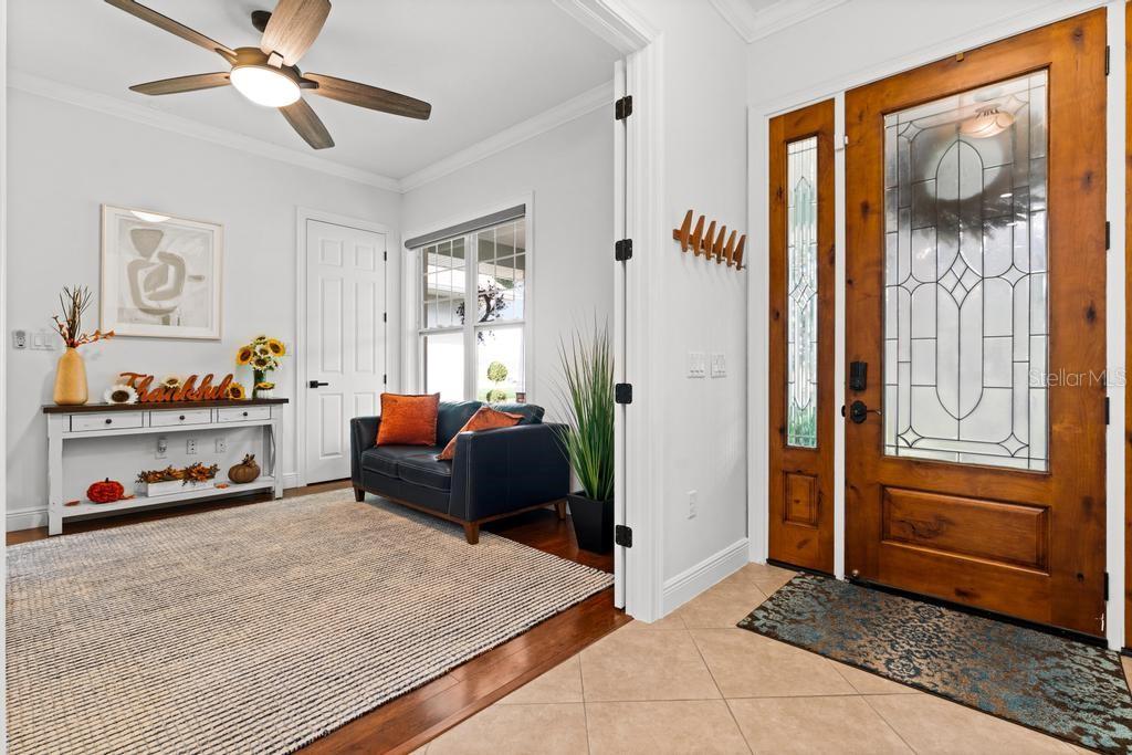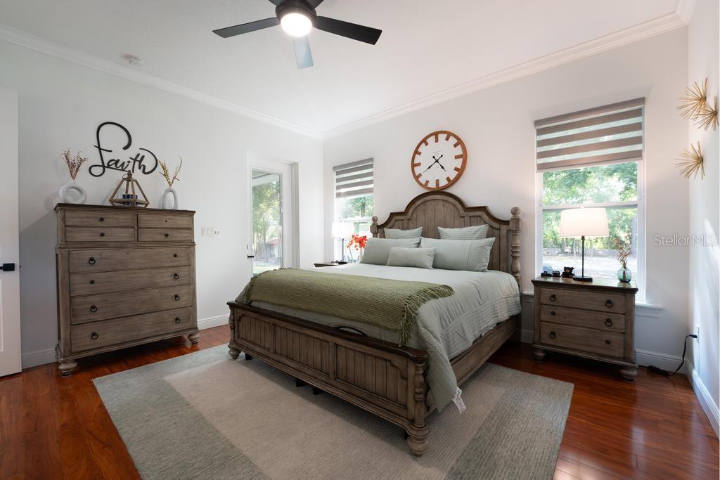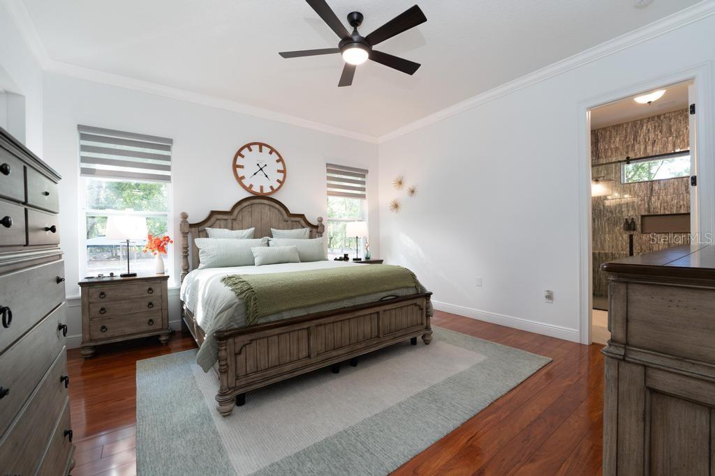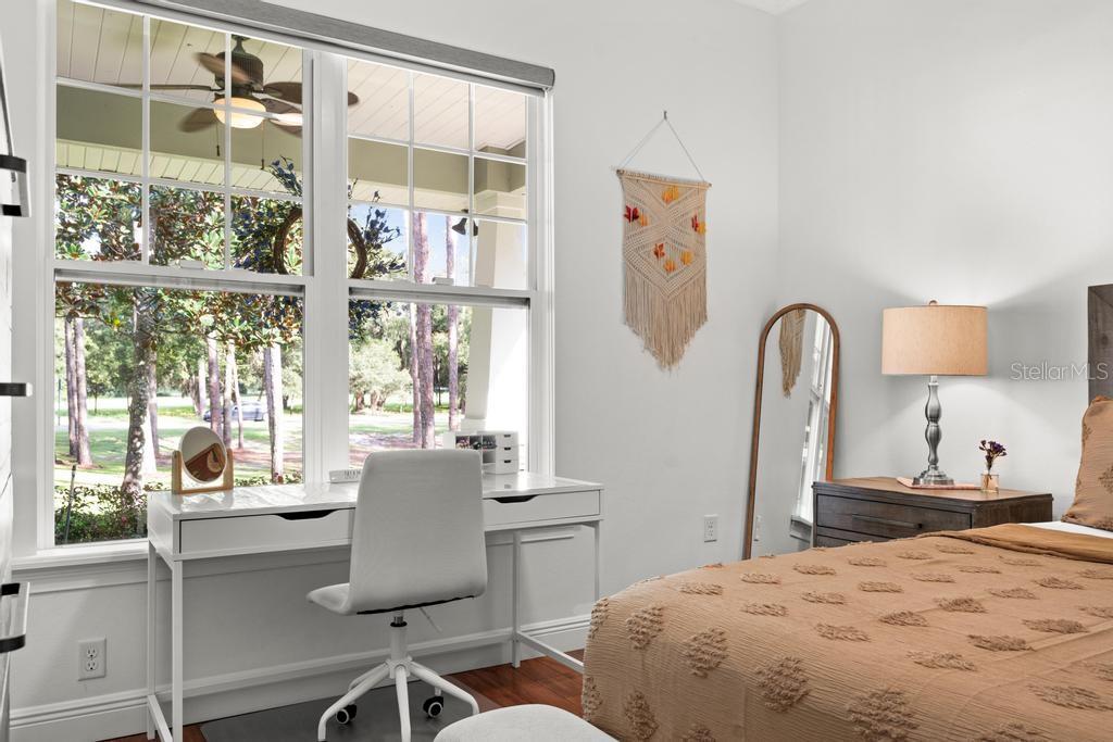 Bem-vindo à casa dos seus sonhos no exclusivo Beauclaire Ranch Club! À medida que você se aproxima, a calçada de pavimentação e o caminho encantador o guiam até uma deslumbrante varanda frontal adornada com colunas com detalhes em pedra, tetos convidativos de tábuas de madeira e ventiladores de teto para mantê-lo fresco. Desfrute de vistas serenas do Lago Grand Oak a partir da sua varanda, perfeitas para noites relaxantes. Entre pela elegante porta frontal de vidro e madeira com chumbo em uma planta aberta que conecta perfeitamente a sala de estar, a área de jantar e a cozinha. O espaço flui facilmente para uma área de estar protegida, completa com teto de tábuas de madeira e vistas panorâmicas do oásis de seu quintal com piscina/spa. A sala de estar possui uma impressionante lareira elétrica Fire & Ice com controle remoto, de mármore caído do chão ao teto, criando um ponto focal aconchegante. Sua cozinha gourmet é uma delícia para o chef, com backsplash de mármore caído, pia de fazenda, eletrodomésticos de aço inoxidável e um bar de ilha de tamanho generoso com pia de vegetais. Já a área de serviço também inclui pias duplas e amplos armários para arrumação. Retire-se para o luxuoso banheiro master, completo com um espaçoso chuveiro duplo, closets para ele e para ela e penteadeiras. Todos os quartos estão equipados com closets e piso de madeira, e cada banheiro possui elegantes pias com tampo de granito. No andar de cima, você encontrará um bônus/quarto versátil acarpetado com banheiro completo e armário grande, perfeito para hóspedes ou um retiro privado. A casa foi pensada para a eficiência energética, contando com barreira térmica no sótão, isolamento extra nas paredes e esquentador com bomba de calor na ampla garagem. Apoiando-se em uma reserva natural serena, esta casa oferece um refúgio tranquilo enquanto ainda faz parte de uma comunidade vibrante. Não perca a oportunidade de personalizar esta propriedade requintada!