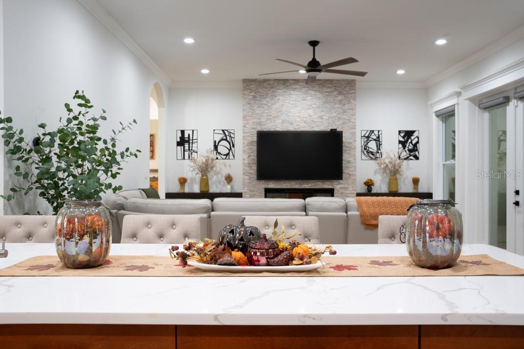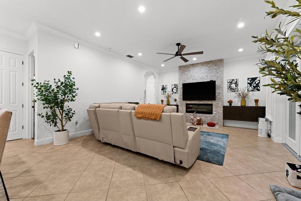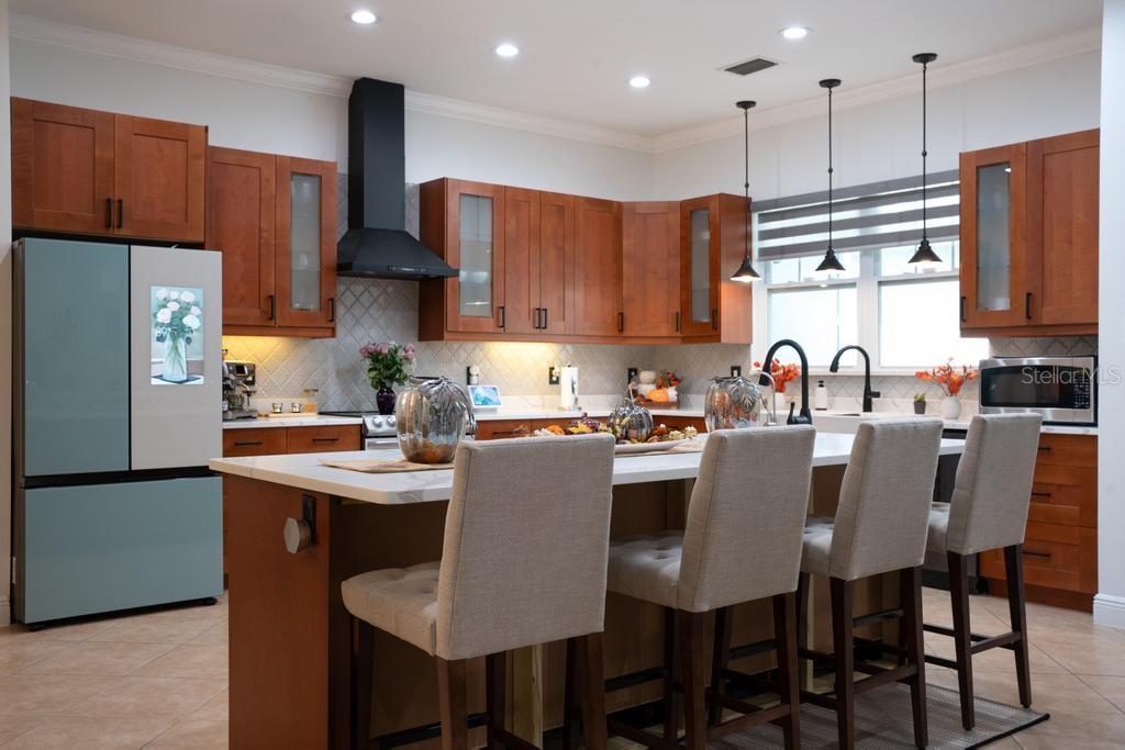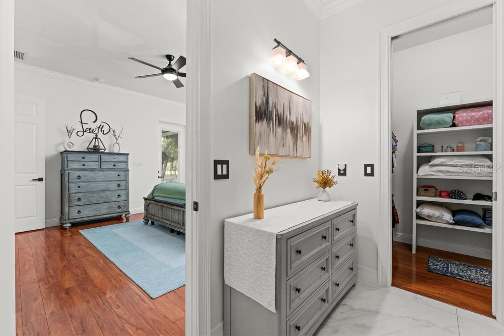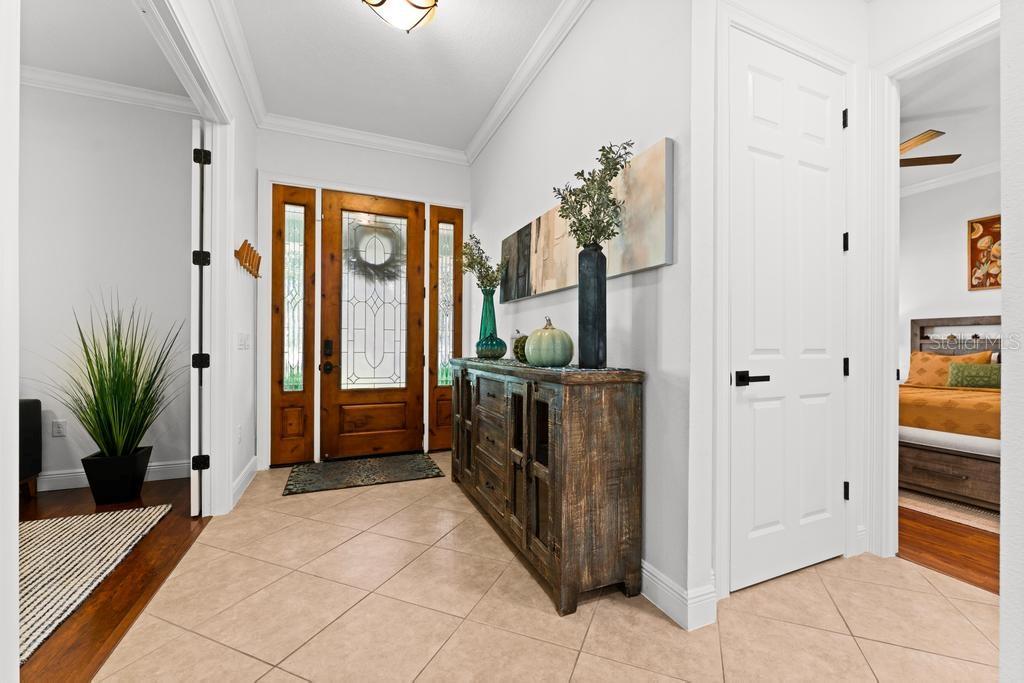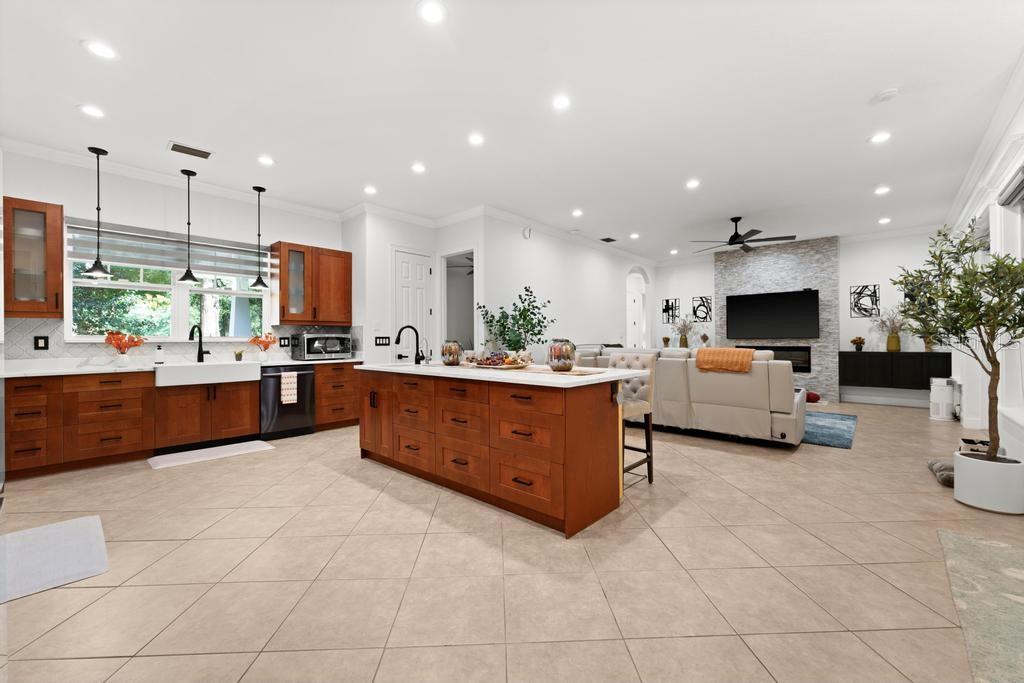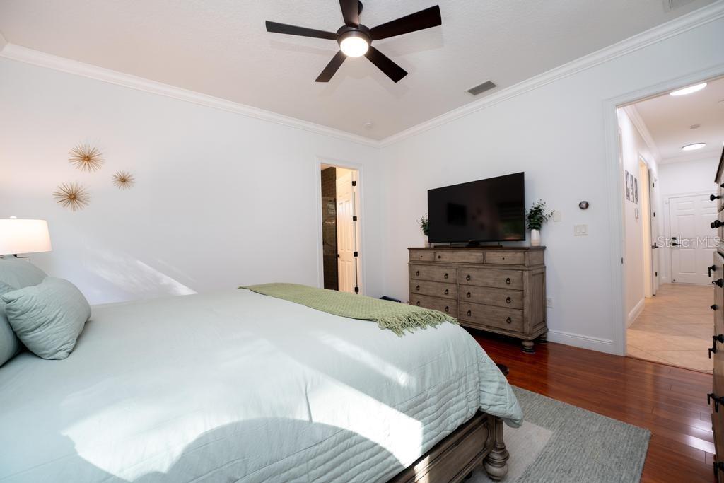 Bem-vindo à casa dos seus sonhos no exclusivo Beauclaire Ranch Club! À medida que você se aproxima, a calçada de pavimentação e o caminho encantador o guiam até uma deslumbrante varanda frontal adornada com colunas com detalhes em pedra, tetos convidativos de tábuas de madeira e ventiladores de teto para mantê-lo fresco. Desfrute de vistas serenas do Lago Grand Oak a partir da sua varanda, perfeitas para noites relaxantes. Entre pela elegante porta frontal de vidro e madeira com chumbo em uma planta aberta que conecta perfeitamente a sala de estar, a área de jantar e a cozinha. O espaço flui facilmente para uma área de estar protegida, completa com teto de tábuas de madeira e vistas panorâmicas do oásis de seu quintal com piscina/spa. A sala de estar possui uma impressionante lareira elétrica Fire & Ice com controle remoto, de mármore caído do chão ao teto, criando um ponto focal aconchegante. Sua cozinha gourmet é uma delícia para o chef, com backsplash de mármore caído, pia de fazenda, eletrodomésticos de aço inoxidável e um bar de ilha de tamanho generoso com pia de vegetais. Já a área de serviço também inclui pias duplas e amplos armários para arrumação. Retire-se para o luxuoso banheiro master, completo com um espaçoso chuveiro duplo, closets para ele e para ela e penteadeiras. Todos os quartos estão equipados com closets e piso de madeira, e cada banheiro possui elegantes pias com tampo de granito. No andar de cima, você encontrará um bônus/quarto versátil acarpetado com banheiro completo e armário grande, perfeito para hóspedes ou um retiro privado. A casa foi pensada para a eficiência energética, contando com barreira térmica no sótão, isolamento extra nas paredes e esquentador com bomba de calor na ampla garagem. Apoiando-se em uma reserva natural serena, esta casa oferece um refúgio tranquilo enquanto ainda faz parte de uma comunidade vibrante. Não perca a oportunidade de personalizar esta propriedade requintada!