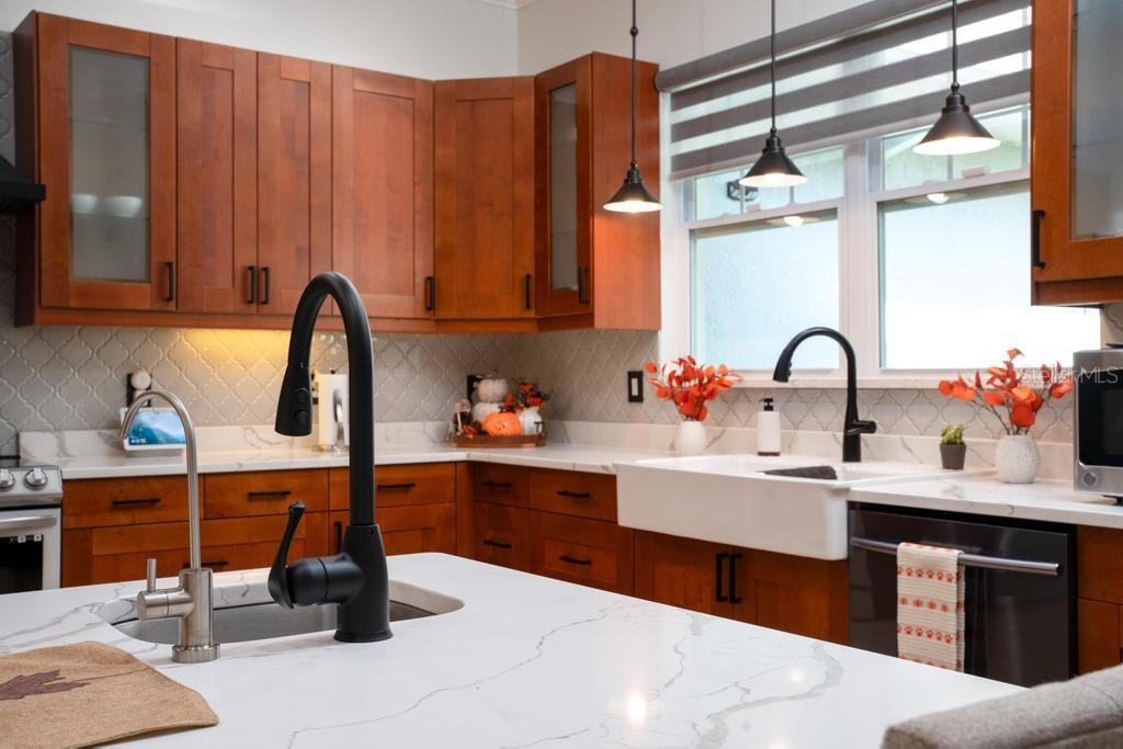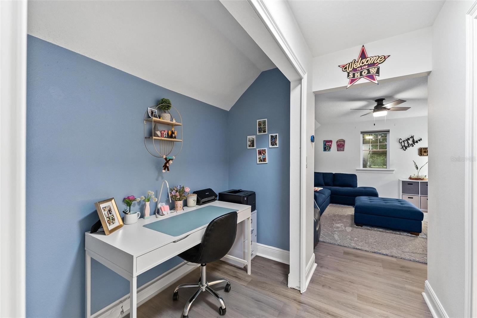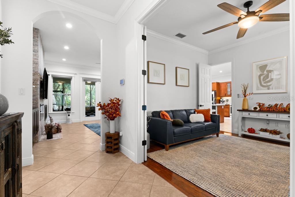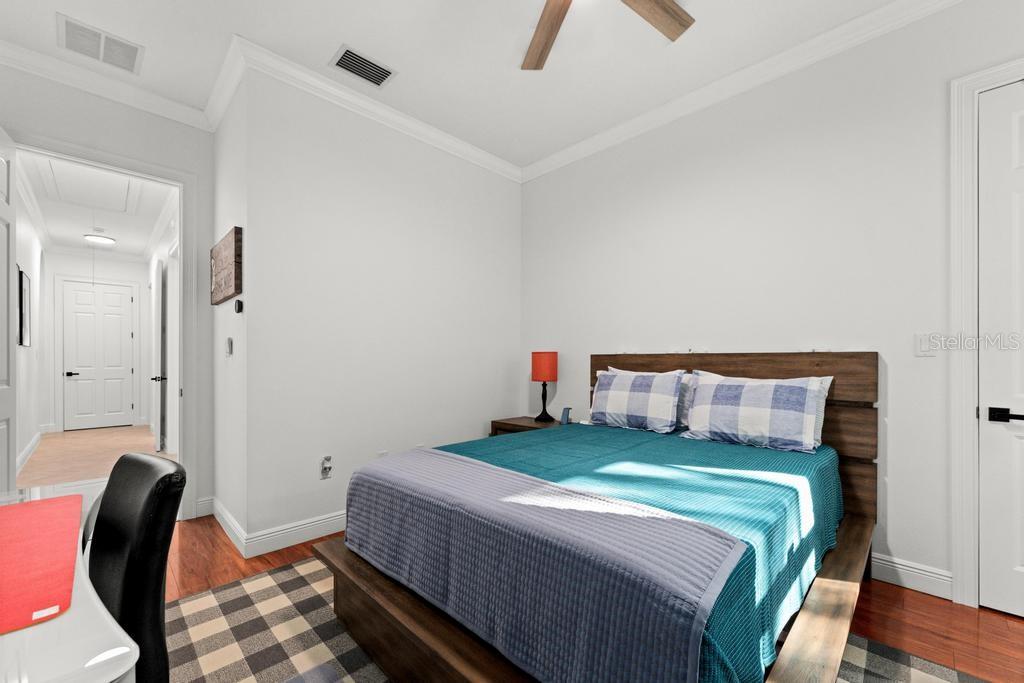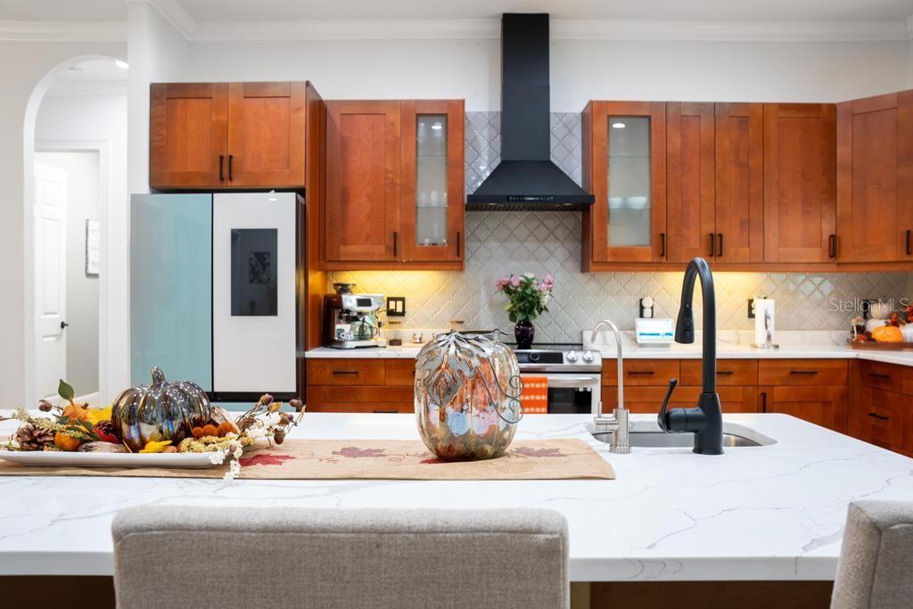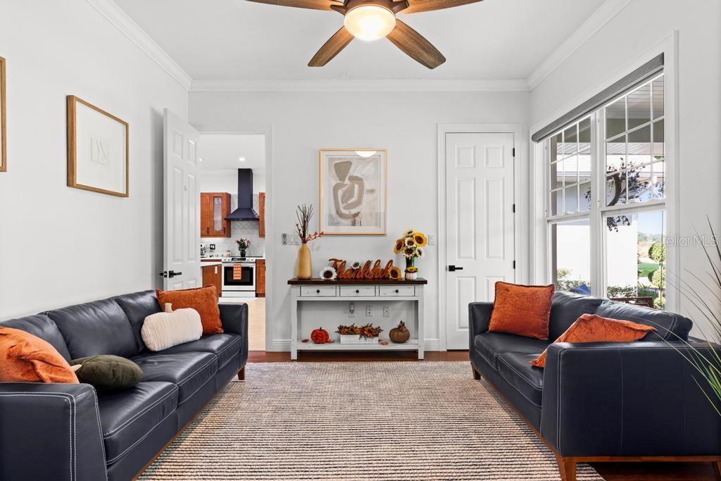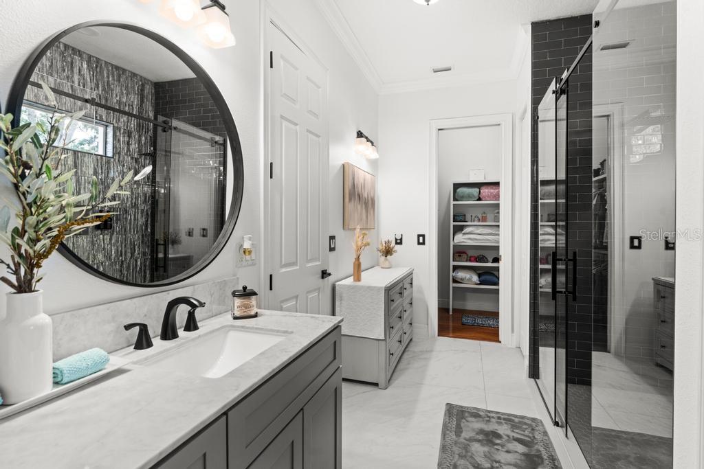 Bem-vindo à casa dos seus sonhos no exclusivo Beauclaire Ranch Club! À medida que você se aproxima, a calçada de pavimentação e o caminho encantador o guiam até uma deslumbrante varanda frontal adornada com colunas com detalhes em pedra, tetos convidativos de tábuas de madeira e ventiladores de teto para mantê-lo fresco. Desfrute de vistas serenas do Lago Grand Oak a partir da sua varanda, perfeitas para noites relaxantes. Entre pela elegante porta frontal de vidro e madeira com chumbo em uma planta aberta que conecta perfeitamente a sala de estar, a área de jantar e a cozinha. O espaço flui facilmente para uma área de estar protegida, completa com teto de tábuas de madeira e vistas panorâmicas do oásis de seu quintal com piscina/spa. A sala de estar possui uma impressionante lareira elétrica Fire & Ice com controle remoto, de mármore caído do chão ao teto, criando um ponto focal aconchegante. Sua cozinha gourmet é uma delícia para o chef, com backsplash de mármore caído, pia de fazenda, eletrodomésticos de aço inoxidável e um bar de ilha de tamanho generoso com pia de vegetais. Já a área de serviço também inclui pias duplas e amplos armários para arrumação. Retire-se para o luxuoso banheiro master, completo com um espaçoso chuveiro duplo, closets para ele e para ela e penteadeiras. Todos os quartos estão equipados com closets e piso de madeira, e cada banheiro possui elegantes pias com tampo de granito. No andar de cima, você encontrará um bônus/quarto versátil acarpetado com banheiro completo e armário grande, perfeito para hóspedes ou um retiro privado. A casa foi pensada para a eficiência energética, contando com barreira térmica no sótão, isolamento extra nas paredes e esquentador com bomba de calor na ampla garagem. Apoiando-se em uma reserva natural serena, esta casa oferece um refúgio tranquilo enquanto ainda faz parte de uma comunidade vibrante. Não perca a oportunidade de personalizar esta propriedade requintada!
