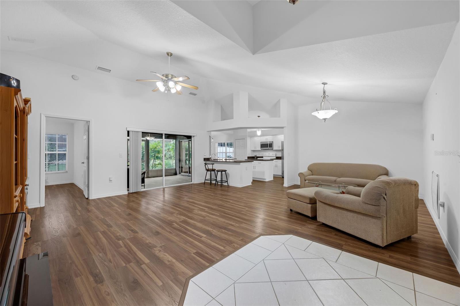 Uma ou mais fotos foram virtualmente encenadas. Novo Telhado (2024) Novo AC (2021)! Bem-vindo a esta casa lindamente conservada de 4 quartos e 3 banheiros, que oferece pouco menos de 2.000 pés quadrados de espaço bem projetado. No interior, encontrará uma disposição aberta e arejada, realçada por tectos abobadados, que criam um ambiente luminoso e acolhedor. A cozinha possui uma ilha central, bancadas em granito, uma espaçosa bancada para café da manhã e uma charmosa copa, perfeita para refeições casuais e divertidas. A suíte principal oferece um retiro tranquilo, com closet embutido e closet. O banheiro privativo está equipado com pia dupla e uma luxuosa banheira de imersão, ideal para relaxar após um longo dia. Os quartos adicionais têm dimensões generosas e muita luz natural e espaço de armazenamento. Saia para desfrutar de uma varanda com tela, perfeita para tomar café da manhã ou relaxar à noite sob a brisa da Flórida. Localizado em um condomínio desejável com clubhouse, piscina comunitária, academia, calçadas e espaços verdes, todos com baixo HOA mensal. Idealmente situada entre o Lago Harris e o Lago Eustis, esta casa fica a poucos minutos da Cadeia de Lagos, oferecendo inúmeras oportunidades para passear de barco, pescar e desfrutar do ar livre. Não perca esta oportunidade! Agende sua exibição privada hoje mesmo!