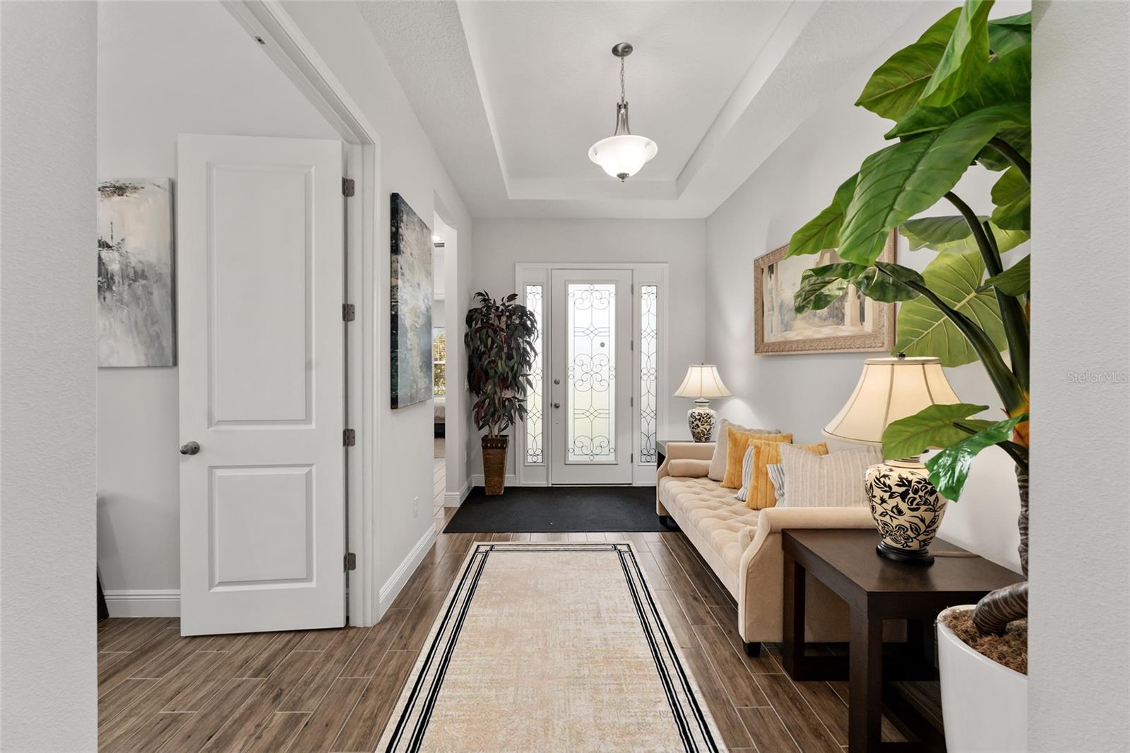 Bem-vindo a esta casa deslumbrante no pitoresco condomínio fechado de Deer Island Country Club! Localizada a apenas 64 km a noroeste de Orlando, esta comunidade de golfe de 18 buracos está situada entre o Lago Dora e o Lago Beauclair, oferecendo vistas tranquilas do lago e do campo de golfe. Esta residência de 3 quartos e 2,5 banheiros inclui um escritório, uma garagem grande para dois carros e espaço extra para seu carrinho de golfe. Entre para encontrar uma variedade de atualizações e toques náuticos, com piso de cerâmica e carpete aconchegante nos quartos. A cozinha serve como o coração da casa, com uma ilha enorme, todos os eletrodomésticos em aço inoxidável, armários brancos e um backsplash atraente que adiciona um toque moderno. O espaçoso quarto principal oferece dois closets, pias duplas, uma elegante banheira de imersão e um chuveiro grande, criando um retiro semelhante a um spa. Desfrute do pôr do sol e das vistas deslumbrantes da área da piscina, perfeita para relaxar e se divertir. Com a sua localização privilegiada e características excepcionais, esta casa é imperdível!