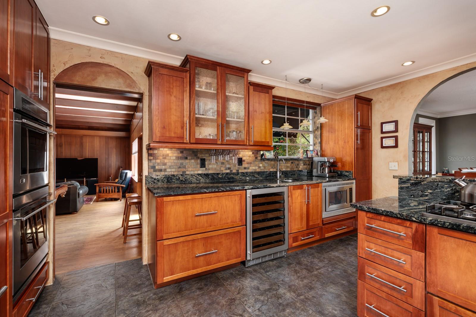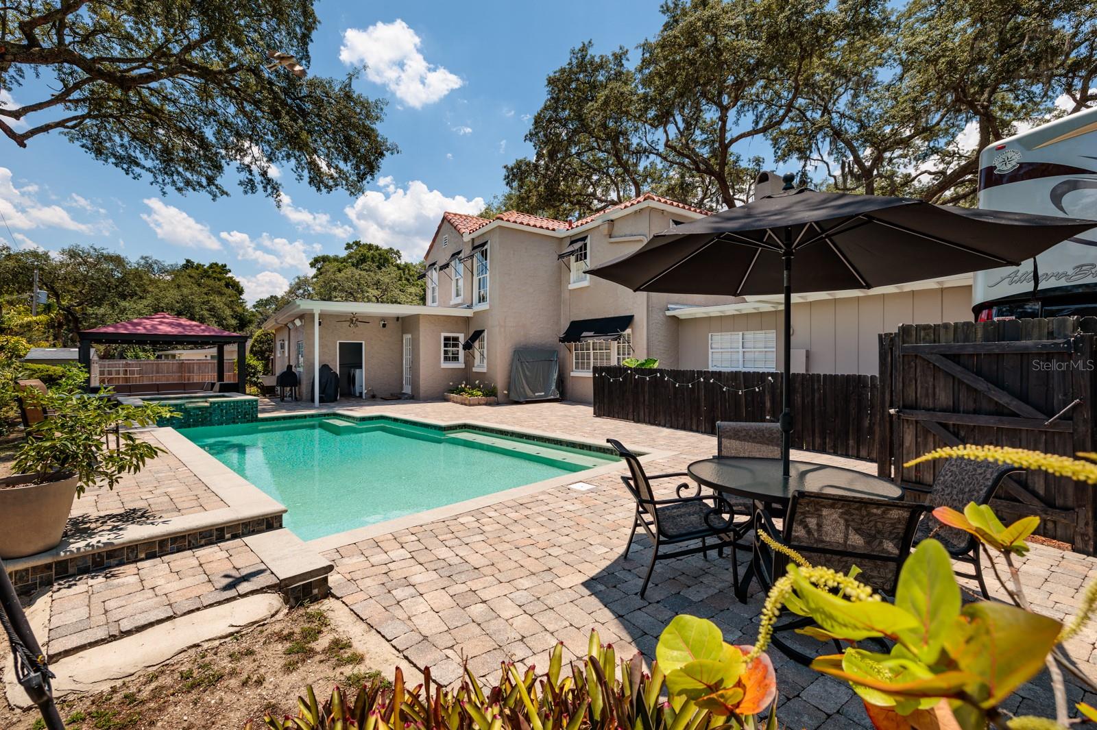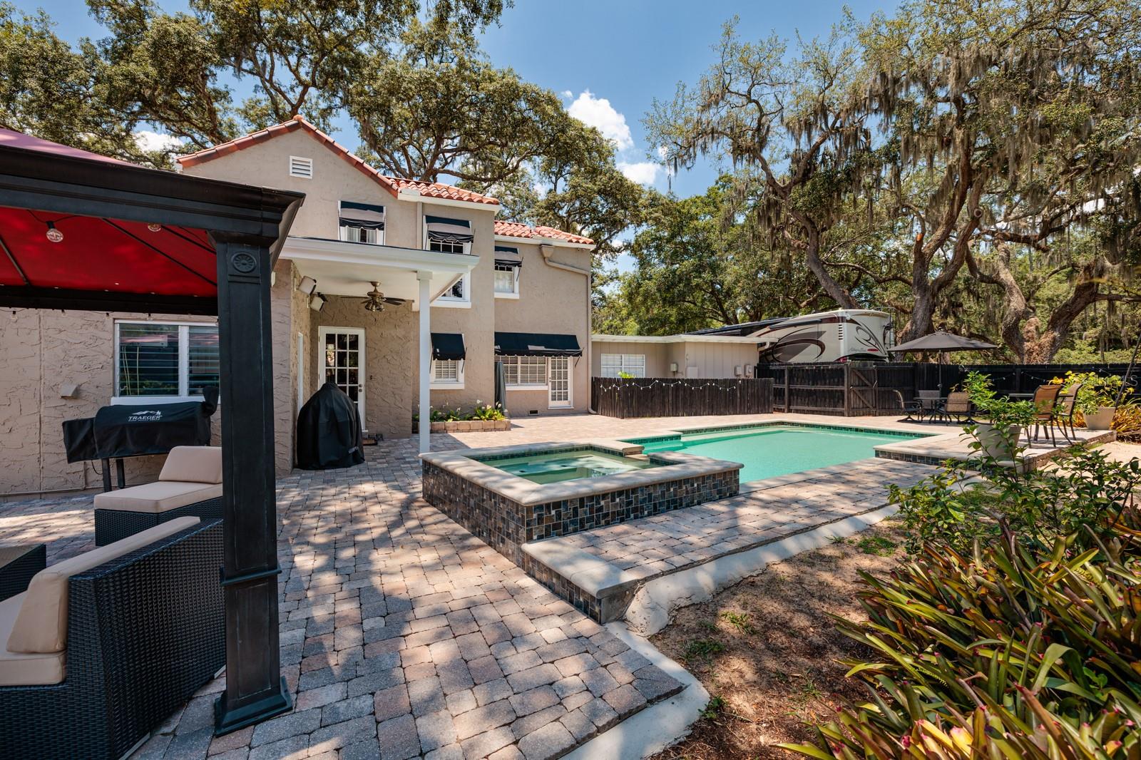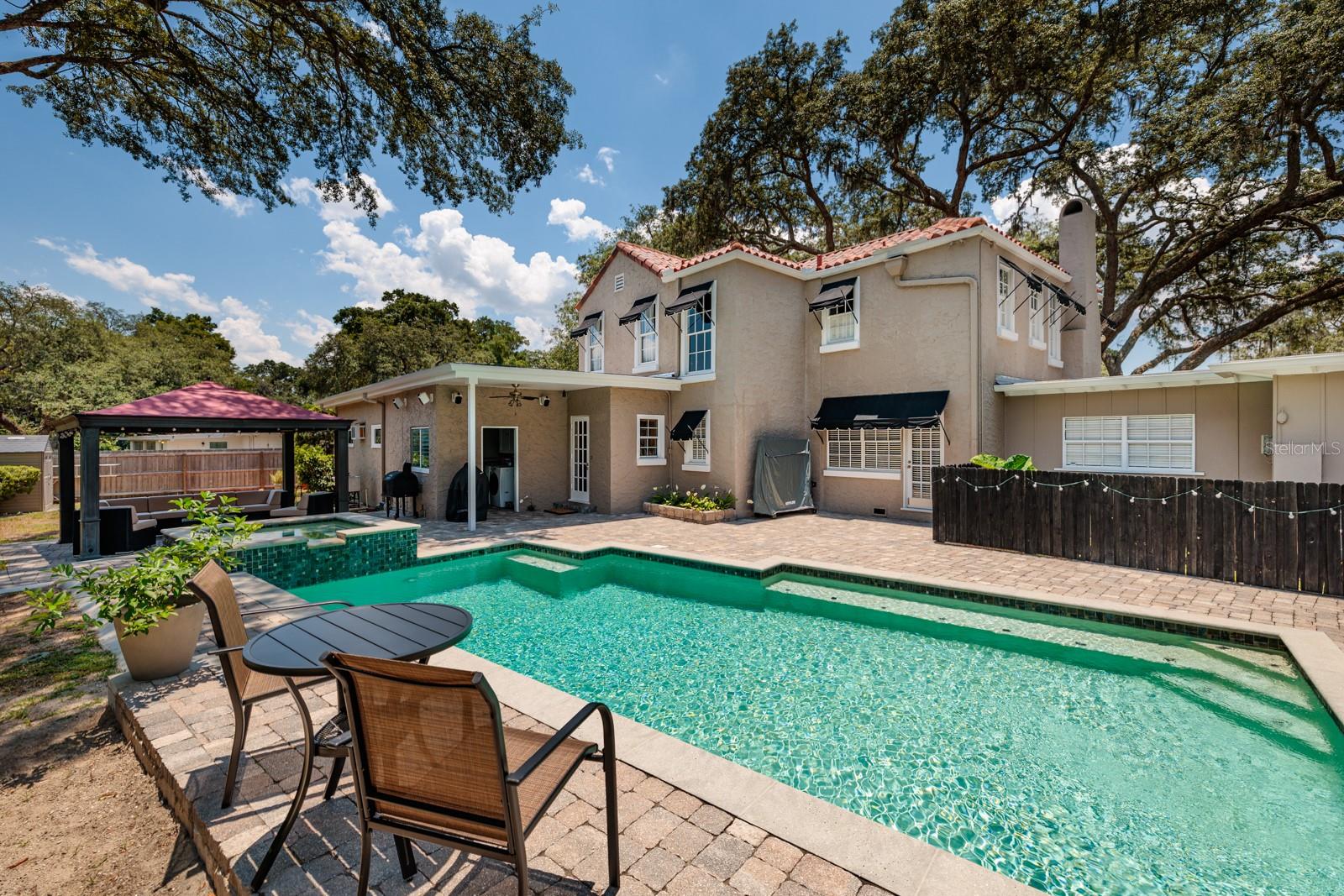 Uma casa como esta, com uma mistura perfeita de história cuidadosamente preservada e conveniência moderna, raramente chega ao mercado. Conhecida como a histórica John Perry Home, esta obra-prima do Renascimento Mediterrâneo de 1926 foi projetada pelo renomado arquiteto Dwight James Baum, que também projetou a Mansão Ringling em Sarasota e vários outros edifícios listados no Registro Nacional de Locais Históricos. Os pisos originais de madeira, a porta da frente em arco, o piso de porcelanato do banheiro, as janelas e lareiras originais foram meticulosamente restaurados à mão pelos proprietários nos últimos 25 anos. Os hóspedes podem saborear vinho no balcão de café da manhã enquanto preparam um banquete usando o fogão Viking a gás de seis bocas, fornos duplos embutidos, geladeira com armário e refrigerador de vinho com 52 garrafas. A ampla sala de jantar, inusitada para a época, é o local perfeito para jantares mais formais. Ao longo dos anos, a casa foi ampliada com uma grande sala de recreação grande o suficiente para uma mesa de sinuca e muitos móveis. Do outro lado da casa há um grande escritório/sala de fitness para trabalhar em casa. O banho principal foi totalmente remodelado. À medida que avançamos para fora, há uma luxuosa piscina aquecida e spa, cercada por 1.500 pés quadrados de pavimentação e ladeada por um mirante para fornecer sombra do calor do verão. A piscina, que atualmente é aquecida com propano, é canalizada para energia solar se os novos proprietários decidirem fazê-lo. Outras atualizações incluem o telhado de telha cilíndrica (2014) e todos os telhados planos de betume (julho de 2023), duas unidades centrais de CA, uma no andar de cima (2024) e uma no andar de baixo (junho de 2016) e AC/Aquecedor de sala familiar (fevereiro de 2024), Rheem de 50 galões. aquecedor de água quente (2019), bem como encanamento e eletricidade totalmente atualizados. Guarde seu RV, barco e outros brinquedos modernos na porta RV de 38 pés completa com serviço de 30 A. Ao contrário de muitas casas históricas, esta beleza tem muito espaço de armazenamento por toda parte.