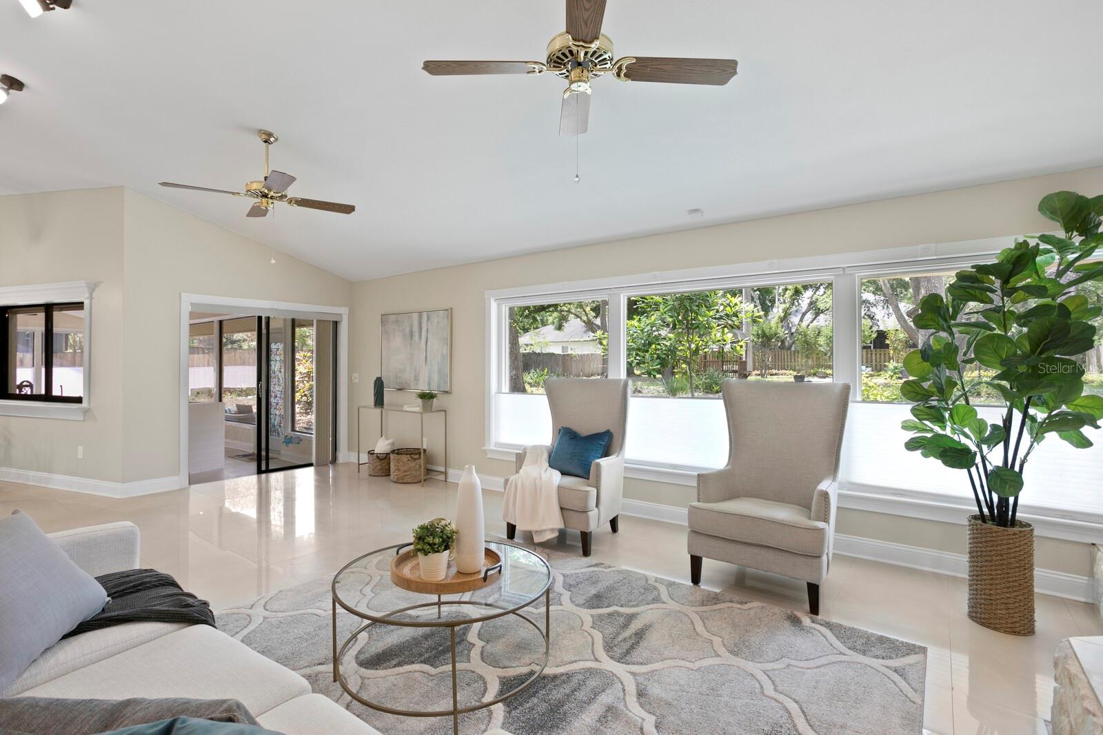 A casa é na verdade 2745 pés quadrados, com uma sala de bônus fechada de 603 pés quadrados. Embora a cozinha e os banheiros sejam todos originais, existem muitas possibilidades para atualizar esta casa. Há muito espaço de vida e divertido que inclui uma cozinha grande aberta ao quarto da família e ao recanto da cozinha, além de acesso à divertida sala de bônus. A área de entretenimento da sala de bônus tem uma abundância de janelas com vistas do vasto quintal e gazebo. Os 4 quartos têm um layout dividido com 2 em cada lado da casa. O quarto e a sala de estar primários têm portas deslizantes de vidro que se abrem para a sala de bônus, fazendo com que o layout desta casa flua livre e confortavelmente. Uma área de jantar fica fora do vestíbulo quando você entra na casa. Os recursos adicionais desta casa incluem uma garagem de 3 carros com uma garagem espaçosa, pátio de entrada, abundância de espaço no armário, tinta fresca e muito mais. O telhado foi instalado em 2006. A taxa HOA é de apenas US $ 238 por ano. Associações opcionais com taxa: TT Rec. Center possui piscina, quadras de tênis de barro, pickleball interno/externo, academia, ginásio, BB, RB e muito mais. O TT Golf and Country Club (com piscina) tem associações sociais e de golfe. Os parques, o lançamento do Riverwalk e o Public Boat Lanwn estão localizados perto da USF e apenas 20 minutos para o centro de Tampa. Veja a excursão por passo a passo aqui https://player.vimeo.com/video/1082397293