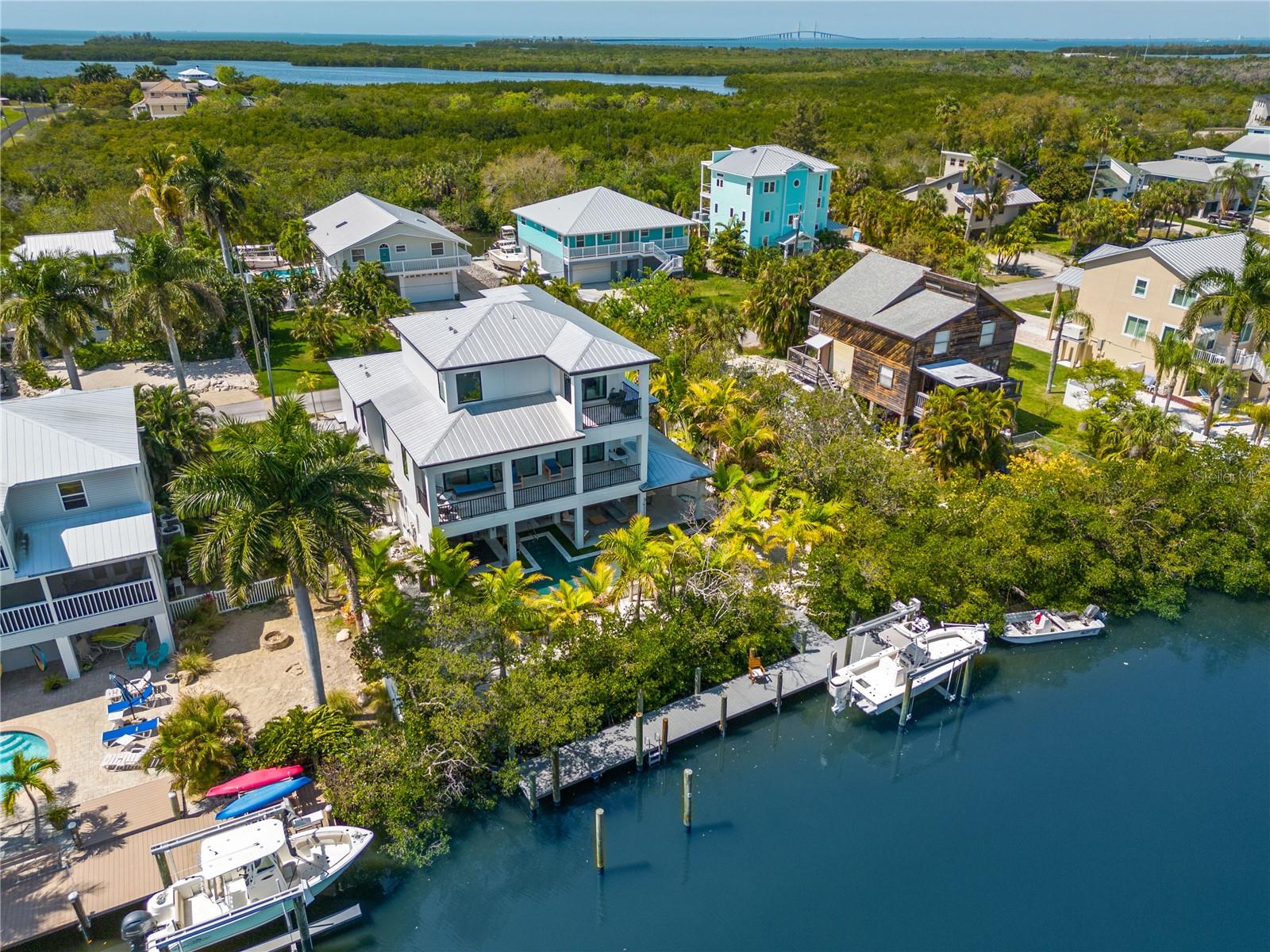 Bem-vindo à idílica Ilha Terra Ceia. Apresentada ao mercado aberto pela primeira vez desde sua conclusão em 2020, esta obra-prima contemporânea traz luxos modernos a este amado bairro da “Velha Flórida”. Construída com o mais alto padrão, esta casa com piscina de três andares combina perfeitamente espaços internos e externos com janelas de impacto por toda parte, portas deslizantes de impacto e mais de 2.500 pés quadrados de espaço de varanda/lanai! Ao passar pelo portão da frente, você é recebido por uma ampla varanda coberta com vista para a piscina privativa e o quintal com Xeriscape. Todos os espaços exteriores foram afixados com um sistema repelente de insectos ambientalmente seguro para o máximo conforto sempre que desejar desfrutar do ar livre. 85 pés de frente para o canal e uma doca de 70 pés com elevador de barco de 10.000 libras, água e eletricidade conectadas permitem que o velejador tenha a água na ponta dos dedos. Há também um segundo conjunto de amarrações que pode ser finalizado para atender às necessidades da embarcação do comprador! O primeiro andar é completado por um espaço de escritório com mini-split A/C e lavabo/piscina. Esta espaçosa casa tem uma planta aberta para entreter os hóspedes, piso de cerâmica para baixa manutenção e oferece vistas infinitas. O segundo andar possui: dois grandes quartos secundários, cada um com seu próprio closet, banheiro completo e lavabo e uma ampla lavanderia. Uma verdadeira cozinha de Chef; adornado com eletrodomésticos JennAir, incluindo fogão a gás, forno, geladeira/freezer embutido em armários personalizados. O terceiro nível é inteiramente dedicado à suíte principal e um hall de entrada para o elevador privativo. Oferecendo vistas do Sunshine Skyway ao noroeste e do Canal/Bayou ao sul e leste, a suíte principal oferece o retiro privado perfeito para relaxar. Um banheiro principal de design que faz sonhos, incluindo chuveiro triplo, banheira grande com vista, adega refrigerada pessoal e pia separada. Passe pelas portas deslizantes até um enorme closet principal equipado com gavetas embutidas e armazenamento adicional. Uma varanda privada com vista para o canal oferece o local perfeito para relaxar e ter um último gostinho do paraíso durante o dia! Idealmente localizado a poucos minutos do Sunshine Skyway, com fácil acesso ao corredor I-75/275, São Petersburgo, Tampa e Sarasota/Bradenton! Para aumentar a tranquilidade, um gerador foi adicionado à casa em 2023. Não deixe esta oportunidade única passar por você!