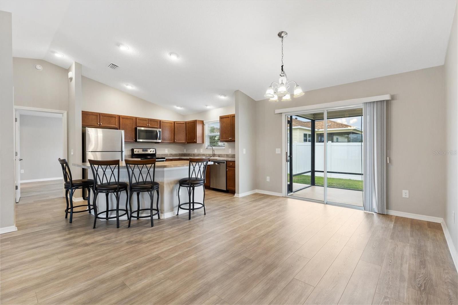 Bem-vindo a esta casa meticulosamente mantida de 3 quartos e 2 banheiros, aninhada na comunidade altamente procurada das aldeias, na Flórida! Projetado para estilo e funcionalidade, esta casa possui pisos de prancha de vinil de luxo por toda parte, proporcionando uma aparência calorosa e elegante com o benefício adicional da durabilidade e fácil manutenção-perfeita para residentes em tempo integral e visitantes sazonais. Entre em uma planta convidativa de piso convidativo, onde janelas grandes permitem que a luz natural inunda o espaço, criando um ambiente brilhante e arejado. O fluxo contínuo entre a sala de estar, a área de jantar e a cozinha torna divertido sem esforço, mantendo uma sensação aconchegante e confortável. A cozinha do chef foi projetada para praticidade e elegância, com utensílios de aço inoxidável, gavetas de puxadas em armários para facilitar o armazenamento, amplo espaço para preparação para refeições e um sistema de filtração de água de casa inteira que garante água limpa e com excelente sabor por toda parte. O layout de quartos divididos oferece privacidade para residentes e convidados. A suíte do proprietário é um refúgio pacífico, com amplo espaço para uma cama king-size, um closet e um banheiro privativo. Do outro lado da casa, os quartos de hóspedes e o banheiro adicional são separados por uma porta elegante do celeiro, oferecendo privacidade extra ao hospedar visitantes. Saia para o seu quintal com cercados em vinil, fornecendo um espaço privado e seguro para os animais de estimação voar livremente ou desfrutar do sol da Flórida em paz. Se você imagina hospedar churrascos, criar um retiro de jardim ou simplesmente relaxar no pátio, este quintal oferece infinitas possibilidades. Talvez você queira deixar esses seus animais de estimação vagam livremente, esse espaço também permitirá isso. A garagem de 2 carros possui um piso revestido de epóxi, aumentando o apelo estético e a facilidade de manutenção. As atualizações adicionais incluem um design com eficiência energética para ajudar a manter os custos de serviços públicos baixos e uma localização privilegiada nas aldeias, oferecendo acesso conveniente a campos de golfe, compras, refeições e entretenimento. Esta casa oferece a mistura perfeita de privacidade, conforto e conveniência em uma das mais desejáveis de 55 comunidades da Flórida. Não perca a chance de experimentar o estilo de vida das aldeias - escaste sua exibição particular hoje!