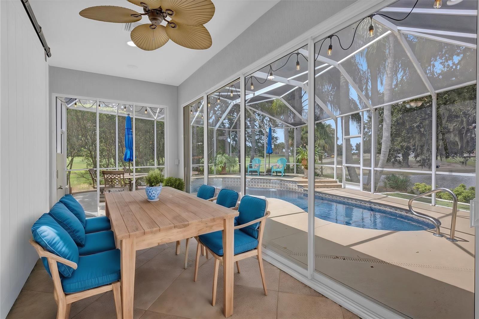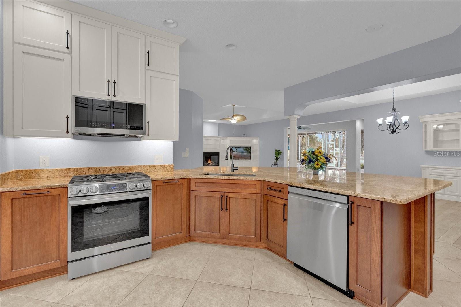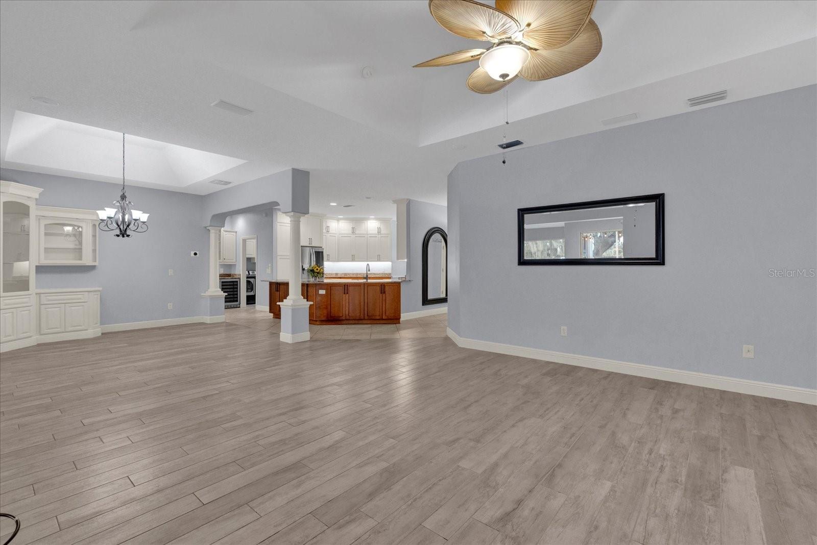 Uma ou mais fotos foram virtualmente encenadas. Esta casa expandida com vista ampla é carregada com atributos especiais, incluindo delícias óbvias e surpresas escondidas. Ele fica no fairway nº 1 do campo do Palmer Legends Championship, no final de um beco sem saída em uma grande área residencial na procurada vila de Winifred. Toda a casa recebeu um tratamento especial no ano passado, elevando-a a um novo patamar de conforto e luxo. A cozinha foi remodelada, com armários superiores White Bay e armários Cherry abaixo, adornados com ferragens de bronze. Lindas bancadas de granito tornam a culinária divertida. Há muito espaço de armazenamento para todos os seus gadgets e conjuntos de pratos. Os novos eletrodomésticos de aço inoxidável da LG incluem uma geladeira com porta francesa de duas gavetas, fogão a gás com forno a gás, micro-ondas e lava-louças. Ao lado está uma estação de bar embutida com dois refrigeradores de vinho e vitrines para copos e utensílios de servir. A sala tem lareira a gás e armários embutidos para televisão, livros e itens colecionáveis; a área de jantar vizinha possui armários de porcelana combinando. Este amplo espaço é adequado para entretenimento. As portas do celeiro se abrem para a sala da Flórida, oferecendo mais comodidades para se reunir com amigos ou apenas abraçar com um bom livro. Este quarto, com aquecimento e ar condicionado, tem uma cozinha de verão com churrasqueira embutida, muitos armários para seus materiais de entretenimento e uma agradável área de estar para assistir ao jogo na TV. Toda a parede externa de portas de vidro da sala Florida se abre para mostrar a piscina recém-aparecida com suas três cachoeiras. A varanda externa Mansard é cercada por palmeiras, um antigo carvalho e paisagismo tropical. Existe até um putting green. Caminhe por um caminho até um pátio escondido, perfeito para o café da manhã ou o vinho à noite. Do quarto Florida, há outra porta deslizante para a espaçosa suíte principal. Seu banheiro privativo tem chuveiro romano, lavatório privativo, armários de linho, pias para ele e para ela e penteadeira embutida para maquiagem. Dois grandes armários com novos sistemas California Closet estão entre o quarto e o banheiro. Do outro lado da casa há dois quartos espaçosos e um grande banheiro secundário com banheira de hidromassagem e chuveiro. Piso de cerâmica é usado em toda a casa, exceto carpete novo nos quartos. A casa tem tetos volumosos, incluindo um teto falso na sala de jantar e no quarto principal. Todo o interior foi recentemente repintado. As comodidades adicionais incluem persianas t/o, tetos desmontáveis, rodapés altos e cantos arredondados de drywall. A despensa possui lavadora e secadora de última geração com armários adicionais e uma grande pia. Há paisagismo aprimorado com detalhes em pavimentação e uma varanda com tela. A garagem para dois carros e carrinho de golfe foi equipada com armários de alta qualidade para guardar suas ferramentas e brinquedos. Uma nova escada mágica dá fácil acesso ao sótão com piso e isolamento. O ar condicionado de três zonas instalado em 2021 inclui luz ultravioleta para matar germes e bactérias. Um aquecedor de água de 75 galões e um novo telhado foram instalados em 2022. Recursos adicionais incluem alto-falantes Bose embutidos t/o, termostatos Nest, claraboias tubulares e um gerador Generac para toda a casa. Esta casa de designer expandida possui 2.864 pés quadrados, MAIS a grande sala fechada da Flórida, elevando a área de estar para 3.717 pés quadrados. Esta é a sua oportunidade de possuir um pedaço do paraíso de The Villages!
