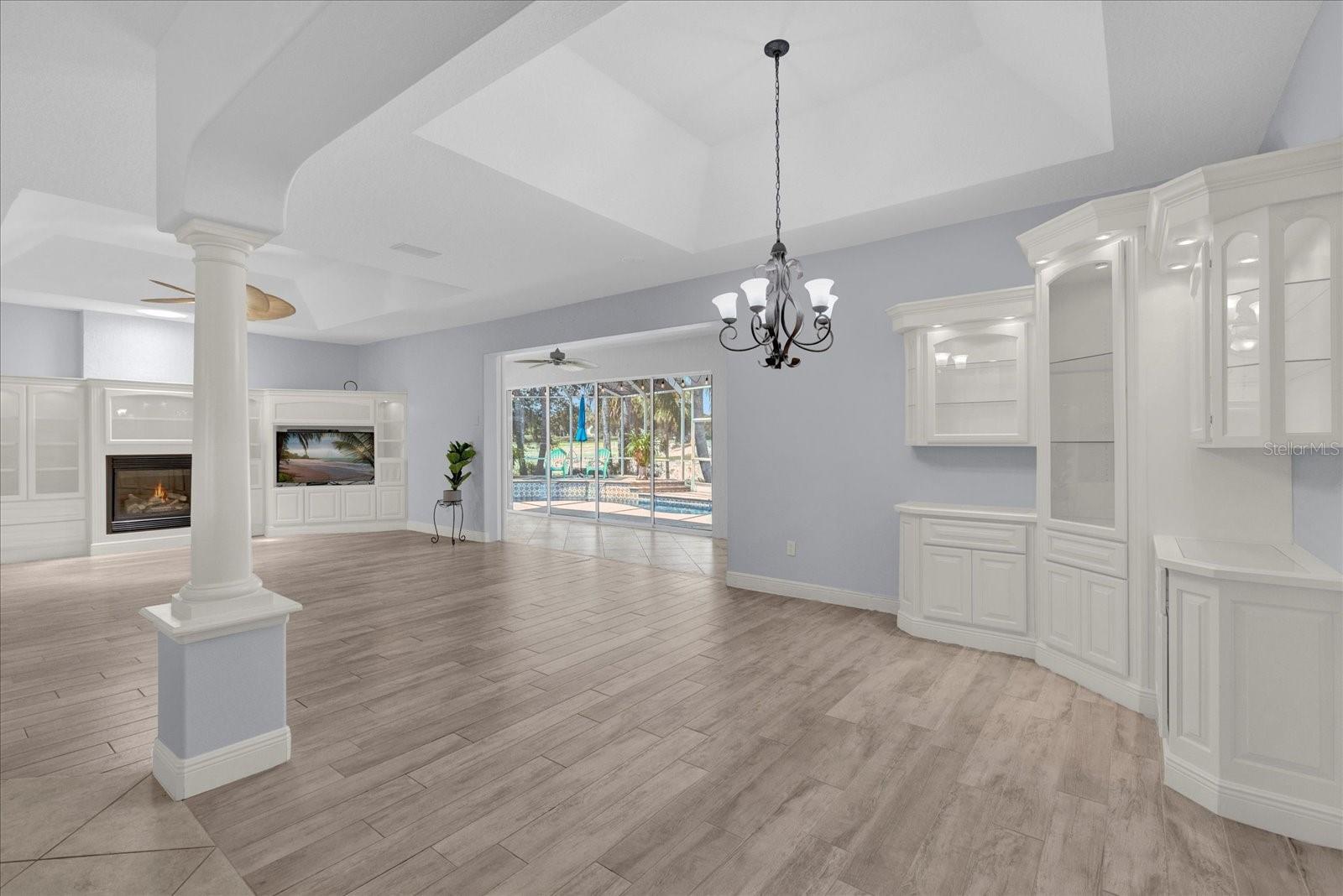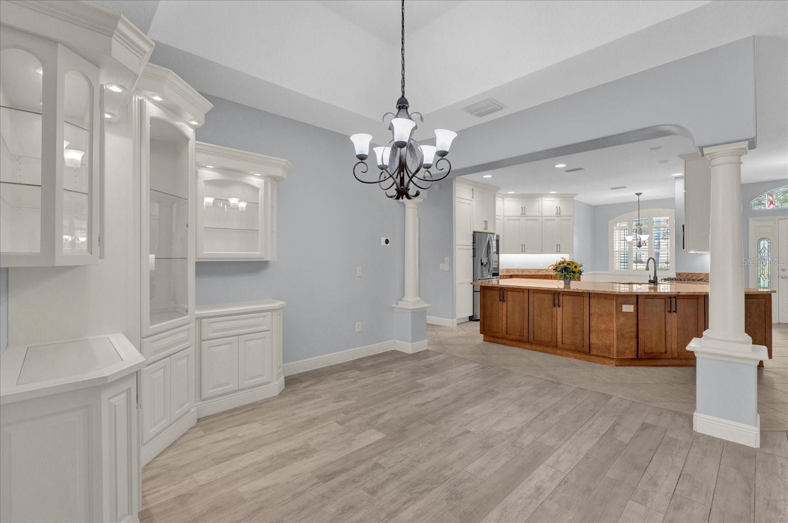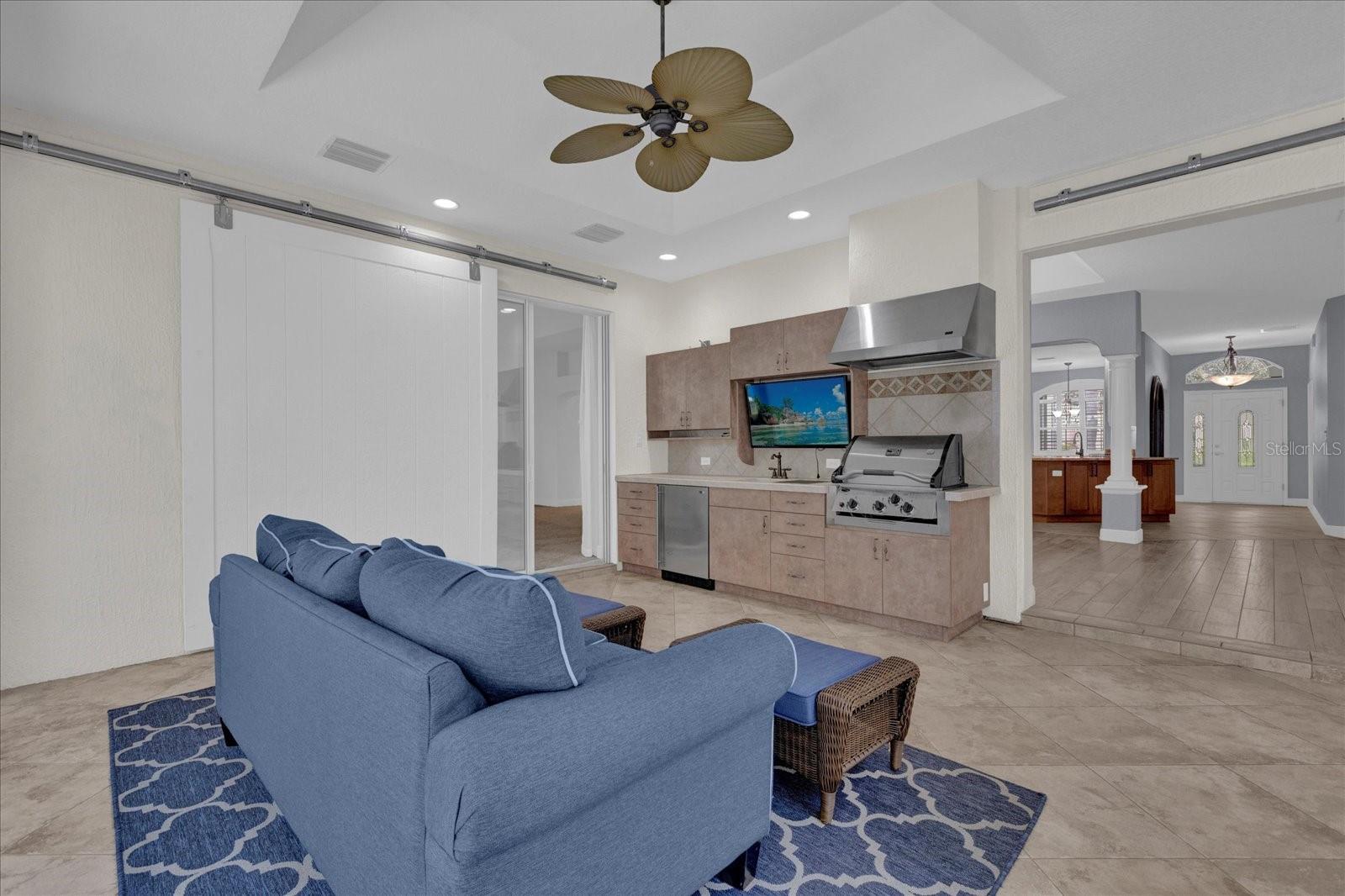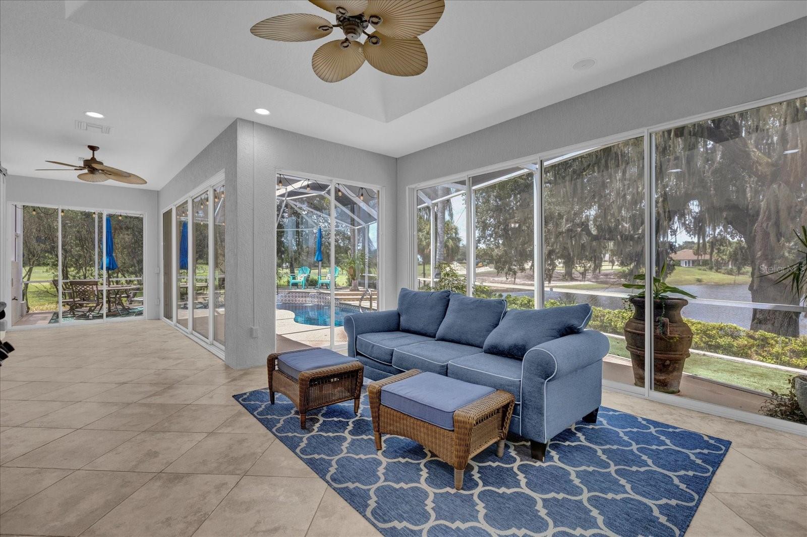 Uma ou mais fotos foram virtualmente encenadas. Esta casa expandida com vista ampla é carregada com atributos especiais, incluindo delícias óbvias e surpresas escondidas. Ele fica no fairway nº 1 do campo do Palmer Legends Championship, no final de um beco sem saída em uma grande área residencial na procurada vila de Winifred. Toda a casa recebeu um tratamento especial no ano passado, elevando-a a um novo patamar de conforto e luxo. A cozinha foi remodelada, com armários superiores White Bay e armários Cherry abaixo, adornados com ferragens de bronze. Lindas bancadas de granito tornam a culinária divertida. Há muito espaço de armazenamento para todos os seus gadgets e conjuntos de pratos. Os novos eletrodomésticos de aço inoxidável da LG incluem uma geladeira com porta francesa de duas gavetas, fogão a gás com forno a gás, micro-ondas e lava-louças. Ao lado está uma estação de bar embutida com dois refrigeradores de vinho e vitrines para copos e utensílios de servir. A sala tem lareira a gás e armários embutidos para televisão, livros e itens colecionáveis; a área de jantar vizinha possui armários de porcelana combinando. Este amplo espaço é adequado para entretenimento. As portas do celeiro se abrem para a sala da Flórida, oferecendo mais comodidades para se reunir com amigos ou apenas abraçar com um bom livro. Este quarto, com aquecimento e ar condicionado, tem uma cozinha de verão com churrasqueira embutida, muitos armários para seus materiais de entretenimento e uma agradável área de estar para assistir ao jogo na TV. Toda a parede externa de portas de vidro da sala Florida se abre para mostrar a piscina recém-aparecida com suas três cachoeiras. A varanda externa Mansard é cercada por palmeiras, um antigo carvalho e paisagismo tropical. Existe até um putting green. Caminhe por um caminho até um pátio escondido, perfeito para o café da manhã ou o vinho à noite. Do quarto Florida, há outra porta deslizante para a espaçosa suíte principal. Seu banheiro privativo tem chuveiro romano, lavatório privativo, armários de linho, pias para ele e para ela e penteadeira embutida para maquiagem. Dois grandes armários com novos sistemas California Closet estão entre o quarto e o banheiro. Do outro lado da casa há dois quartos espaçosos e um grande banheiro secundário com banheira de hidromassagem e chuveiro. Piso de cerâmica é usado em toda a casa, exceto carpete novo nos quartos. A casa tem tetos volumosos, incluindo um teto falso na sala de jantar e no quarto principal. Todo o interior foi recentemente repintado. As comodidades adicionais incluem persianas t/o, tetos desmontáveis, rodapés altos e cantos arredondados de drywall. A despensa possui lavadora e secadora de última geração com armários adicionais e uma grande pia. Há paisagismo aprimorado com detalhes em pavimentação e uma varanda com tela. A garagem para dois carros e carrinho de golfe foi equipada com armários de alta qualidade para guardar suas ferramentas e brinquedos. Uma nova escada mágica dá fácil acesso ao sótão com piso e isolamento. O ar condicionado de três zonas instalado em 2021 inclui luz ultravioleta para matar germes e bactérias. Um aquecedor de água de 75 galões e um novo telhado foram instalados em 2022. Recursos adicionais incluem alto-falantes Bose embutidos t/o, termostatos Nest, claraboias tubulares e um gerador Generac para toda a casa. Esta casa de designer expandida possui 2.864 pés quadrados, MAIS a grande sala fechada da Flórida, elevando a área de estar para 3.717 pés quadrados. Esta é a sua oportunidade de possuir um pedaço do paraíso de The Villages!