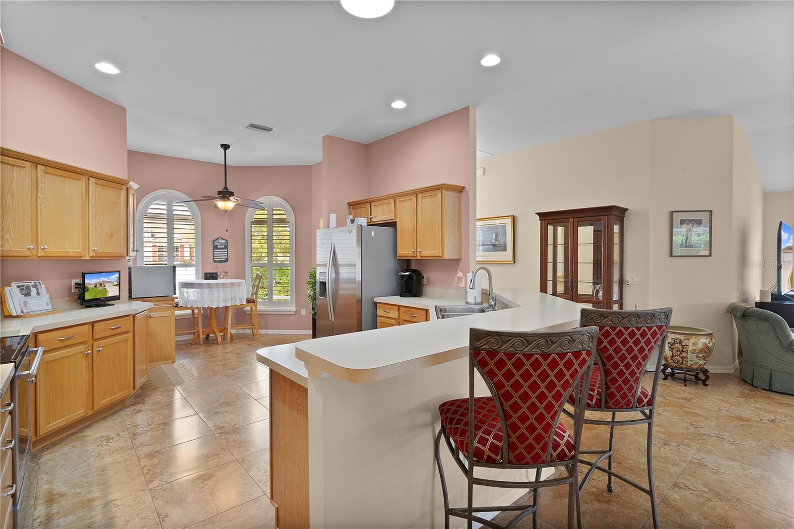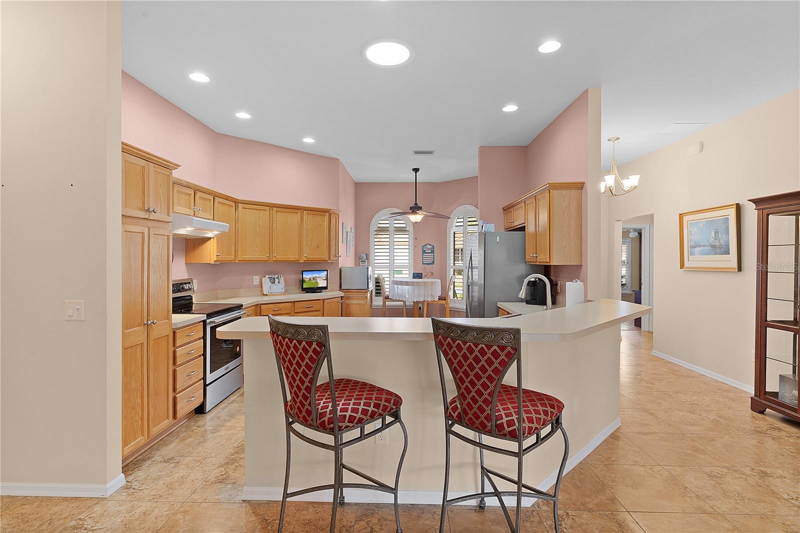 Esta linda casa de designer 3/2 GARDENIA com VALOR PREÇO na desejada VILLAGE OF HADLEY, conhecida por sua elevação ondulada mais alta, localizada entre Lake Sumter Landing e Brownwood Paddock Market Squares, a poucos minutos do Odell Rec Center e Colony Shopping Plaza e de todas as comodidades deste Mais de 55 comunidades têm a oferecer - campos de golfe executivos e de campeonato, clubes de campo, pickleball, piscinas para adultos, familiares e esportivas e muito mais! Ainda considerado um dos modelos mais procurados, o GARDENIA oferece uma planta OPEN/SPLIT com MASTER ENSUITE de um lado da casa e GUEST SUITE do outro. O quarto principal tem TETO BANDEJA com ventilador de teto, 2 armários WALK-IN, BANCADAS DUPLAS, chuveiro embutido com porta de vidro e corrediças que levam à varanda de tela. A suíte de hóspedes possui 2 quartos, um com cama e mesa MURPHY embutidas, banheiro completo com banheira/chuveiro e armário de roupa de cama no corredor. A cozinha tem muitos armários com DESPENSA e controles deslizantes, eletrodomésticos de aço inoxidável e copa. As atualizações incluem PERSIANAS DE PLANTAÇÃO, desmontáveis, tetos volumosos, TUBOS SOLARES, MADEIRA, piso de cerâmica e carpete, iluminação de designer e ventiladores de teto. O exterior apresenta uma calçada e passarela decorativa de concreto pintado, varanda com tela traseira com persianas solares e área de pátio com concreto pintado, tela de puxar da porta da frente, telhado 2013, HVAC 2018, aquecedor de água mais recente, porta de tela de garagem eletrônica e piso de garagem em epóxi e pull-down escadas do sótão para arrumação extra. NÃO DEIXE ESSE DESIGNER COM PREÇO DE VALOR PASSAR! AGENDE JÁ SUA MOSTRA PRIVADA!