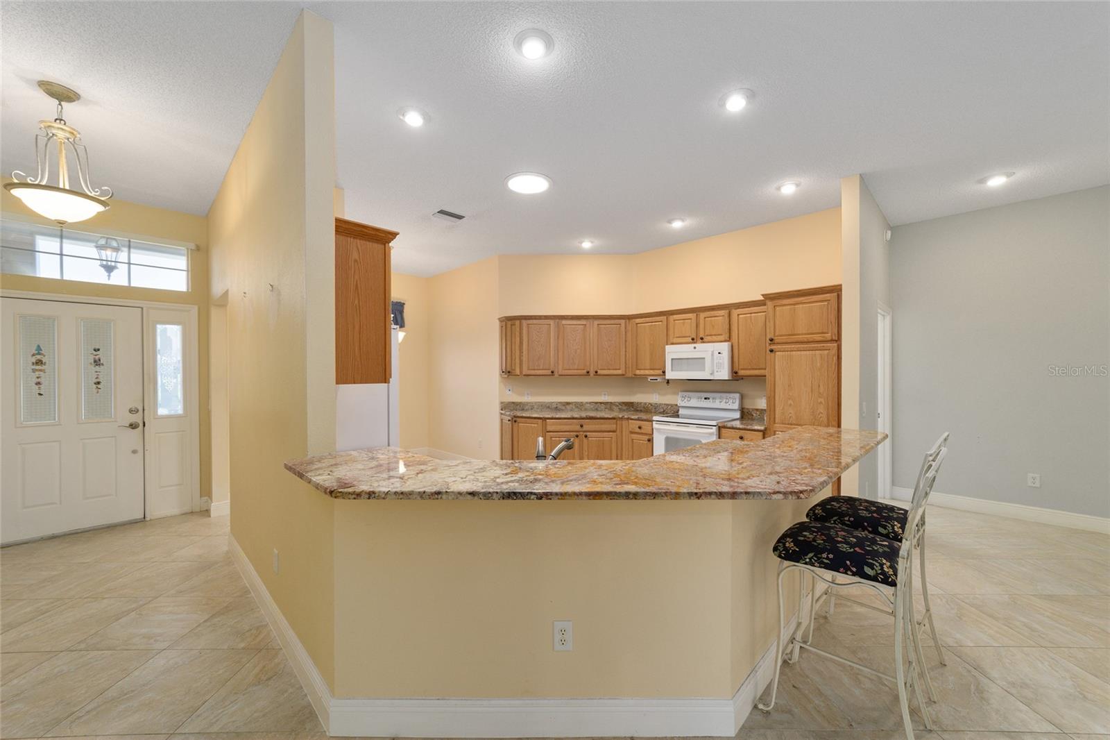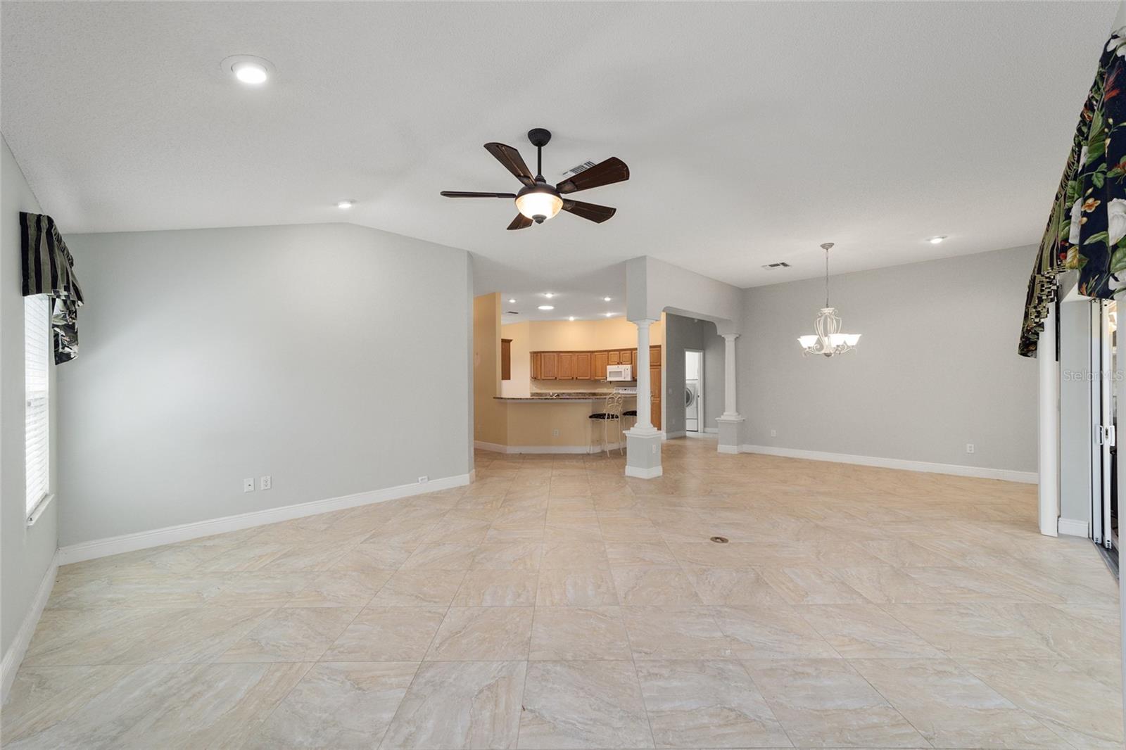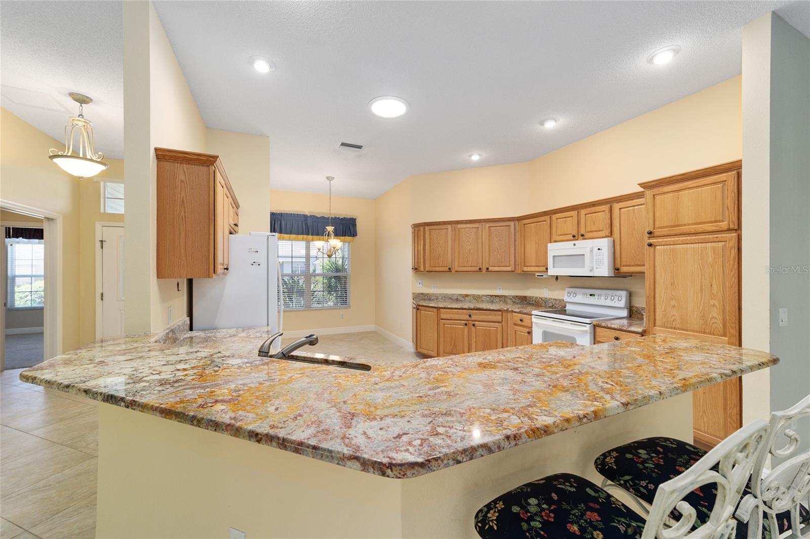 Lindo modelo de designer Camelia com garagem para 2 carros e garagem para carrinhos de golfe. Convenientemente localizado perto do Cane Garden County Club, na extremamente desejável vila de Poinciana. A apenas 4 km do Lago Sumter Landing e está cercado por campos de golfe, entretenimento, compras, comodidades, piscinas e centros recreativos. A cozinha possui armários atualizados com prateleiras extensíveis. O Microondas e a Geladeira têm 2 anos. O fogão é elétrico, porém a casa está encanada para gás natural. Lindas bancadas de granito por toda parte. A lavanderia possui lavadora e secadora atualizadas, armários de armazenamento e uma pia. Ambos os banheiros possuem armários atualizados, bancadas de granito e chuveiro/banheira de azulejos. Há azulejos em toda a casa, exceto nos quartos de hóspedes que possuem TAPETE NOVO. (o 3º quarto não tem armário). Da sala de estar, a varanda possui portas de vidro deslizantes empilháveis para que a sala de estar e a varanda fluam juntas para dar a sensação de uma área de estar muito maior. A varanda é revestida de azulejos e possui janelas de acrílico e dispõe de banheira de hidromassagem. Há também paisagismo de privacidade atrás da casa. Há um saldo de títulos baixo de $ 6.906 restantes. Por favor, ligue-me para agendar seu tour exclusivo hoje!