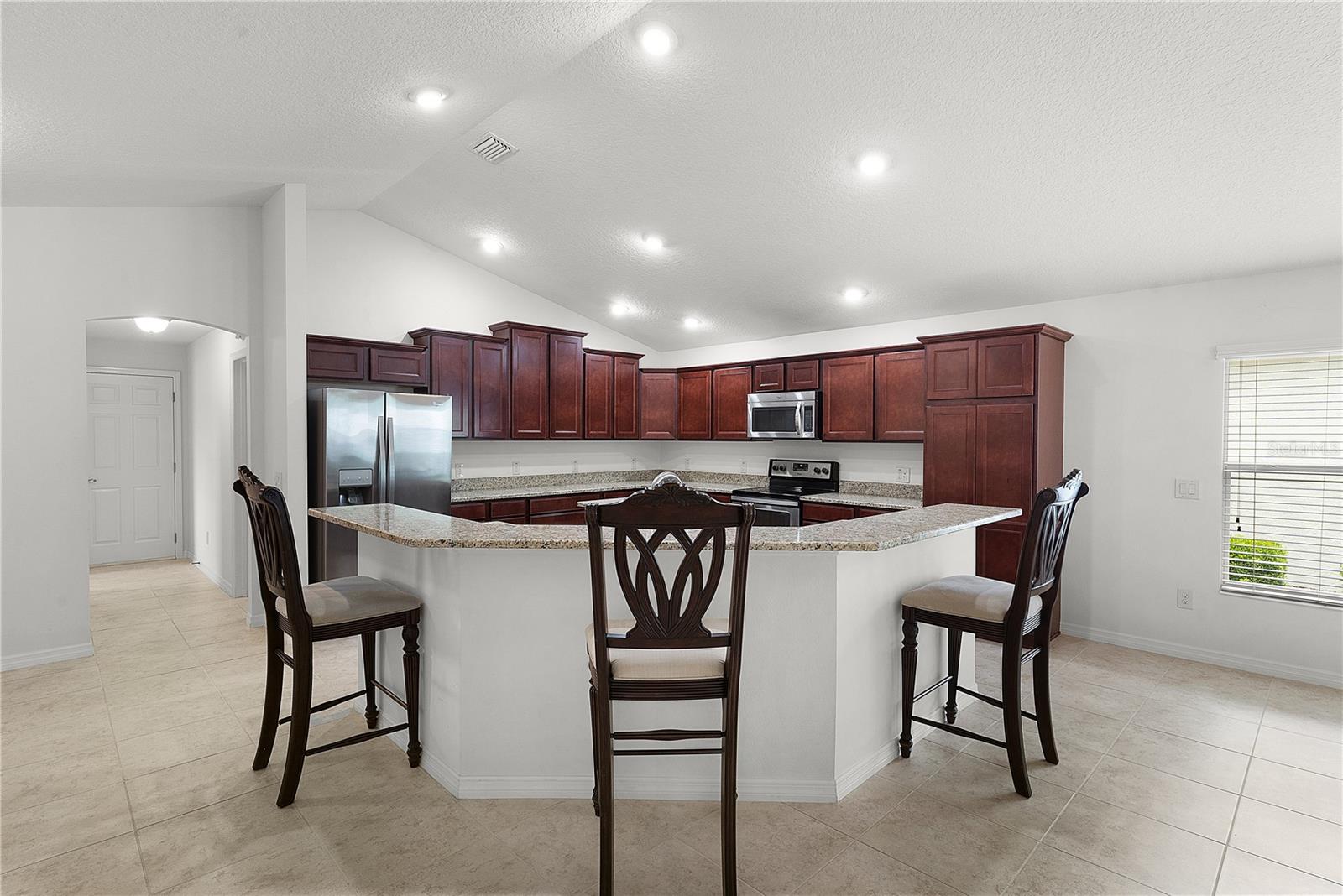 NOVO PREÇO! Situada na serena vila de COLLIER em ANTRIM DELLS, esta requintada villa com pátio WYNDHAM de 3/2 recebe você com sua paisagem meticulosamente cuidada, adornada com graciosas palmeiras e arbustos exuberantes. Ao entrar, você é saudado por elegantes PISOS DE AZULEJO que fluem graciosamente por toda a área de estar principal, criando uma sensação de espaço e continuidade. Prepare-se para se encantar pela ampla cozinha, perfeitamente projetada para os entusiastas da culinária. Apresentando uma barra de café da manhã de tamanho generoso com capacidade para 4 pessoas, eletrodomésticos de aço inoxidável, bancadas de GRANITO, uma despensa conveniente, implementações inferiores e uma ilha central, esta cozinha é o sonho de um chef que se torna realidade. O OPEN FLOOR PLAN garante que você possa interagir facilmente com seus convidados enquanto prepara as refeições, tornando o entretenimento um evento alegre. Grandes portas de correr telescópicas na sala de estar conectam perfeitamente os espaços internos e externos, convidando você a relaxar na LANAI TELA adornada com 2 ventiladores de teto e carpetes internos e externos aconchegantes. Retire-se para o santuário do quarto principal, completo com um espaçoso closet, teto com ventilador e banheiro privativo com elegantes pisos de cerâmica, box amplo de azulejos e pias duplas com bancadas de GRANITO. Seus convidados se sentirão em casa nos confortáveis 2º e 3º quartos, enquanto o banheiro de hóspedes também possui bancadas de GRANITO para maior luxo. Desfrute de privacidade e tranquilidade no oásis do quintal, cercado por árvores maduras e um muro de privacidade cuidadosamente projetado. Não há casas atrás! A casa foi construída em 2014, então tudo tem 10 anos. Junto com sua própria PISCINA DE VIZINHANÇA, você está convenientemente localizado próximo à BROWNWOOD PADDOCK SQUARE, com fácil acesso a uma variedade de opções de compras, restaurantes e entretenimento, garantindo que todos os dias sejam repletos de emoção e lazer.