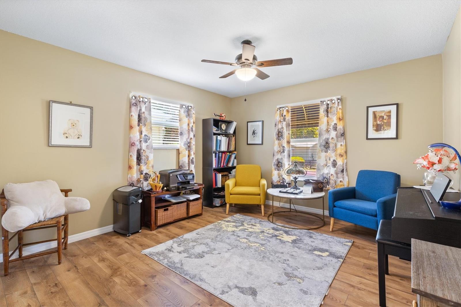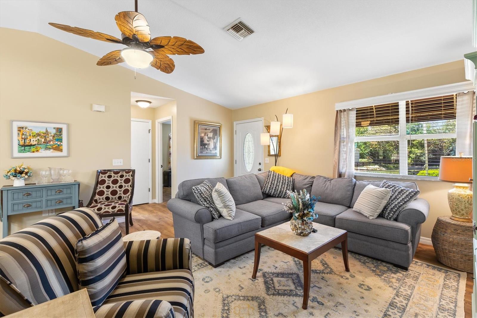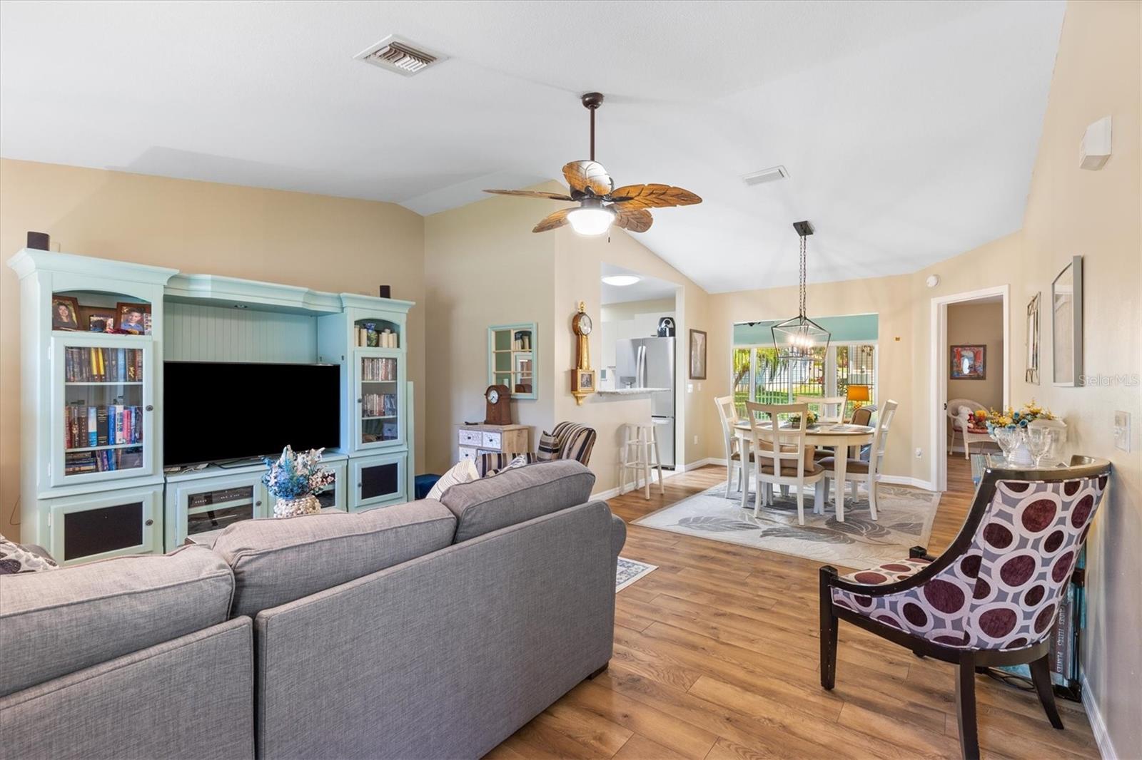 TELHADO 2021-SEM VINCULAÇÃO! 2/2 Maquete Austin na Vila do Rio Ponderosa. A entrada convidativa da varanda frontal leva você a esta planta aberta e dividida com luxuosos pisos de pranchas de vinil com aparência de madeira e azulejos nas áreas úmidas. A cozinha tem eletrodomésticos em inox, bancada em granito, balcão e muita arrumação e balcão. O quarto principal tem um grande closet e banheiro privativo com pia dupla atualizada, chuveiro sem banheira e armário de roupa de cama. Você vai adorar o quarto Florida adicional de 12' por 20' com uma mini unidade de ar condicionado split e varanda fechada. O pátio pavimentado além é ótimo para grelhar e jantar sob as árvores. HVAC 2016. Todos os ventiladores de teto possuem kits de luz. O banheiro de hóspedes tem uma combinação de banheira com chuveiro e penteadeira. A garagem tem espaço para o seu carro e carrinho de golfe. Curta viagem de carrinho de golfe até Spanish Springs e Lake Sumter Landing para refeições, entretenimento e compras. O Campo de Golfe Executivo De La Vista fica a apenas 1,6 km de distância. Ligue agora para agendar sua exibição privada e comece a viver o sonho das Aldeias! Por favor, assista ao nosso vídeo desta maravilhosa casa. Característica do quarto: Armário de linho no banheiro (quarto principal).
