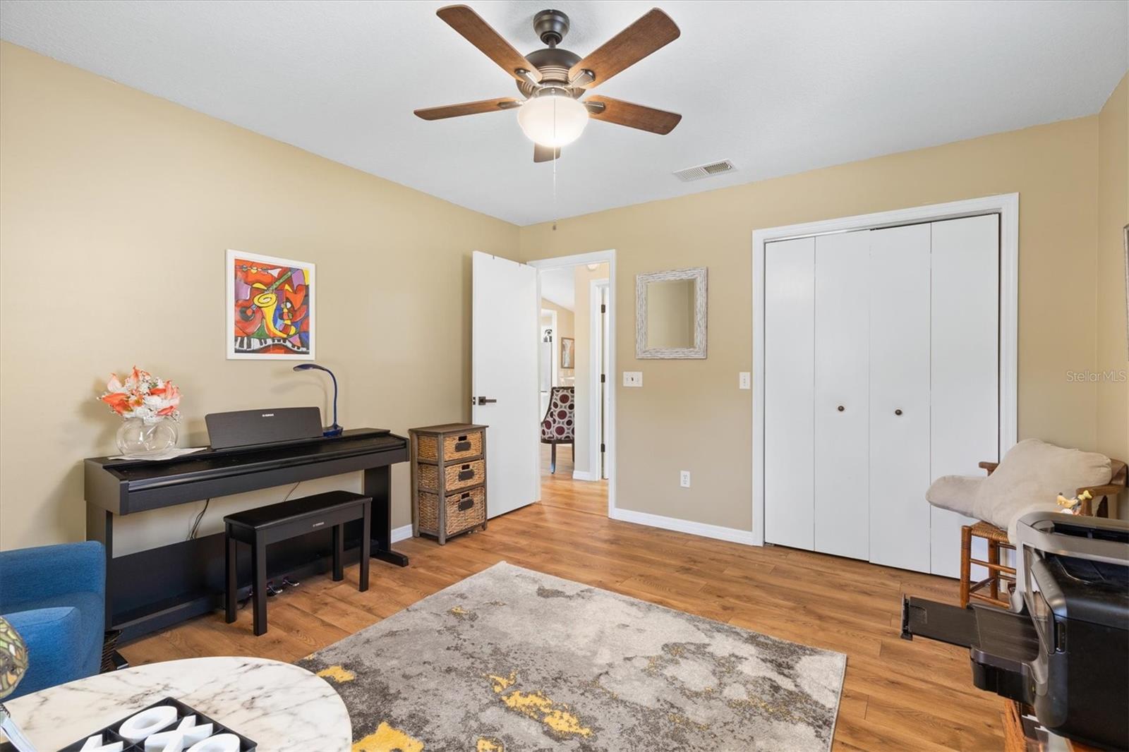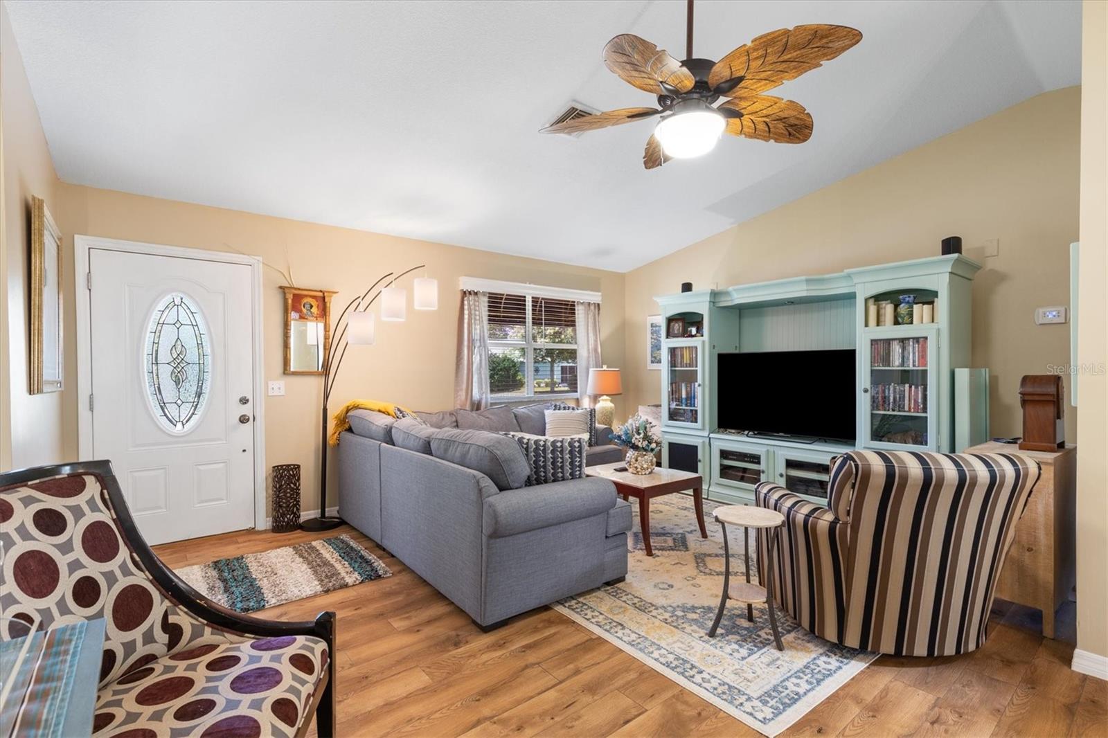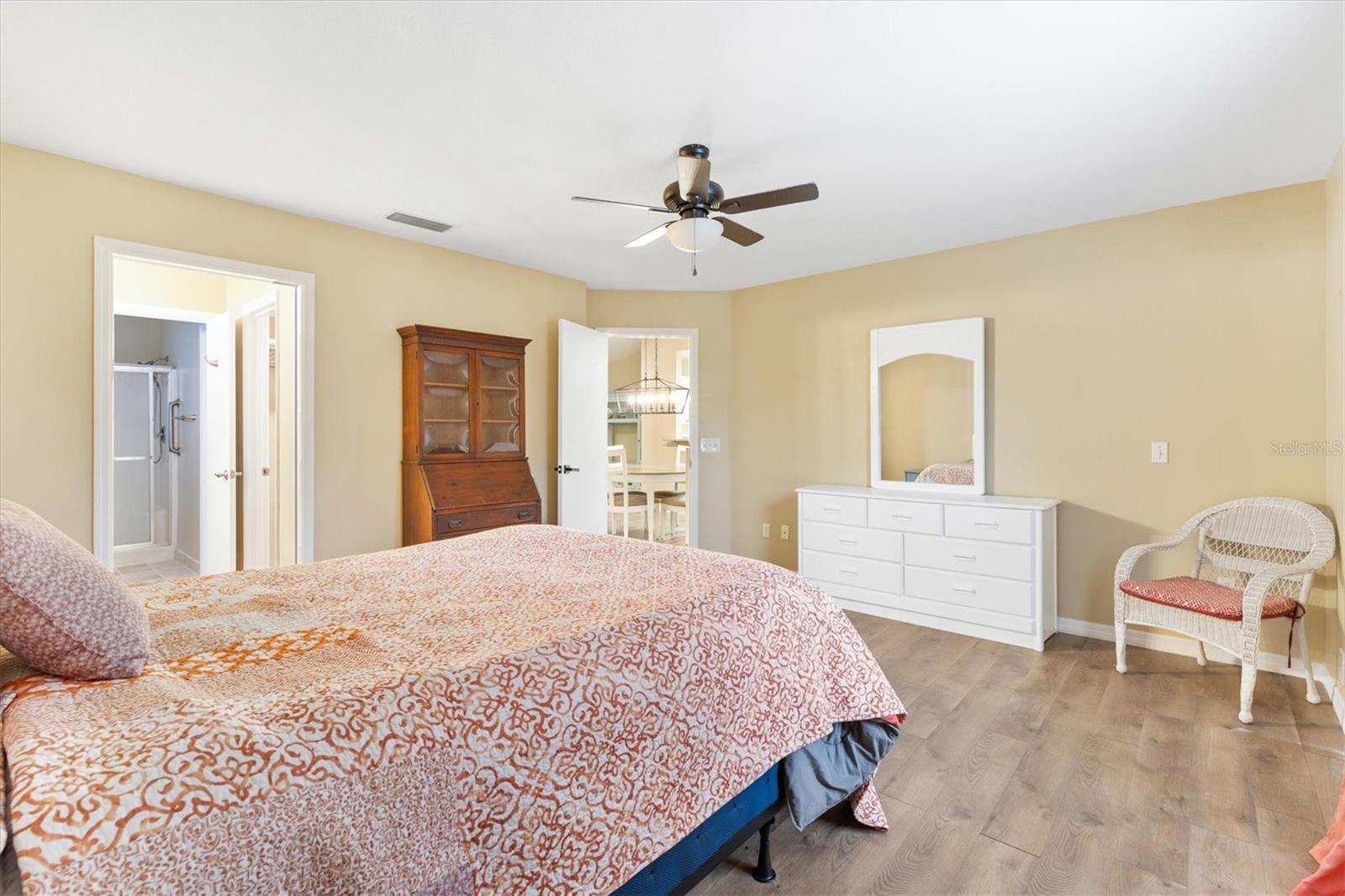 TELHADO 2021-SEM VINCULAÇÃO! 2/2 Maquete Austin na Vila do Rio Ponderosa. A entrada convidativa da varanda frontal leva você a esta planta aberta e dividida com luxuosos pisos de pranchas de vinil com aparência de madeira e azulejos nas áreas úmidas. A cozinha tem eletrodomésticos em inox, bancada em granito, balcão e muita arrumação e balcão. O quarto principal tem um grande closet e banheiro privativo com pia dupla atualizada, chuveiro sem banheira e armário de roupa de cama. Você vai adorar o quarto Florida adicional de 12' por 20' com uma mini unidade de ar condicionado split e varanda fechada. O pátio pavimentado além é ótimo para grelhar e jantar sob as árvores. HVAC 2016. Todos os ventiladores de teto possuem kits de luz. O banheiro de hóspedes tem uma combinação de banheira com chuveiro e penteadeira. A garagem tem espaço para o seu carro e carrinho de golfe. Curta viagem de carrinho de golfe até Spanish Springs e Lake Sumter Landing para refeições, entretenimento e compras. O Campo de Golfe Executivo De La Vista fica a apenas 1,6 km de distância. Ligue agora para agendar sua exibição privada e comece a viver o sonho das Aldeias! Por favor, assista ao nosso vídeo desta maravilhosa casa. Característica do quarto: Armário de linho no banheiro (quarto principal).