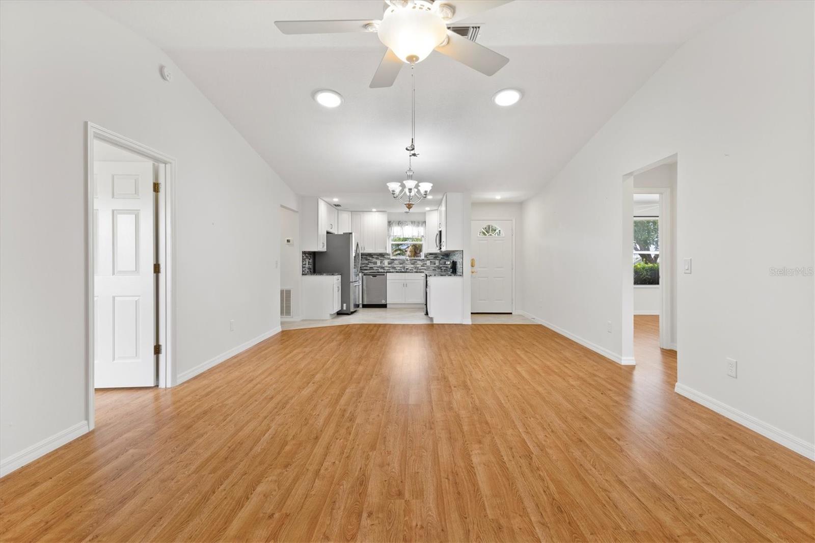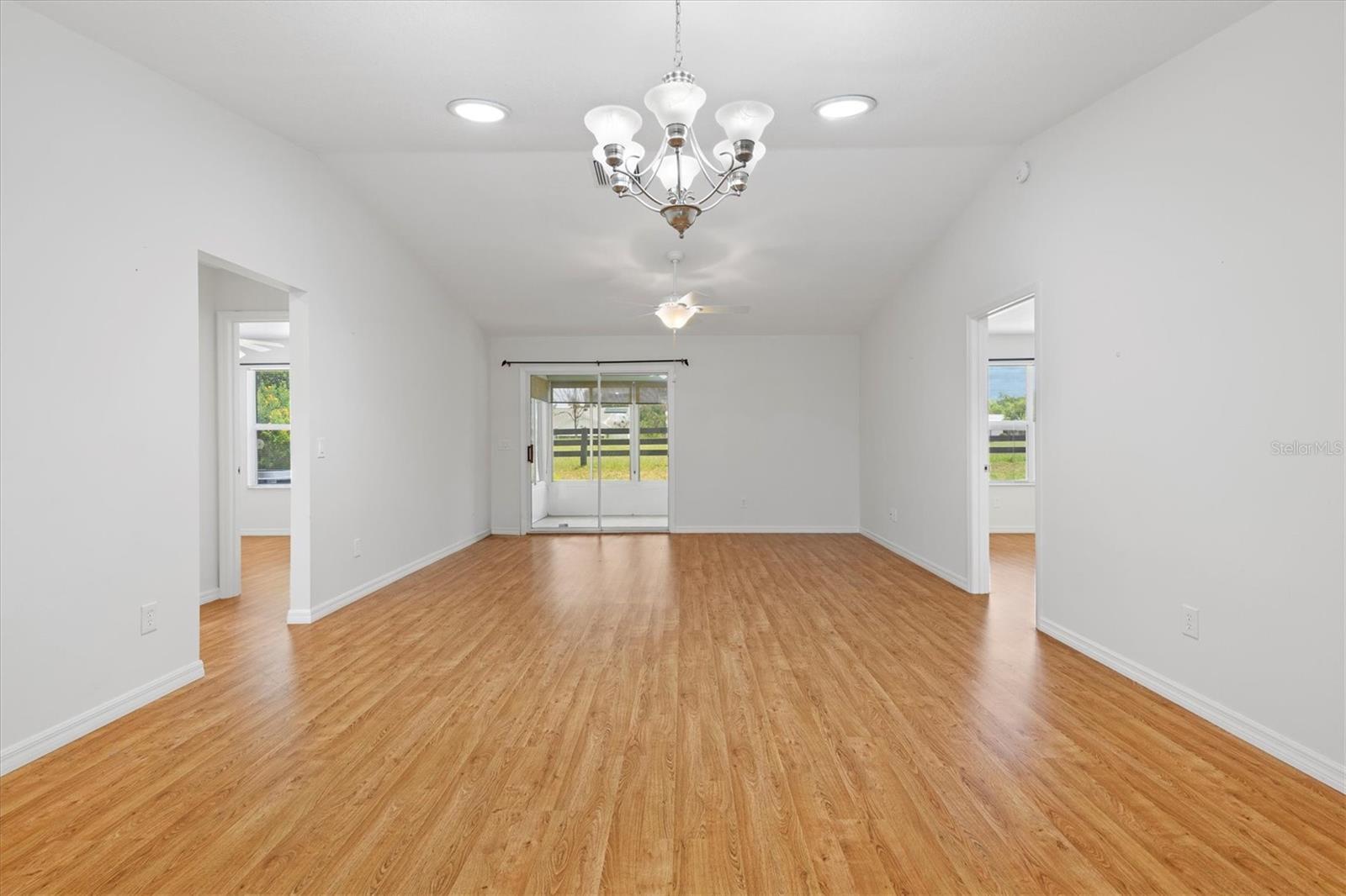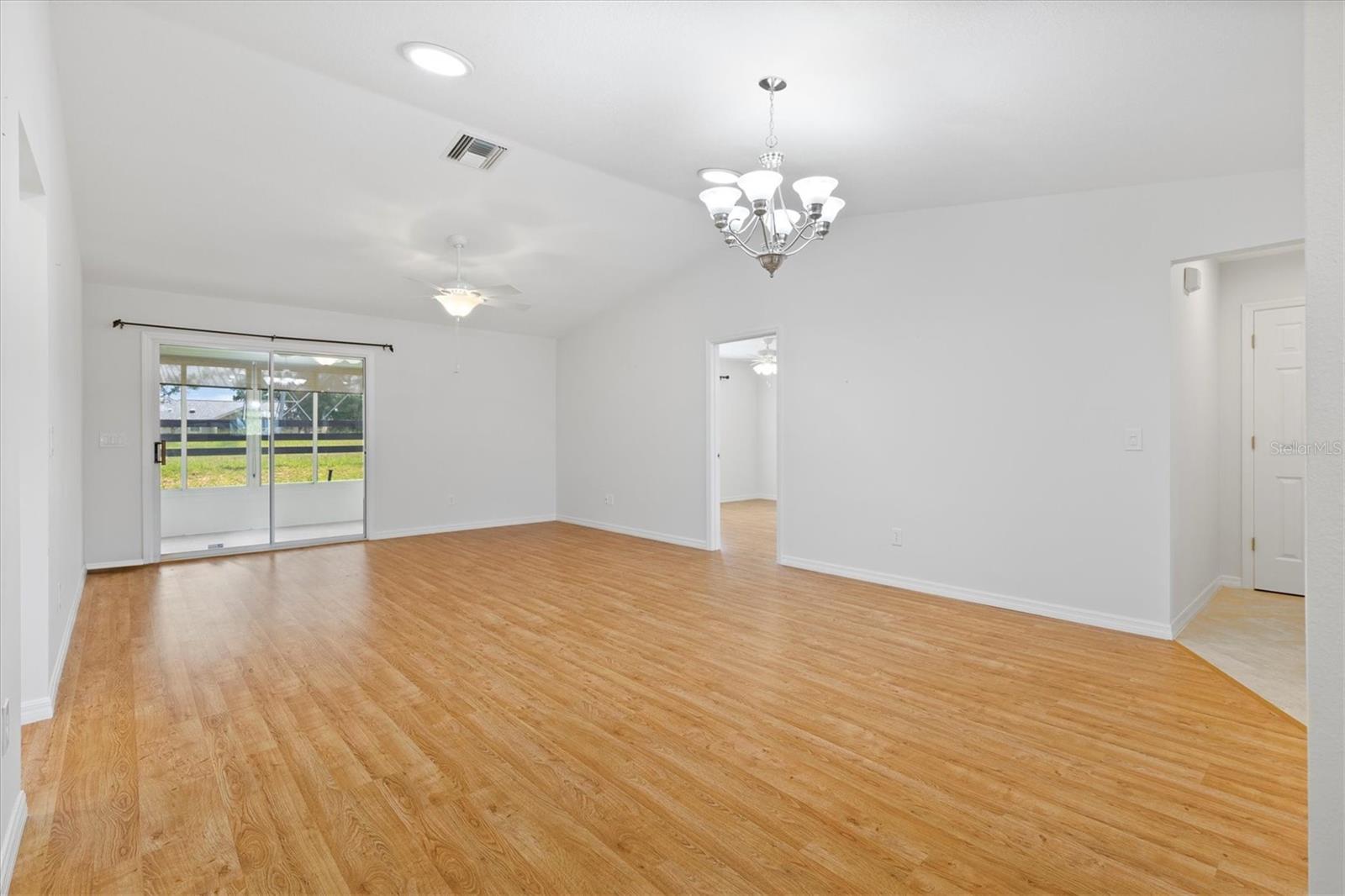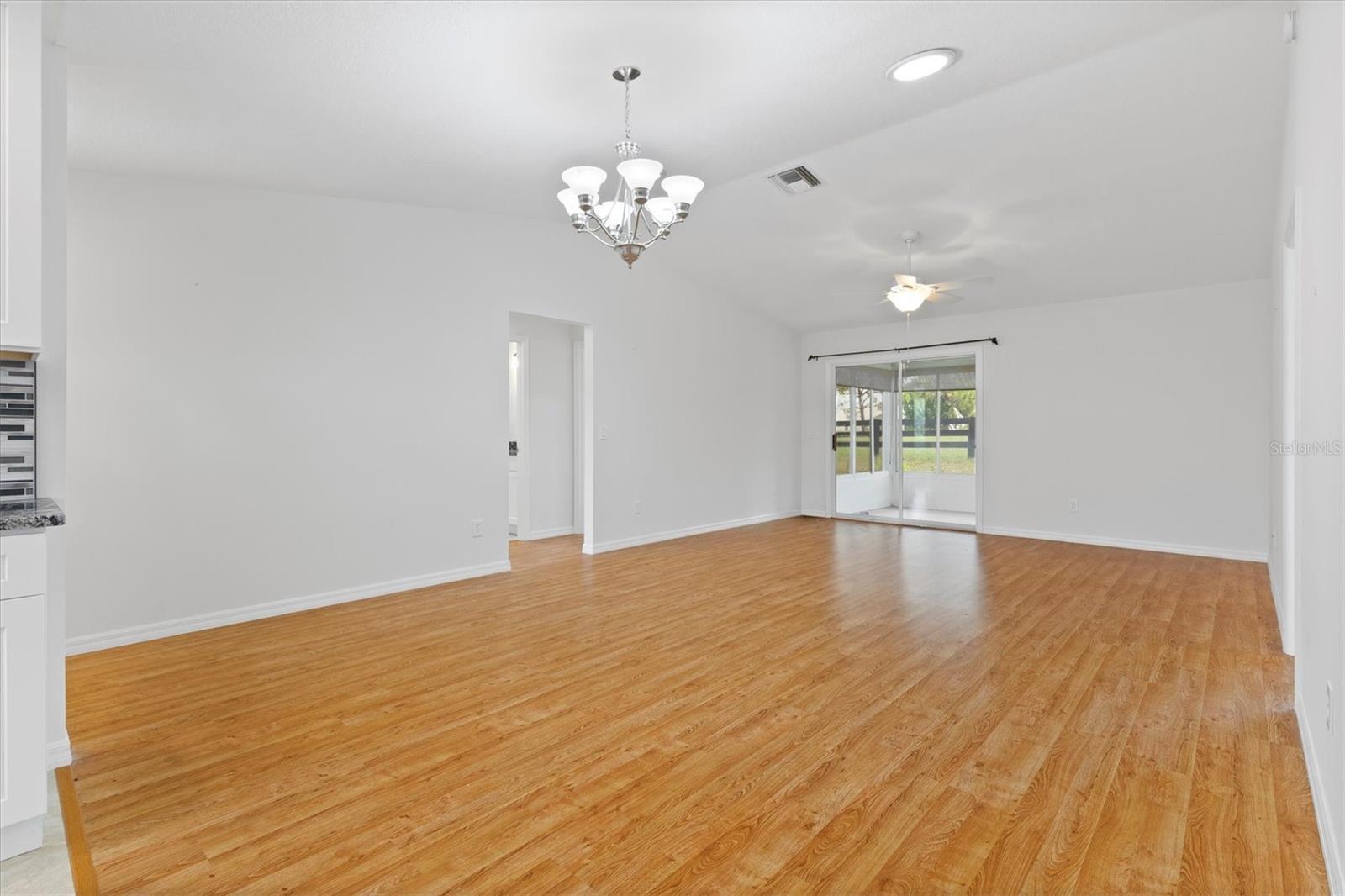 NO BOND 3/2 Casa Maverick na Vila de Rio Ponderosa. Telhado 2018, HVAC 2021. Planta baixa aberta e dividida. Com piso laminado com aspecto de madeira, ventiladores de teto com kits de luz por toda parte. 2 tubos solares na zona de estar e um em cada uma das casas de banho. A cozinha possui eletrodomésticos de aço inoxidável, bancadas de granito, backsplash de azulejos de vidro, armário de despensa e armazenamento adicional em armários de teto alto. Portas deslizantes levam à sua varanda com temperatura controlada e persianas onde você pode relaxar sem nenhuma casa atrás. O quarto principal inclui closet e banheiro privativo com penteadeira atualizada com bancada em granito e armário de linho. O banheiro de hóspedes tem um chuveiro atualizado. O terceiro quarto não tem armário. Fácil acesso de carrinho de golfe ao Spanish Springs Town Center e ao Lake Sumter Landing para refeições, entretenimento e compras. O Campo de Golfe Executivo De La Vista fica a apenas 1,6 km de distância. Ligue agora para agendar sua exibição privada e comece a viver o Sonho das Aldeias! Por favor, assista ao vídeo desta linda casa.