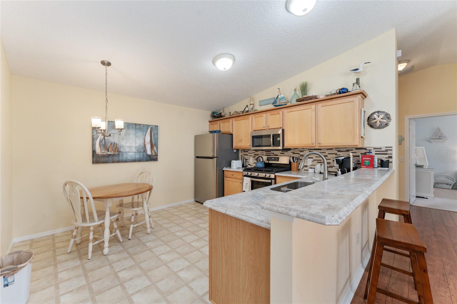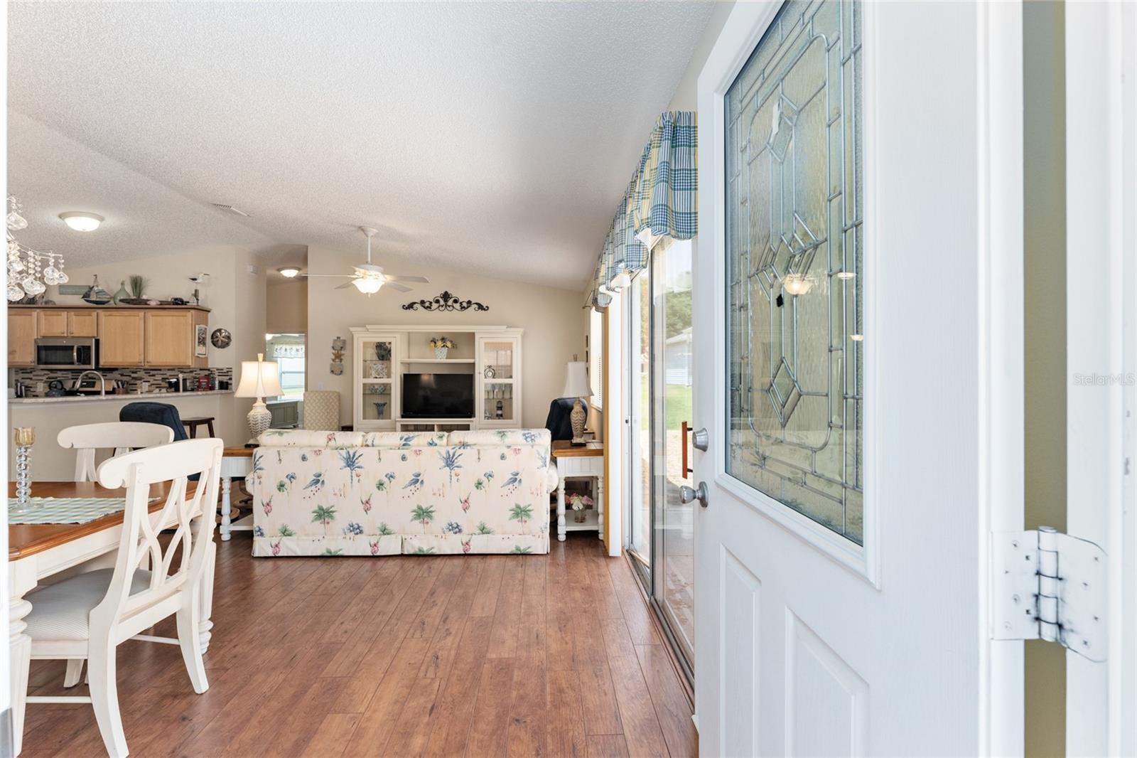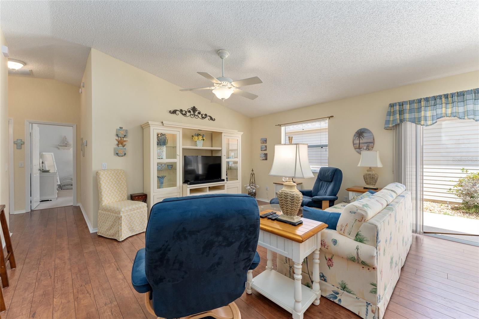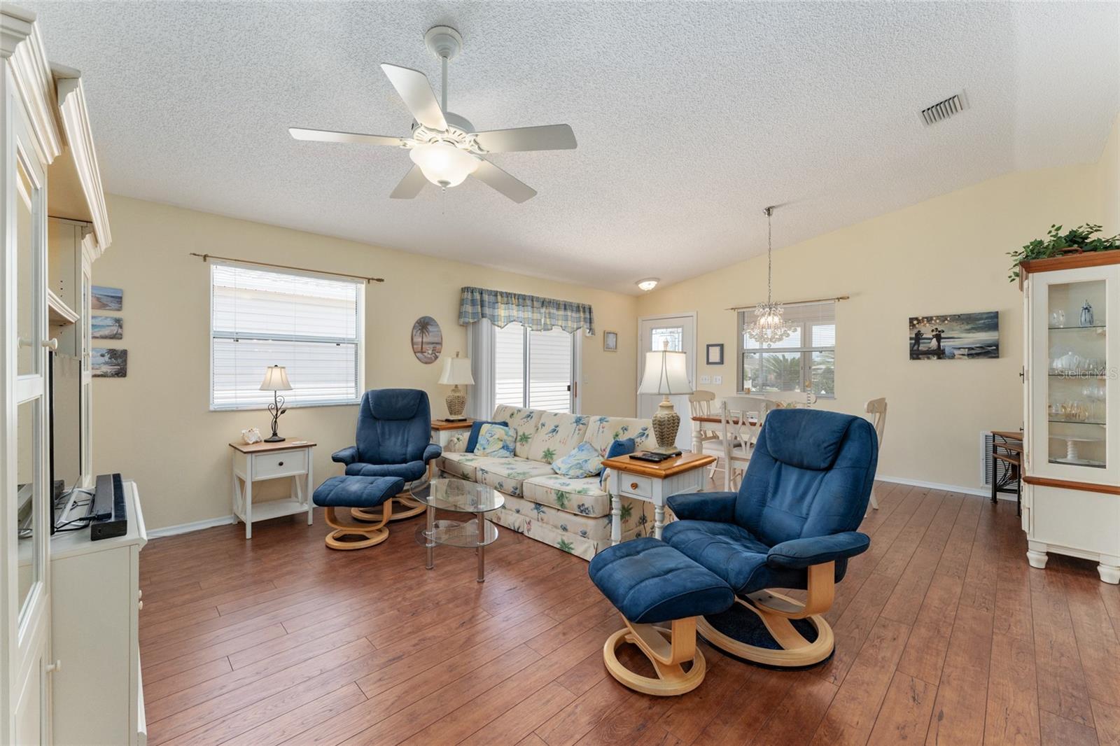 BOND PAGO nesta adorável villa com pátio de 2 quartos e 2 banheiros, chave na mão, na muito procurada vila de Lynnhaven. Sinta-se em casa no espaçoso design de conceito aberto deste modelo Colony, oferecendo tetos abobadados, lindo piso laminado nas áreas principais, combinação de sala de estar/jantar e ventiladores de teto. A elegante cozinha inclui fogão a gás, eletrodomésticos de aço inoxidável, lindo backsplash, espaço para refeições, amplos armários, despensa e uma longa península adequada para bancos de bar. A suíte master tem um grande closet e a suíte tem um box amplo, enquanto o banheiro de hóspedes tem uma combinação banheira/chuveiro. Relaxe e divirta-se sentado em sua varanda fechada ou sente-se em seu amplo pátio lateral com amigos para um churrasco. O telhado é 2021. Traga sua escova de dentes e vá direto para esta casa pronta para uso lindamente mobiliada e comece o próximo capítulo de sua vida morando em The Villages. Temos centenas de clubes, Golfe, ténis, pickleball, shuffleboard, espectáculos, animação nocturna nas praças, lojas, restaurantes, igrejas e muito mais. Por favor, ligue hoje para uma exibição privada.