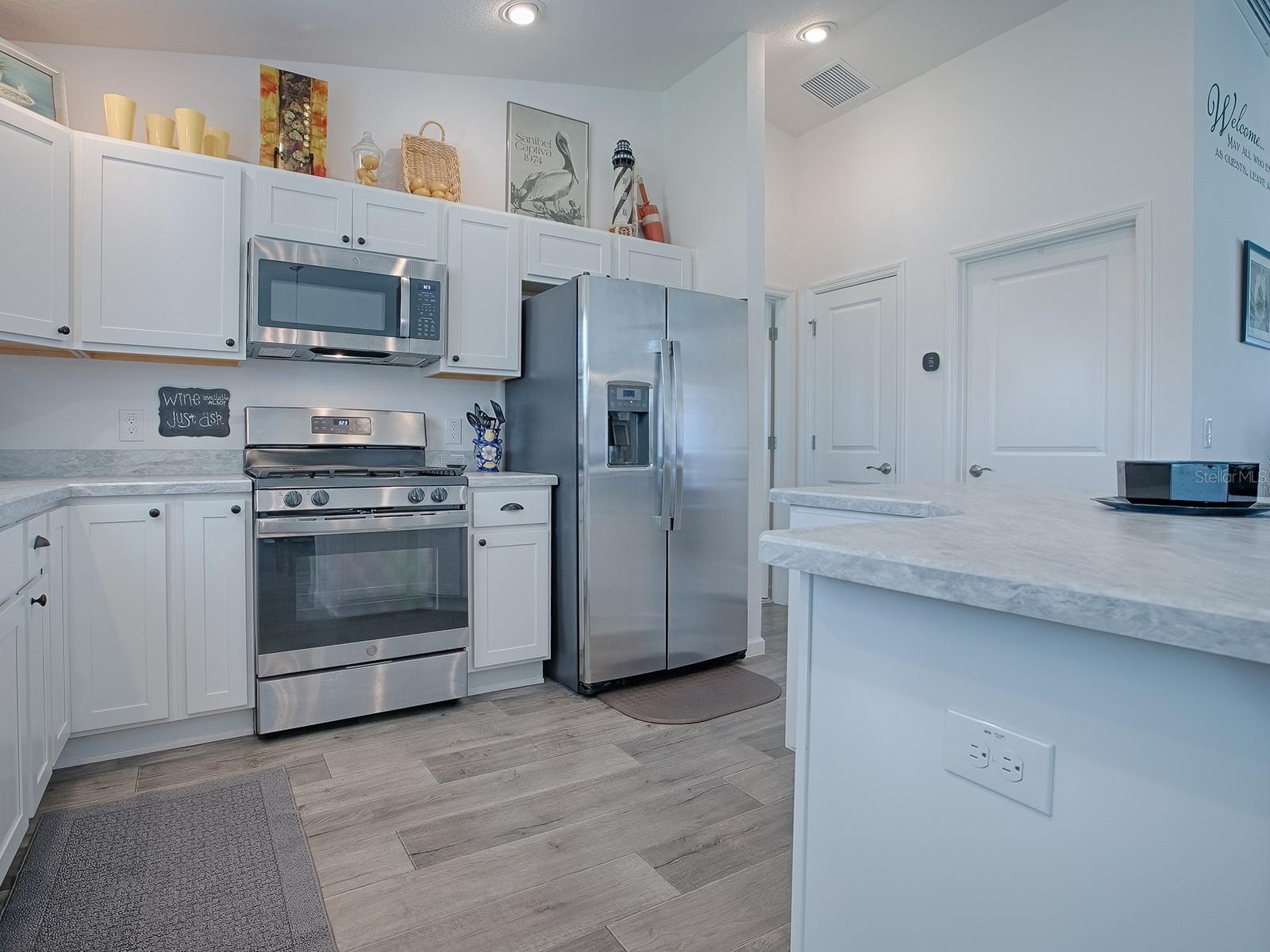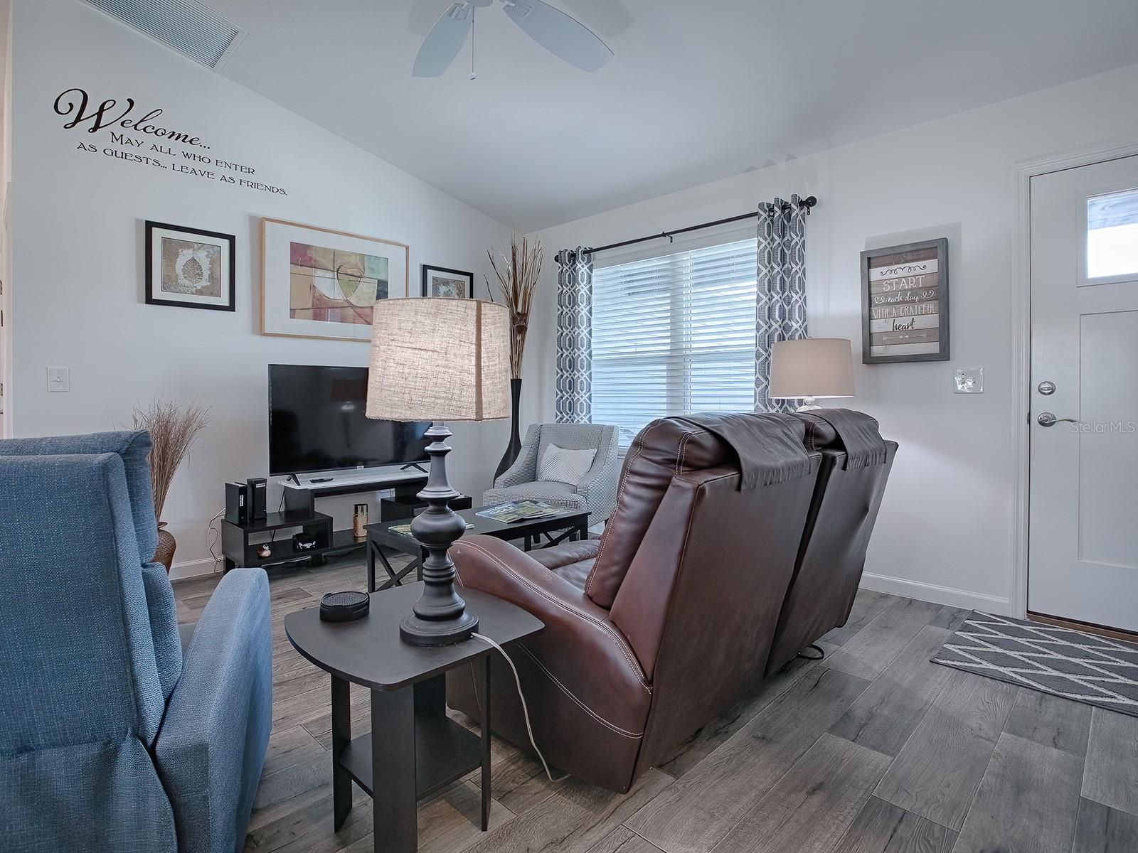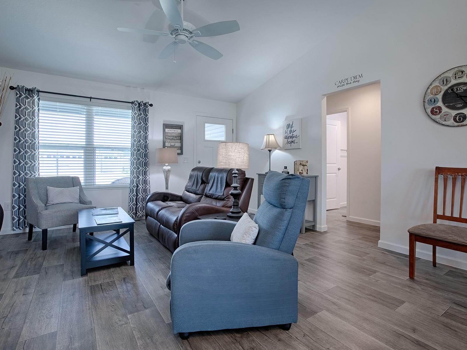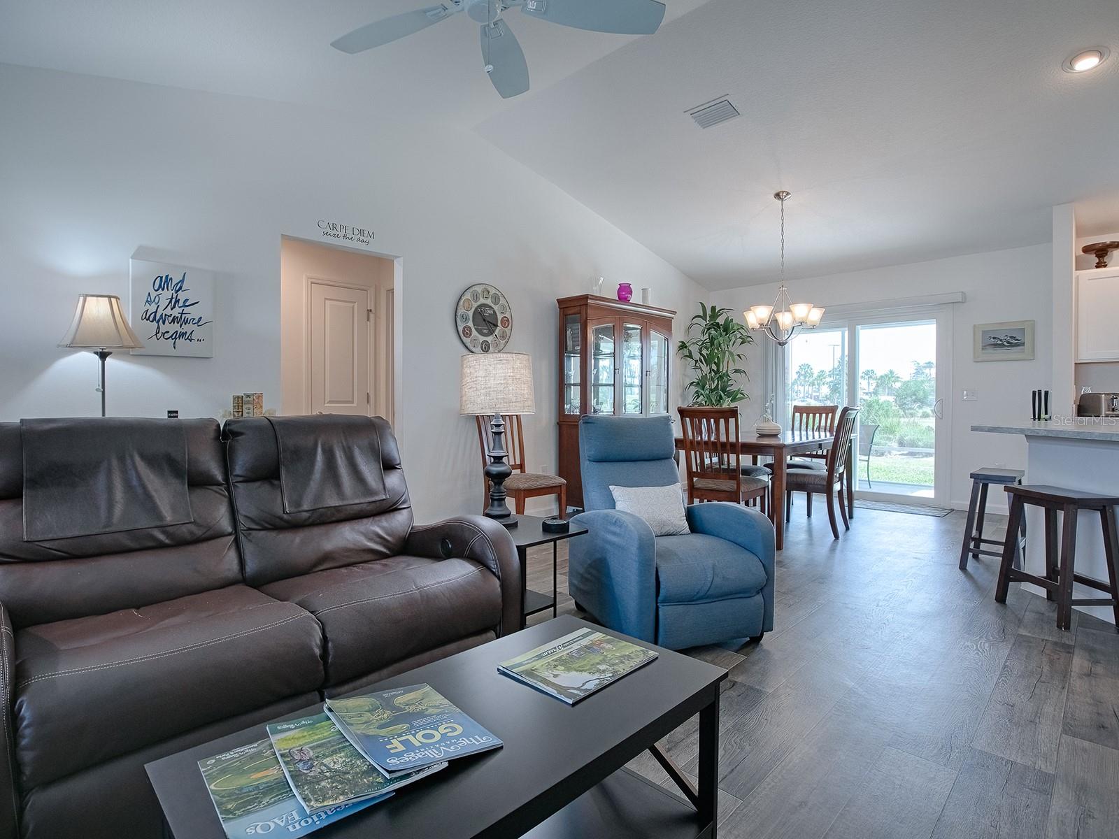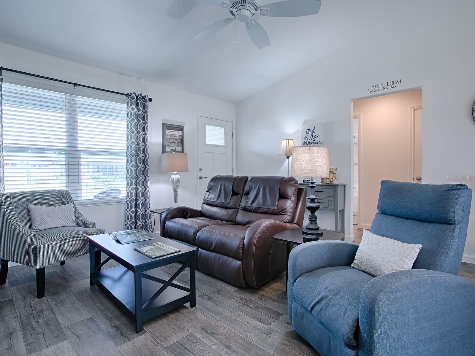 CHAVE NA MÃO, VISTA DE GOLFE, CARRINHO DE GOLFE INCLUÍDO 3/2 SunKissed Cottage localizado na Vila de Santa Catarina! Esta linda casa está pronta para você morar ou um ótimo imóvel para alugar! A entrada convidativa o levará a um ambiente charmoso, aconchegante, confortável e muito desejável! Você encontrará piso vinílico WOOD LOOK na sala, cozinha, lavanderia e banheiros com carpete nos quartos. A cozinha aberta oferece uma barra de café da manhã em ilha, armários de bordo WHITE Arbor, balcões laminados de alta definição com borda chanfrada e eletrodomésticos INOX com fogão a GÁS natural! TETOS ABOBADOS e 6 ventiladores de teto, termostato WiFi programável, LAVANDERIA interna com armários extras e pia, aquecedor de água SEM TANQUE e calhas em toda a casa! A suíte de hóspedes oferece 2 quartos espaçosos com banheiro próprio com banheira/chuveiro. O quarto principal tem um grande WALK-IN CLOSET e uma banheira EN-SUITE com pias duplas e chuveiro com vidro deslizante. A sala de jantar se abre com portas de vidro deslizantes para a varanda e uma EXCELENTE VISTA do Clifton Cove Putting Course! Com abundância de palmeiras e um paisagismo encantador, o que há para não AMAR! Há um pátio considerável fora da varanda para desfrutar do sol e grelhar com sua churrasqueira a gás propano incluída! Do outro lado do campo fica o The Market at SAWGRASS GROVE, e outras comodidades próximas são o Ezell Regional Recreation Complex, o McGrady's Pub, a piscina e a estação postal ficam no fim da rua! Uma ÓTIMA LOCALIZAÇÃO e tudo está incluído! VOCÊ NÃO QUER PERDER ESTA!