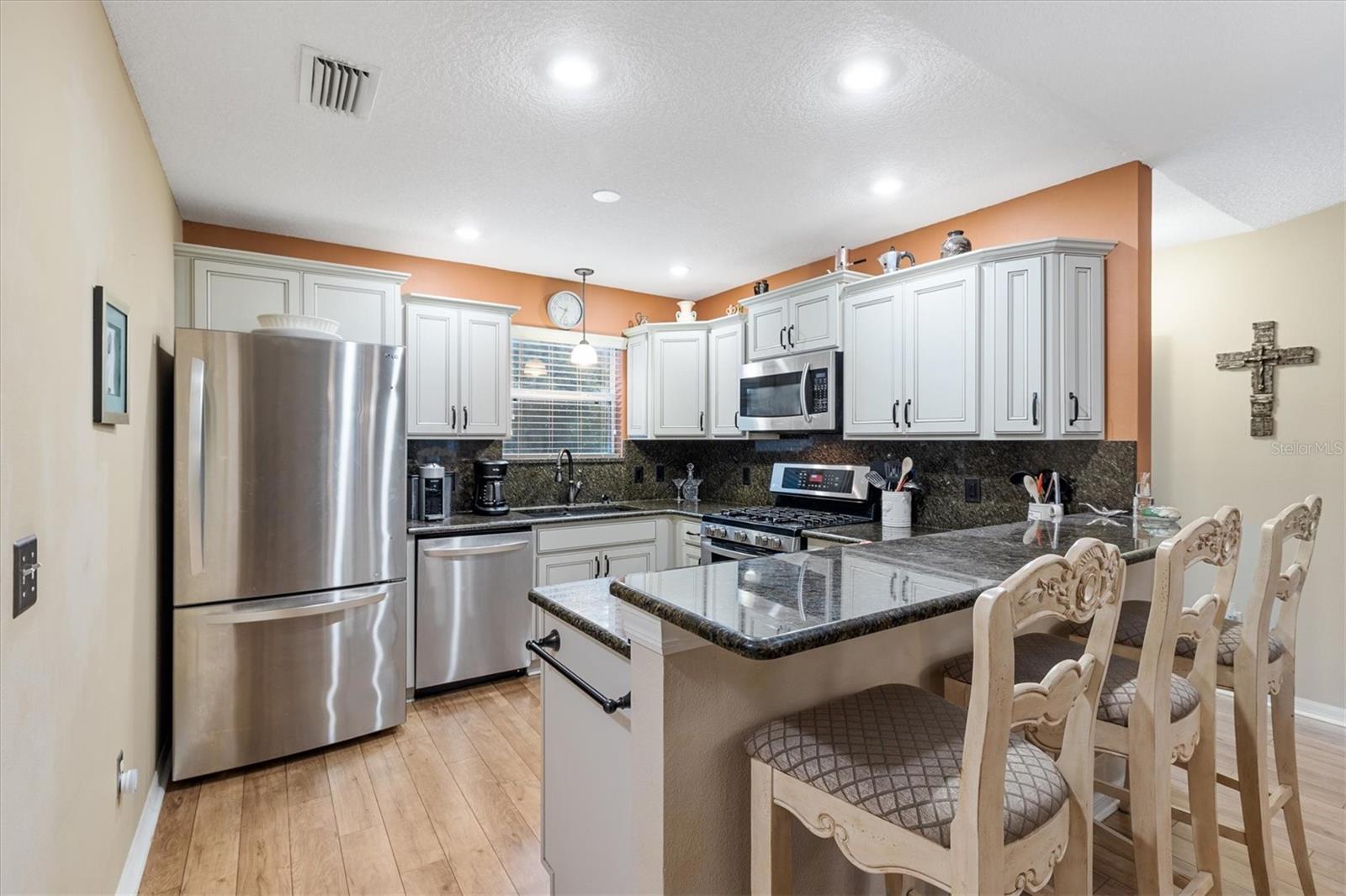 Bem-vindo a este modelo Corpus Christi de 3 quartos/2 BANHOS lindamente atualizado e totalmente mobiliado na vila de Chatham — SEM VINCULAÇÃO! Entre no luxo com melhorias sofisticadas de bom gosto por toda parte. Desde a acolhedora entrada e passarela pintada com Flagstone Design até o luxuoso PISO LAMINADO que abrange o interior, esta casa exala elegância a cada passo. Os pisos dos banheiros são adornados com lindos TELHA CERÂMICA com acabamento fosco, enquanto a cozinha e ambos os banheiros apresentam ARMÁRIOS DE AMPLIAÇÃO E BALCÕES DE GRANITO, criando uma mistura harmoniosa de estilo e funcionalidade. Com um TELHADO MAIS NOVO instalado em 2020 e a conveniência adicional de um aquecedor de água sem tanque, o conforto e a eficiência estão na vanguarda. Móveis e TVs de alta qualidade são encontrados em toda a casa, garantindo que o conforto e o entretenimento estejam perfeitamente integrados em todos os espaços. Aprecie a luz natural da LANAI FECHADA DE VIDRO com janelas deslizantes para deixar o ar fresco entrar e complementada por PERSONALIZADOS ROLLER SHADES para privacidade e ambiente. Do lado de fora, seu próprio oásis privado o aguarda no pátio de concreto manchado e estampado em estilo laje, onde um amplo espaço para entretenimento e grelhados o aguarda, cercado por um paisagismo maduro, porém minimalista, que oferece sombra, privacidade e fácil manutenção. Experimente o que há de melhor em relaxamento e requinte - atualize seu estilo de vida no Villages com esta casa excepcional. Ligue hoje para agendar um tour e descubra seu novo refúgio na Flórida!