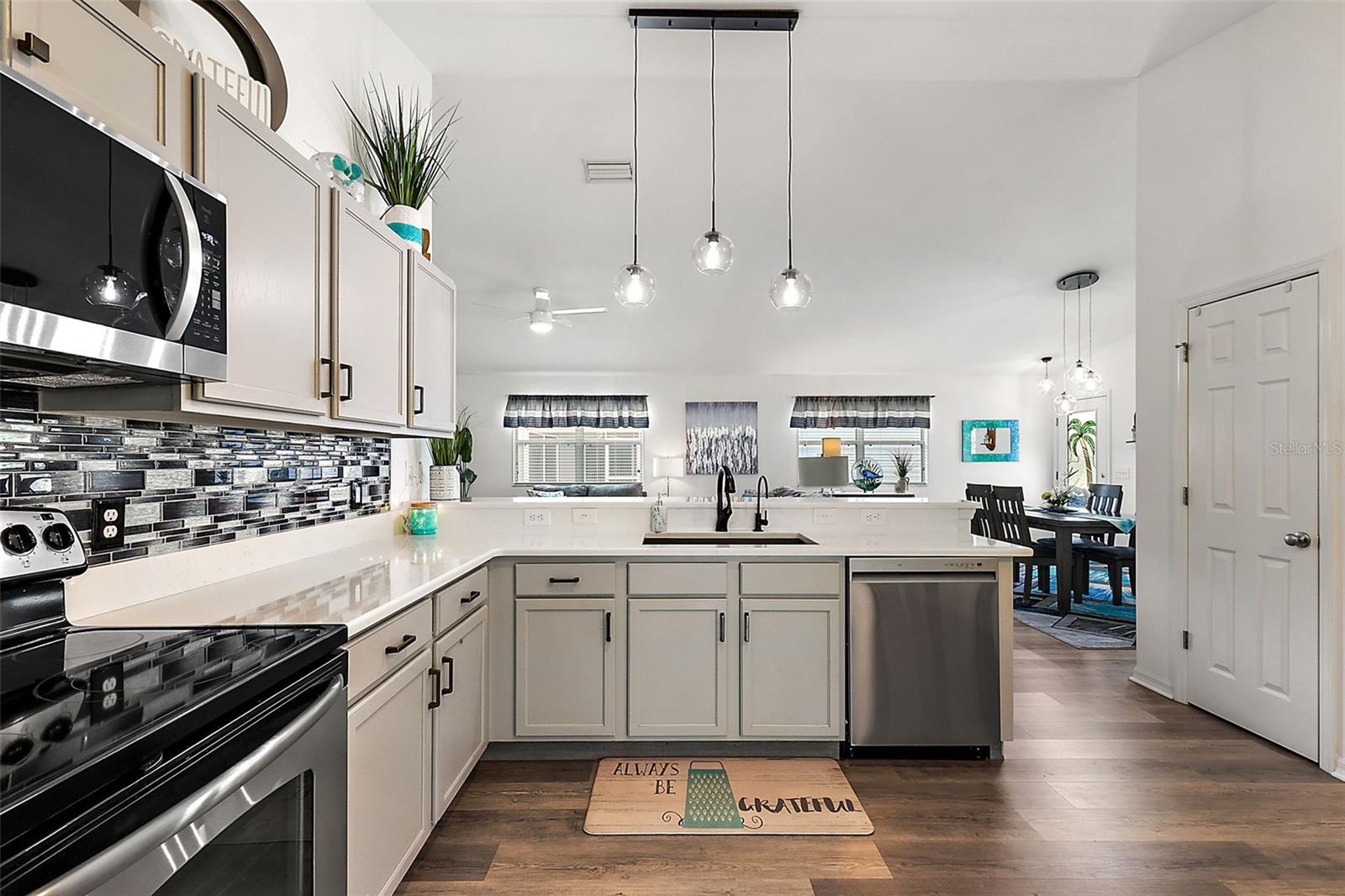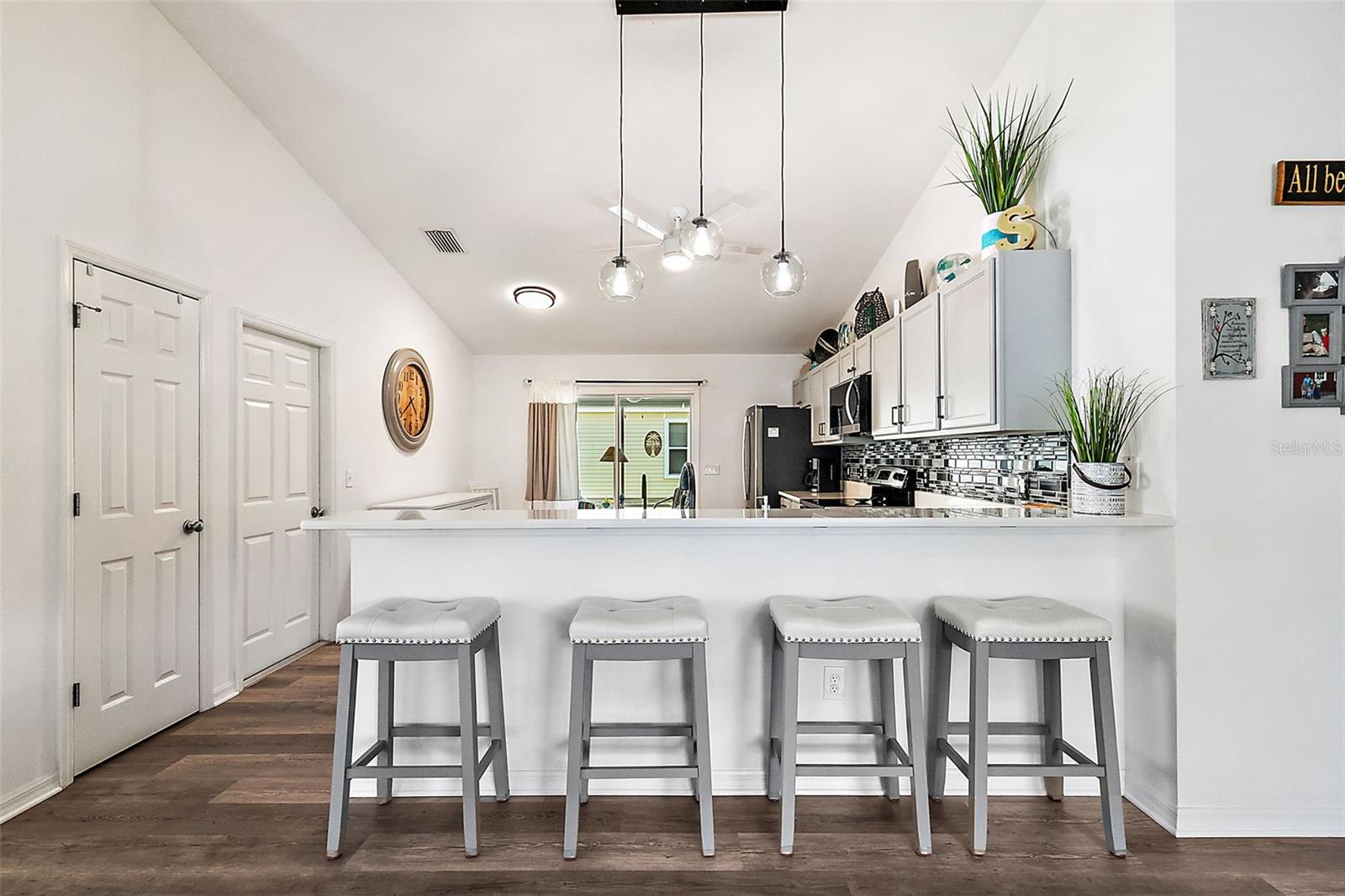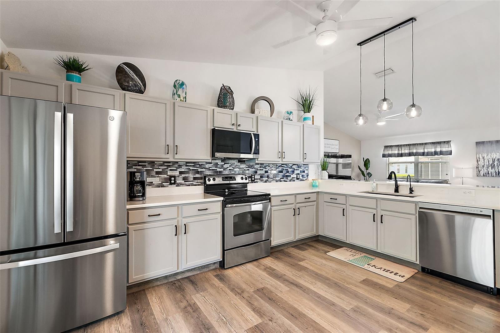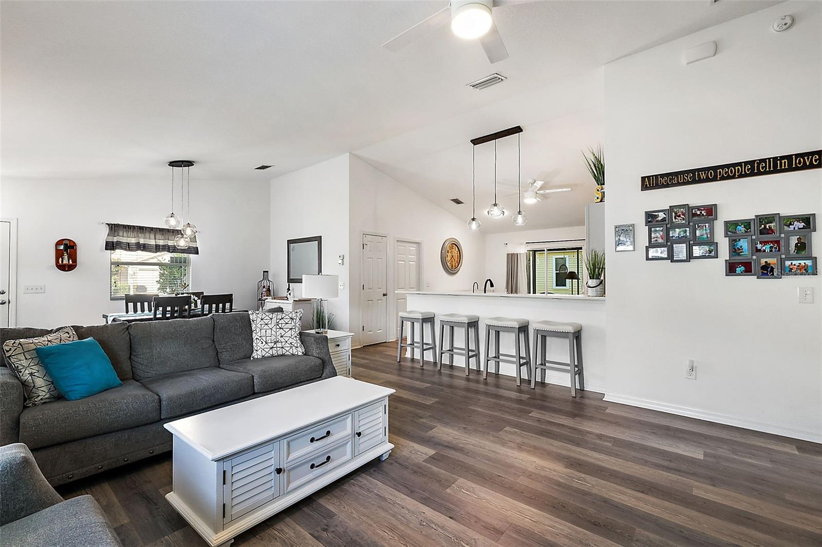 Bem-vindo à casa dos seus sonhos! Este modelo 3/2 Tuckett Inn lindamente atualizado, situado na procurada vila de Buttonwood, é uma verdadeira joia - exalando uma mistura perfeita de conforto e estilo. À medida que você se aproxima, a pintura DECORATIVA de alta qualidade da calçada e da passarela aumenta o apelo do meio-fio, convidando você para seu próprio retiro privado. Entre e você se sentirá imediatamente envolvido por uma sensação de calor e luxo. Projetada para uma vida moderna, esta casa apresenta uma PLANTA ABERTA com tetos abobadados que fluem facilmente de um espaço para outro, enquanto uma porta de correr proporciona privacidade entre a área de estar e os quartos. A prancha de vinil de luxo (LVP) garante uma vida de baixa manutenção nos próximos anos. O coração da casa está na deslumbrante COZINHA ATUALIZADA, adornada com bancadas de QUARTZO, uma grande barra de café da manhã, backsplash de TELHA, armários elegantes com prateleiras removíveis e NOVOS eletrodomésticos de aço inoxidável. O quarto principal oferece um santuário próprio, com belo piso LVP, tetos altos e um espaçoso closet WALK-IN. A casa também possui ventiladores de teto atualizados e luminárias por toda parte. Lindas bancadas de GRANITO e QUARTZO enfeitam ambos os banheiros; enquanto o banheiro de hóspedes também conta com um DUCHE lindamente ATUALIZADO, adicionando um toque de elegância que seus convidados certamente irão gostar. Saia para descobrir o lindo quintal PAISAGEM, completo com um charmoso pátio com PERGOLA e varanda com tela. Quer esteja a receber convidados ou a procurar momentos tranquilos de solidão, este espaço exterior irá certamente deliciar-se. Por último, mas não menos importante, a GARAGEM EXTRA-AMPLA com porta blindada e escadas rebatíveis no sótão oferece espaço para todas as suas necessidades de veículos e armazenamento. Recentemente renovada com mais de US$ 60.000 em melhorias, incluindo um NOVO sistema HVAC instalado em 2021, esta casa é uma prova da atenção meticulosa aos detalhes. Do piso às luminárias, cada canto foi cuidadosamente pensado para garantir um ambiente moderno e convidativo. Para maior comodidade, foram instalados um sistema de água por osmose reversa (embaixo da pia da cozinha) e um amaciante de água para toda a casa (na garagem), fornecendo água pura para suas necessidades diárias. Móveis frontais para área de estar externa, todos os tratamentos de janela da casa e uma geladeira extra na garagem estão incluídos, aumentando o fascínio da casa. Com suas atualizações cuidadosas e design impecável, esta casa oferece o máximo em conforto e luxo a um preço acessível. Não perca a chance de torná-lo seu! A vila de Buttonwood está convenientemente localizada perto de Lake Sumter Landing e Brownwood Paddock Square, Cane Garden Country Club e campo de golfe profissional, centros recreativos regionais Seabreeze e Lake Miona, Colony Plaza, Pinellas Plaza e County Road 466 com uma abundância de lojas, restaurantes , bancário e médico. ASSISTA NOSSO VÍDEO PASSADO DESTA LINDA CASA e LIGUE HOJE para agendar sua exibição privada ou tour virtual!