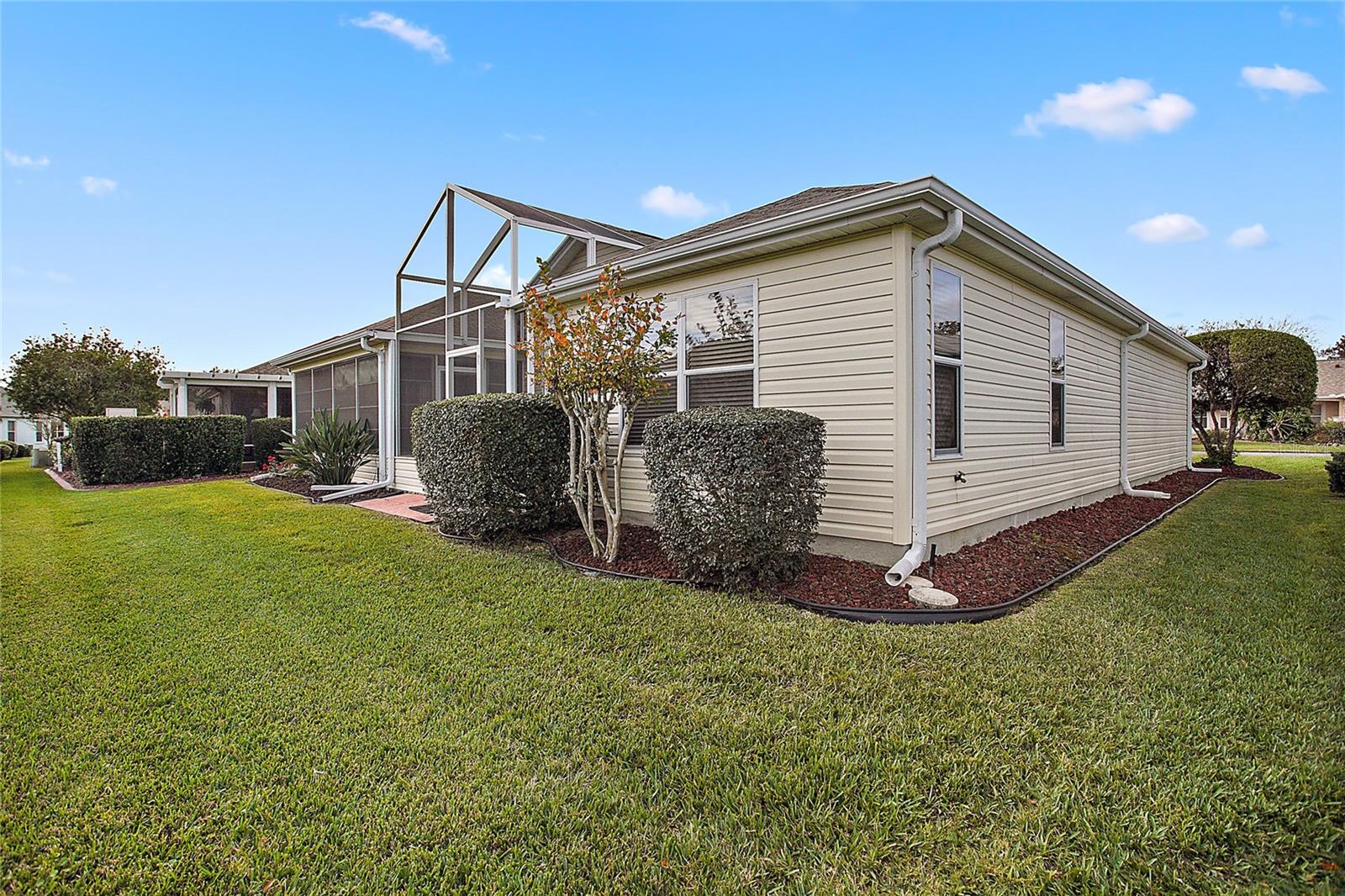 Sistema de irrigação, calhas de chuva, calçada, portas de correr