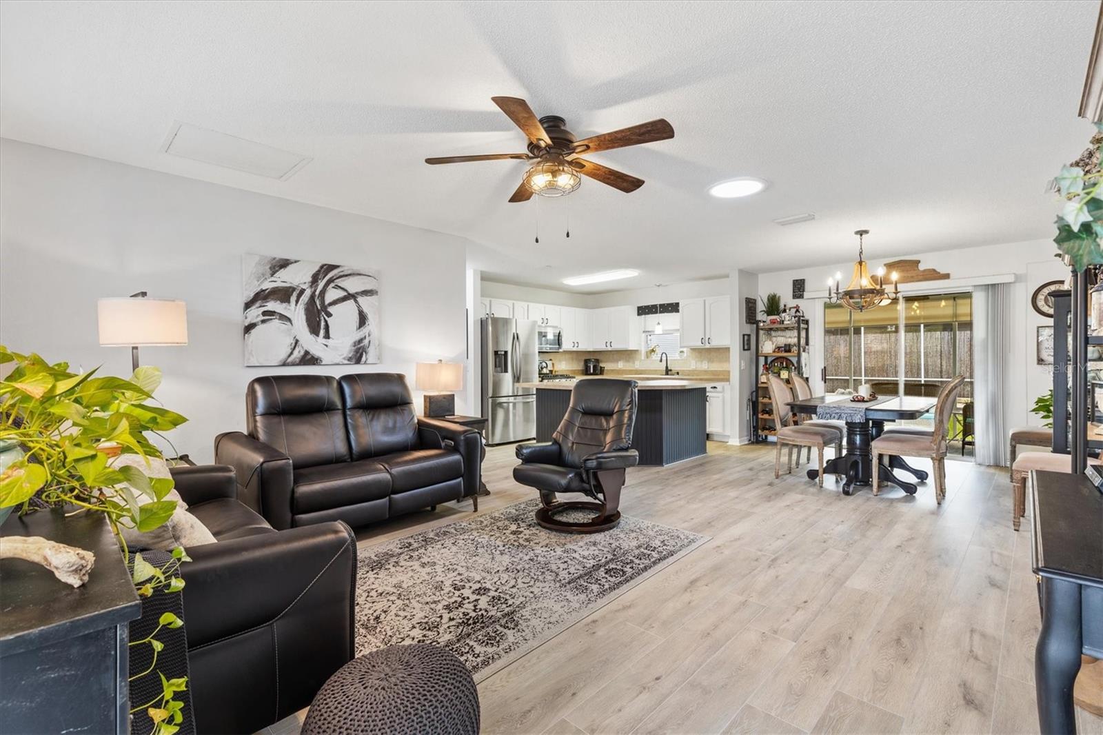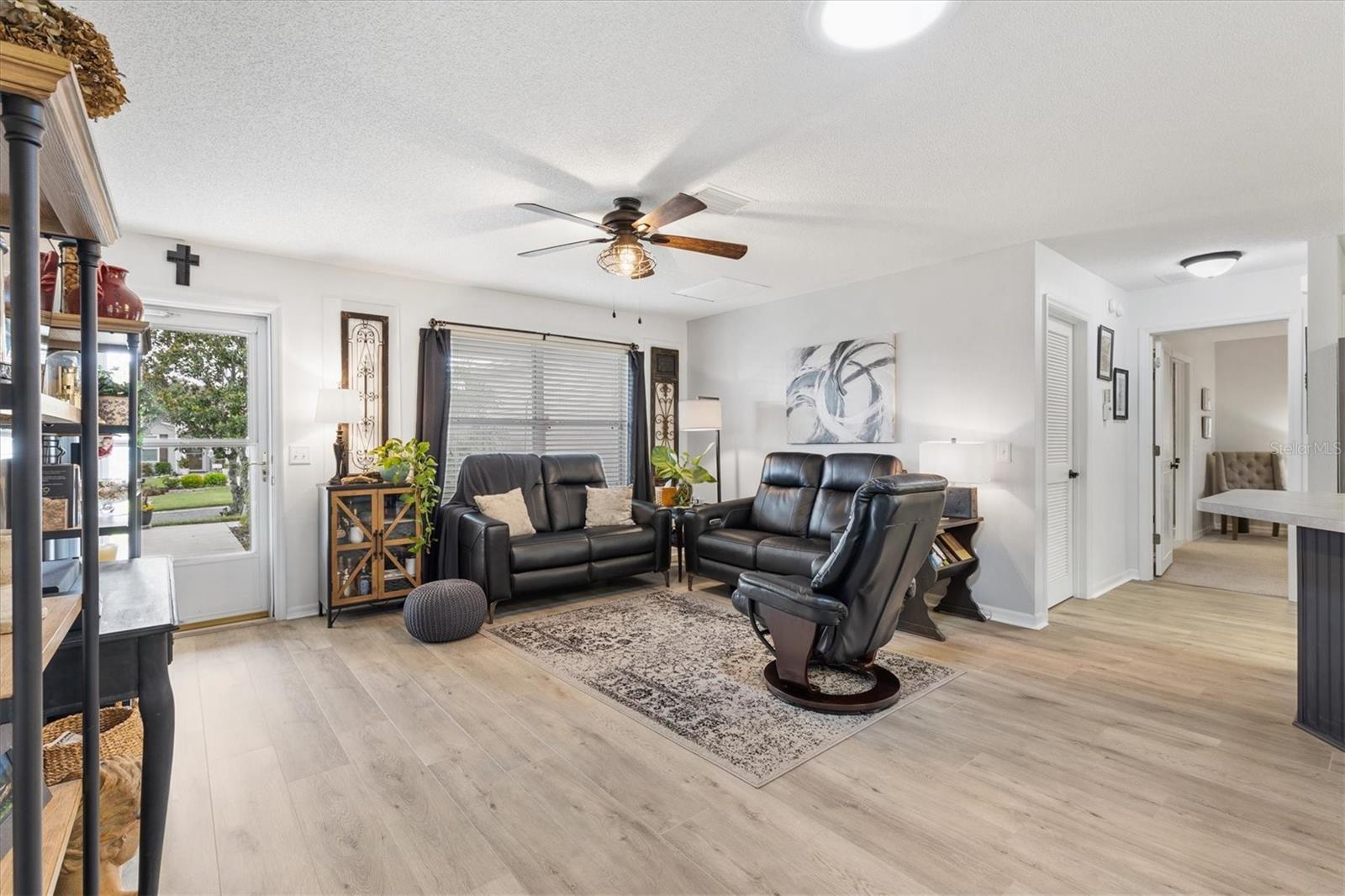 Localização! Localização! Localização! Sem garantia para este lindo 3/2 Amarillo localizado na vila de Caroline. 1,6 km até o Lago Sumter Landing e minutos de carrinho de golfe até Spanish Springs e Brownwood Paddack Square. Garantia de telhado Rejuvenescer de 5 anos adicionada em 2024. Entre na casa pela convidativa varanda coberta para esta planta aberta e dividida completa com ventiladores de teto com luzes. Os novos pisos laminados à prova d'água com aparência de madeira Blue Ocean enfeitam as áreas públicas. Banheiros e lavanderia possuem piso de cerâmica. A Bright Open Kitchen possui uma grande ilha com armazenamento adicional, eletrodomésticos de aço inoxidável, geladeira francesa, backsplash de azulejos, fogão a gás de 5 bocas e convenientes prateleiras extraíveis. A suíte master tem um grande closet e banheiro privativo atualizado com pia dupla, box amplo e armário de roupas de cama. Os quartos de hóspedes compartilham um banheiro atualizado com combinação de banheira e chuveiro. Aproveite a varanda com ventilador de teto com luz e controle remoto, bem como acesso ao pátio externo para grelhar. . As características adicionais incluem um tubo solar no banheiro de hóspedes e na sala de estar, um armário de roupa de cama adicional no banheiro de hóspedes, 3º quarto tem porta de acesso à varanda, garagem com tela de privacidade elétrica, despensa interna atualizada com prateleiras, armário de armazenamento e um porta da frente de tempestade de vidro. Convenientemente localizado perto o suficiente para caminhar até Caroline Adult, Mallory Hill e Coconut Cove Pools. A menos de dois quilômetros do Campo de Golfe Mallory Hill Championship. Os Campos de Golfe Executivo Bacall e Bogart estão a menos de 3,2 km de distância. Esta casa está localizada em um bairro muito procurado. Ligue agora para agendar sua exibição privada e comece a viver o Sonho das Aldeias! Por favor, assista ao vídeo desta linda casa.