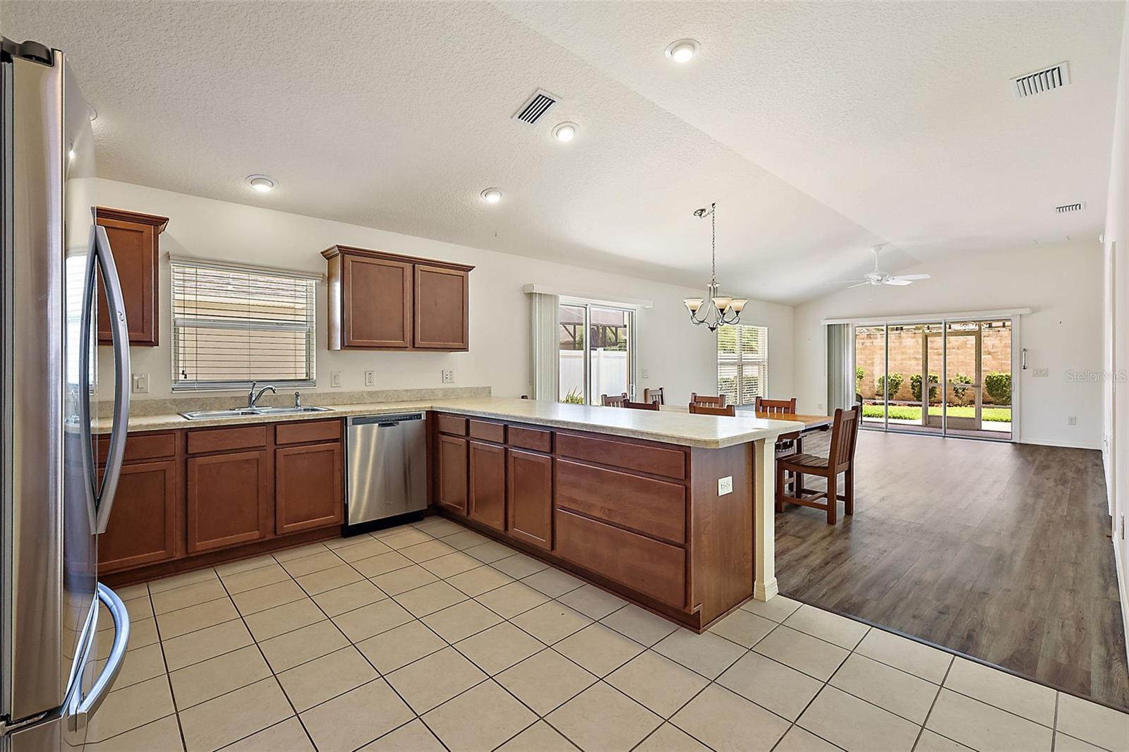 Uma ou mais fotos foram virtualmente encenadas. Bem-vindo a esta encantadora vila de bangalôs em Charlotte com 3 quartos e 2 banheiros, que oferece uma espaçosa planta de conceito aberto e amplo espaço para uma futura piscina na vila de Charlotte. A alta parede de alvenaria proporciona privacidade excepcional. Entre na varanda frontal e entre em uma planta convidativa aberta com sala de estar e sala de jantar adornada com tetos abobadados e lindo piso de vinil de madeira. A cozinha possui armários de madeira, piso de cerâmica, eletrodomésticos de aço inoxidável e amplo balcão, perfeito para entusiastas da culinária. O quarto principal impressiona com um TETO DE BANDEJA, amplo closet e banheiro privativo com box amplo. Dois quartos adicionais também possuem piso de madeira vinílica e compartilham um banheiro convenientemente localizado com combinação de chuveiro e banheira. Para maior comodidade, uma lavanderia interna inclui prateleiras e uma pia funda, facilitando as tarefas domésticas. Do lado de fora, uma varanda traseira se abre para um espaçoso pátio traseiro e tem vista para o quintal, cercado por uma grande parede traseira de tijolos para privacidade e segurança. Esta casa combina comodidades modernas com charme clássico, oferecendo a combinação ideal de conforto e funcionalidade. Não perca a oportunidade de possuir este encantador imóvel em um local muito procurado. Contate-nos hoje para um tour privado! A vila de Charlotte está convenientemente localizada entre Lake Sumter Landing e Brownwood Paddock Square; Perto do Sarasota Golf Practice Center, do Campo de Golfe Executivo Roosevelt, do Campo de Golfe Executivo Sandhill e do Campo de Golfe Executivo Palmetto; três piscinas comunitárias, golfe e pickleball; e 466 com abundância de lojas, restaurantes, bancos e serviços médicos. ASSISTA NOSSO VÍDEO PASSADO DESTA LINDA CASA e ligue hoje mesmo para agendar sua exibição privada ou tour virtual!