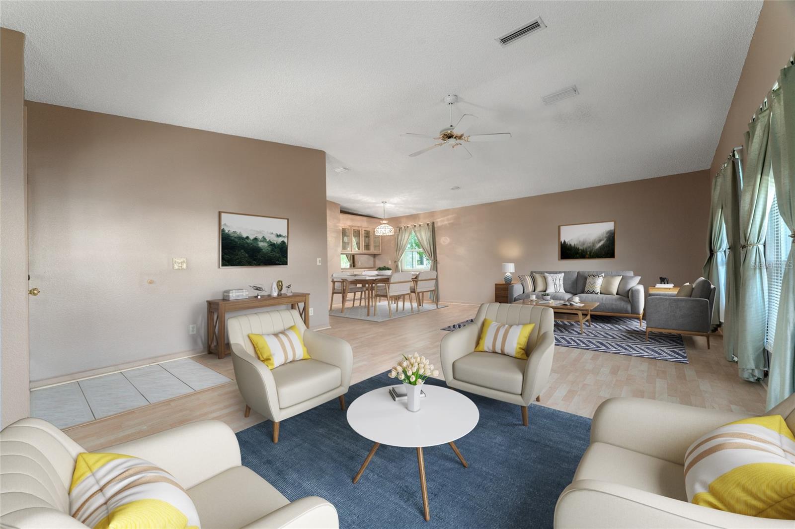 Uma ou mais fotos foram virtualmente encenadas. ACHADO RARO NAS ALDEIAS!!! Espaçosa casa de tijolos claros sem vínculo em uma excelente localização perto de Spanish Springs e Lake Sumter Landing!! Exterior deslumbrante com lindos pavimentos na entrada e no pátio e um paisagismo exuberante e maduro para exibir aqueles tijolos requintados. Mais de 2.100 pés quadrados de área útil tornam esta casa uma das casas com preço mais baixo por pé quadrado disponíveis para venda por US $ 167 por pé quadrado. Esta linda casa tem muito a oferecer... para começar, fica em um Cul De Sac que oferece uma área muito maior e muita privacidade. 3 quartos, 2 casas de banho e um enorme espaço para sala e cozinha que inclui uma simpática zona de bar. A casa não só tem mais de 2.100 pés quadrados, mas também tem uma enorme varanda fechada para desfrutar da privacidade tranquila desta casa. Um dos quartos pode facilmente ser transformado em Suíte para Sogras, pois possui pátio próprio e entrada privativa. Novo telhado em 2021, novo HVAC em 2021, outro HVAC em 2007 e novas janelas em 2010. Esta Villages Home é definitivamente algo que você não encontrará todos os dias, então não hesite em marcar uma exibição privada. O proprietário considerará o financiamento do proprietário.