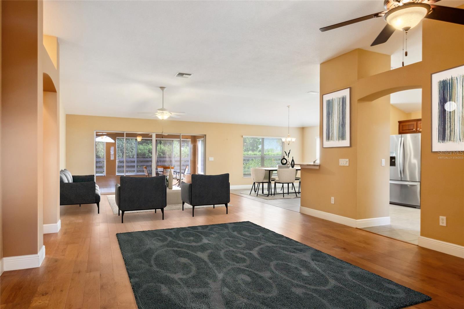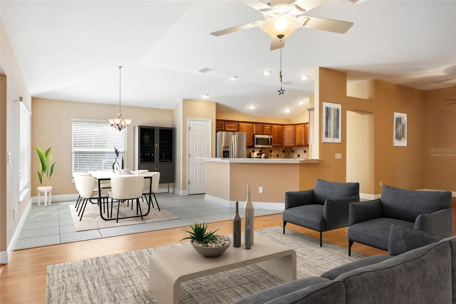 Uma ou mais fotos foram virtualmente encenadas. Melhoria de preço neste modelo EXTENDED LANTANA meticulosamente mantido na área de Sabal Chase, perto de Sumter Landing. Esta grande casa oferece impressionantes 2.074 pés quadrados de área útil, com TETOS ALTOS e uma combinação de madeira projetada e azulejos de cerâmica - SEM TAPETE por toda parte! A caução está PAGA e um NOVO TELHADO foi instalado em 2024 para sua tranquilidade. A cozinha é espaçosa e equipada para cozinhar, assar e se divertir. Elegantes bancadas de GRANITO, backsplash de azulejos, eletrodomésticos de aço inoxidável, fogão a gás, sistema de filtragem de água NOVA e uma espaçosa despensa estão todos aqui. A lavanderia interna foi cuidadosamente projetada com lavadora/secadora de grande capacidade, pia e armários e bancadas adicionais, proporcionando ESPAÇO DE TRABALHO E ARMAZENAMENTO EXTRA, raramente encontrados em The Villages. Aproveite seu café da manhã na ampla LANAI FECHADA DE VIDRO de 26'x12', completa com AC MINI-SPLIT, telas e persianas defletoras de calor, garantindo conforto durante todo o ano. O PÁTIO adjacente, SEM VIZINHOS ATRÁS, oferece amplo ESPAÇO AO AR LIVRE e privacidade. DOIS GRANDES QUARTOS DE HÓSPEDES oferecem uma área confortável e privada para os hóspedes, sala de artesanato, escritório doméstico ou caverna masculina. A GARAGEM ESTENDIDA acomoda seu VEÍCULO E CARRINHO DE GOLFE. Desfrute de ACESSO CONVENIENTE à estação de correio, à piscina para adultos, ao Centro Recreativo Bacall e ao Colony Plaza, tudo a apenas um rápido passeio de carrinho de golfe. Além disso, o Mallory Hill Country Club e o campo de golfe profissional, juntamente com o campo de golfe executivo Bacall/Bogart, estão localizados nas proximidades. Experimente o estilo de vida vibrante de The Villages com 110 piscinas, 241 quadras de pickleball, 40 campos executivos e 12 campos de golfe profissionais. Quatro praças da cidade oferecem lojas, restaurantes e entretenimento noturno 365 dias por ano. Traga sua escova de dentes e comece hoje mesmo a viver o seu sonho!
