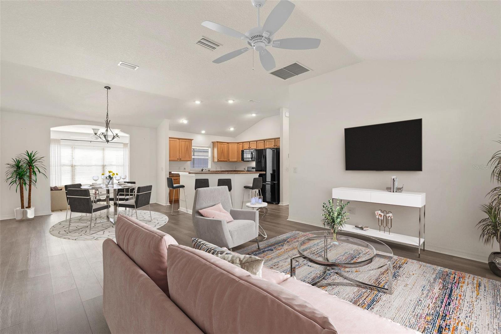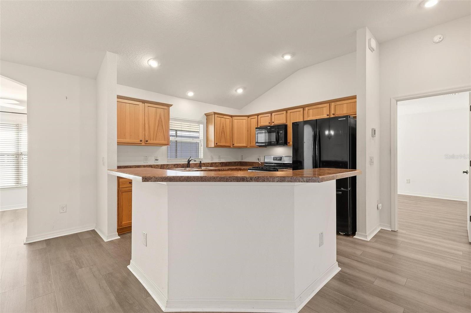 Alamanda lindamente conservada na vila de Lake Deaton. A apenas 7 minutos de Brownwood, este encantador 1.559 pés quadrados 3/2 com muitas atualizações tem piso LVP e tetos texturizados (sem pipoca!). A planta baixa aberta aumenta a conveniência, otimiza a luz e expande suas opções de entretenimento. A cozinha possui lindos armários de madeira HICKORY com gavetas inferiores removíveis e prateleiras de canto em carrossel. A geladeira tem portas estilo café e um freezer removível para fácil acesso. Para melhorar a sua experiência culinária, esta casa totalmente elétrica foi atualizada para um fogão a gás propano! Seu quarto principal tem closets duplos e o chuveiro privativo tem azulejos do chão ao teto, além de assentos embutidos e barras para deficientes físicos para maior segurança. Pias duplas garantem que não haja luta por espaço. O banheiro é interno e possui lavadora LG Direct Drive e secadora Senor Dry. A garagem para 2 carros também foi atualizada com uma tela mecânica ‘Skeeter Beater’. A varanda da frente é protegida para maior privacidade e sombra. O telhado e o aquecedor de água são de 2014, e um NOVO HVAC instalado em outubro de 2024. Para maior segurança durante os tempestuosos verões da Flórida, há um protetor contra surtos de tensão para toda a casa. Perto de lojas, restaurantes requintados, entretenimento noturno, centros recreativos, clubes de campo, golfe e instalações médicas. Bem-vindo à sua base para seu novo estilo de vida ativo em The Villages! (Algumas fotos foram virtualmente encenadas).