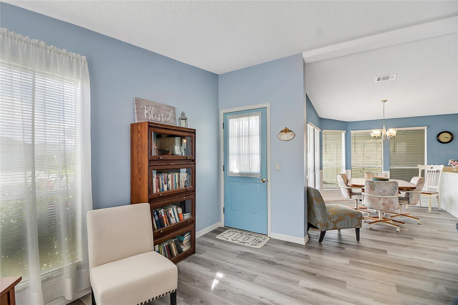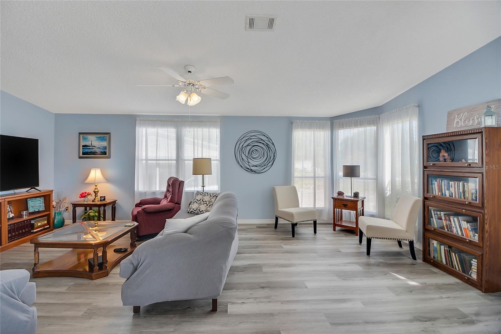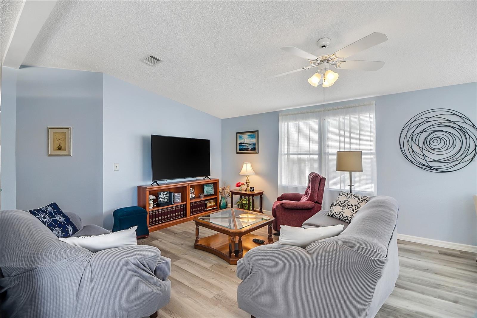 TELHADO NOVO EM ABRIL DE 2024 E SEM GARANTIA nesta atraente casa de 2 quartos e 2 banheiros com uma enorme sala de bônus, além da opção de ser vendida CHAVE NA MÃO. Esta linda casa tem uma garagem que acomoda um veículo MAIS um carrinho de golfe e a localização é maravilhosa, situada a apenas 1 minuto de Spanish Springs! Há novas pranchas de vinil luxuosas em tons de cinza claro nas áreas principais, azulejos nos banheiros e carpetes nos quartos. Além de muita luz solar natural, possui pé-direito alto, lavanderia INTERIOR, ventiladores de teto, grade para cadeiras na sala de jantar, além de uma enorme sala de bônus (15X19). O interior foi recentemente pintado em azuis e cinzas calmantes. A cozinha é luminosa e luminosa com armários brancos, ilha, armários de despensa e partilha o espaço com a zona de refeições que é envolta em janelas. A LAVANDERIA INTERNA também fica ao lado da cozinha. O quarto principal tem uma suíte master superdimensionada (18 x 20-WOW), com um grande closet, uma penteadeira com muito espaço para armazenamento e uma grande banheira de hidromassagem. O segundo quarto também é bastante espaçoso (11x13) com um longo armário de parede. O banheiro de hóspedes tem uma combinação de chuveiro/banheira. A enorme sala de bônus pode ser usada para diversos fins, há até uma cama embutida lá! Há um telhado totalmente novo, aquecedor de água sem tanque (2019) e HVAC (2017). Há um grande galpão anexo à garagem que é ótimo para armazenamento! Todas as comodidades do The Villages estão incluídas, além de lojas, restaurantes fantásticos, supermercados, consultórios médicos e a Praça da Cidade de Spanish Springs, que oferece entretenimento noturno, a poucos minutos de distância! Ligue hoje para sua exibição privada!