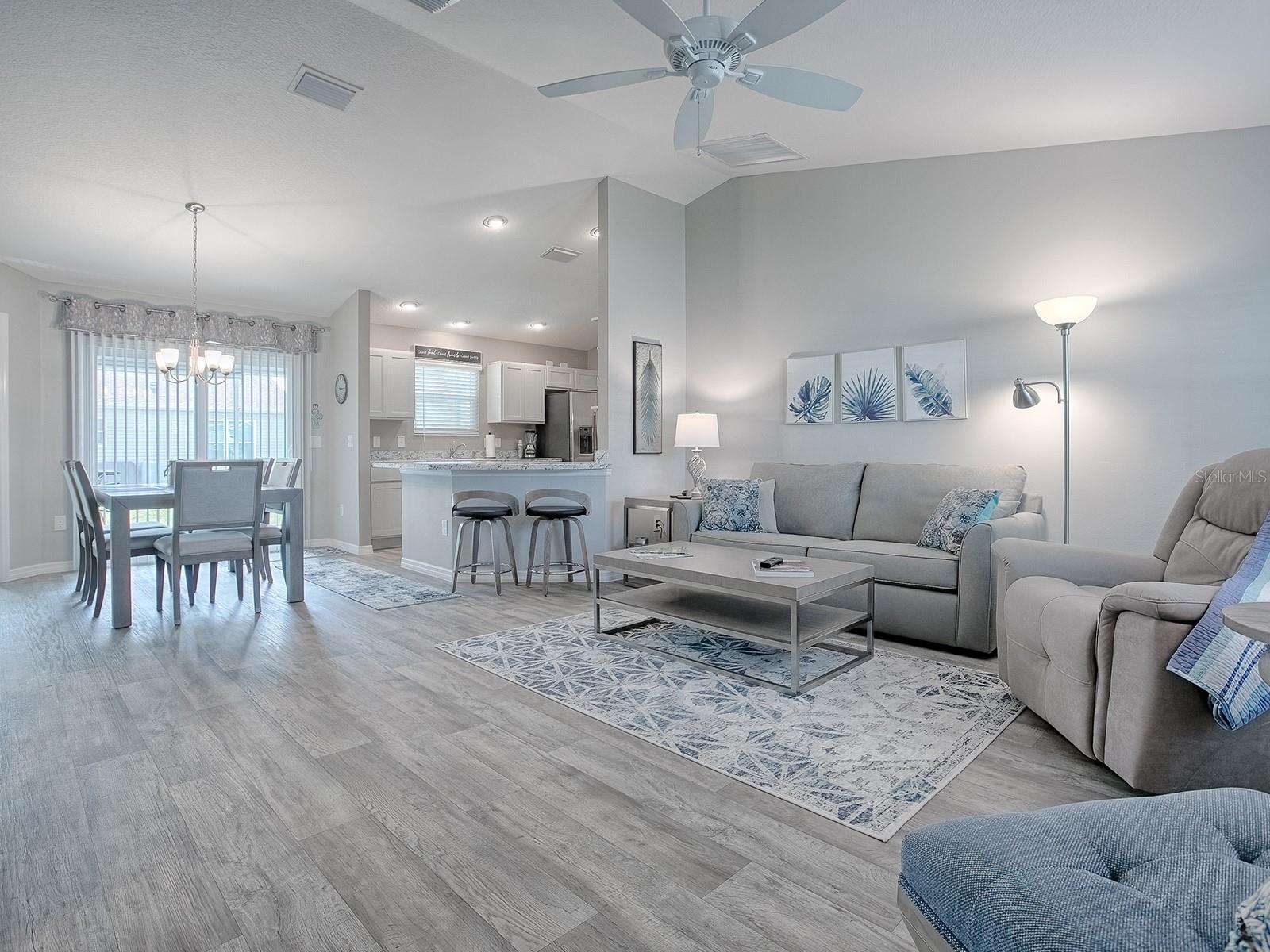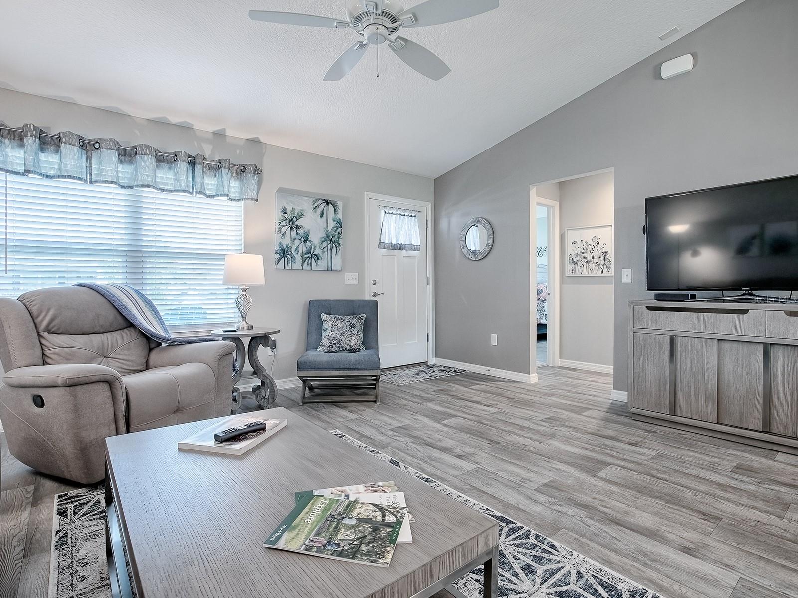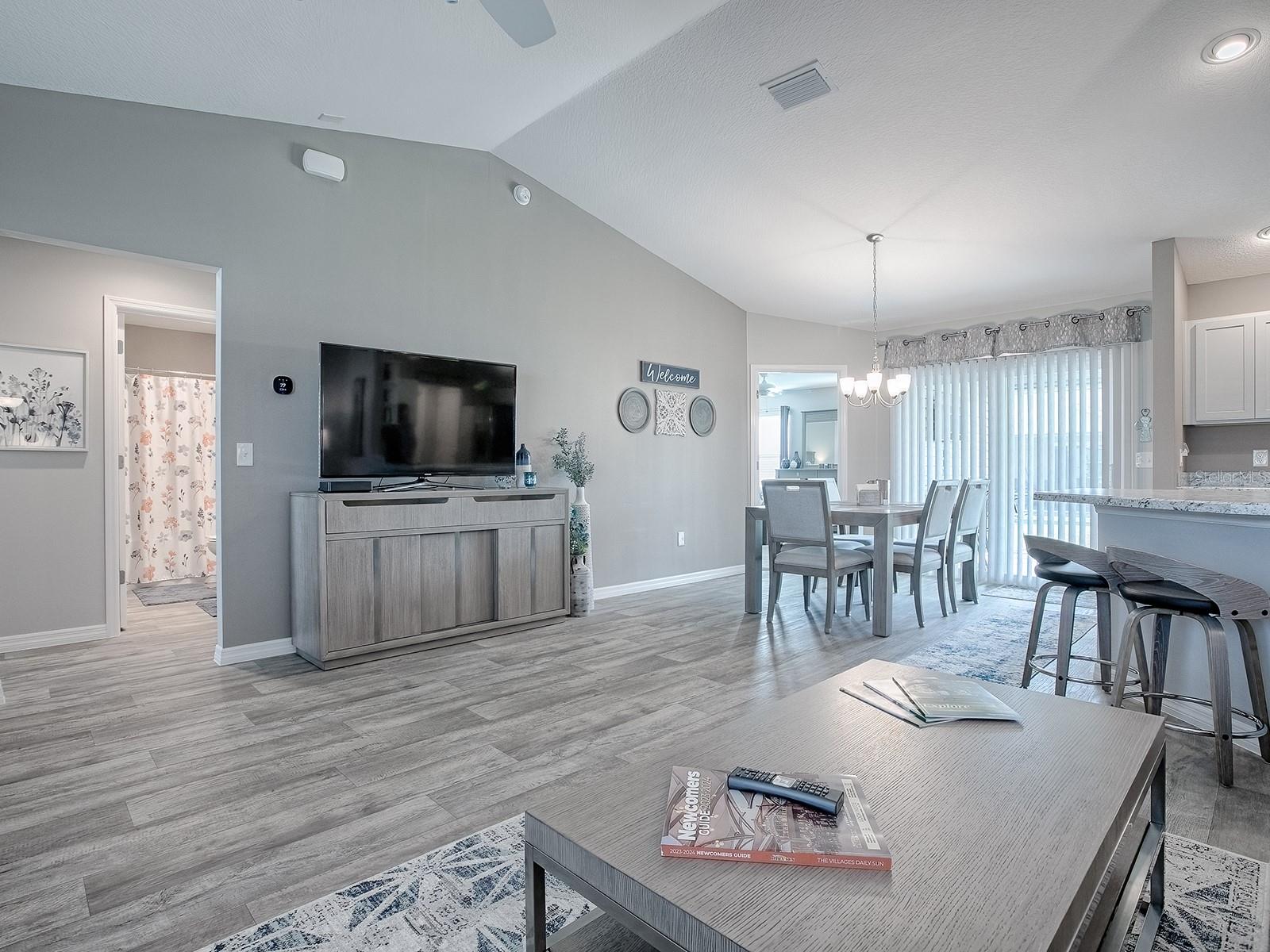 Bem-vindo a esta encantadora e meticulosamente mantida Sand Dollar Cottage Home, situada no coração da vila de St. Catherine, a apenas um quarteirão do vibrante Sawgrass Grove. Com uma condição imaculada, "como nova", esta espaçosa casa de 2 quartos e 2 banheiros está lindamente decorada e é totalmente mobiliada e bem equipada, tornando-a verdadeiramente pronta para você se mudar. Situado em uma rua serena no cobiçado bairro de St. Catherine, você está a apenas uma curta e agradável caminhada de 2 piscinas refrescantes e da movimentada "Mini-Square" de Sawgrass Grove, onde você pode mergulhar na atmosfera animada que oferece uma fantástica variedade de opções de compras, restaurantes e entretenimento. Desfrute de uma refeição no McGrady's Restaurant & Pub, explore as diversas ofertas no The Sawgrass Market ou assista a algum entretenimento noturno no Box Car Stage. Participe de competições amistosas no Clifton Cove Putting Course ou aproveite o Ezell Regional Recreation Complex, nas proximidades. Experimente a beleza das pitorescas trilhas para caminhada e ciclismo de Santa Catarina que percorrem a comunidade e conectam você às aldeias vizinhas. O Southern Oaks Championship Golf Course fica convenientemente a apenas 3 minutos de carrinho de golfe, oferecendo fácil acesso a campos de golfe de alto nível. Além disso, a próxima área de entretenimento de Eastport fica a apenas 10-12 minutos de carrinho de golfe da sua porta. Esta encantadora casa de campo oferece a combinação perfeita de conforto, conveniência e estilo, tornando-a um retiro ideal em um bairro próspero e dinâmico. Não perca a oportunidade de possuir esta casa excepcional e comece a experimentar o melhor da vida em The Villages!