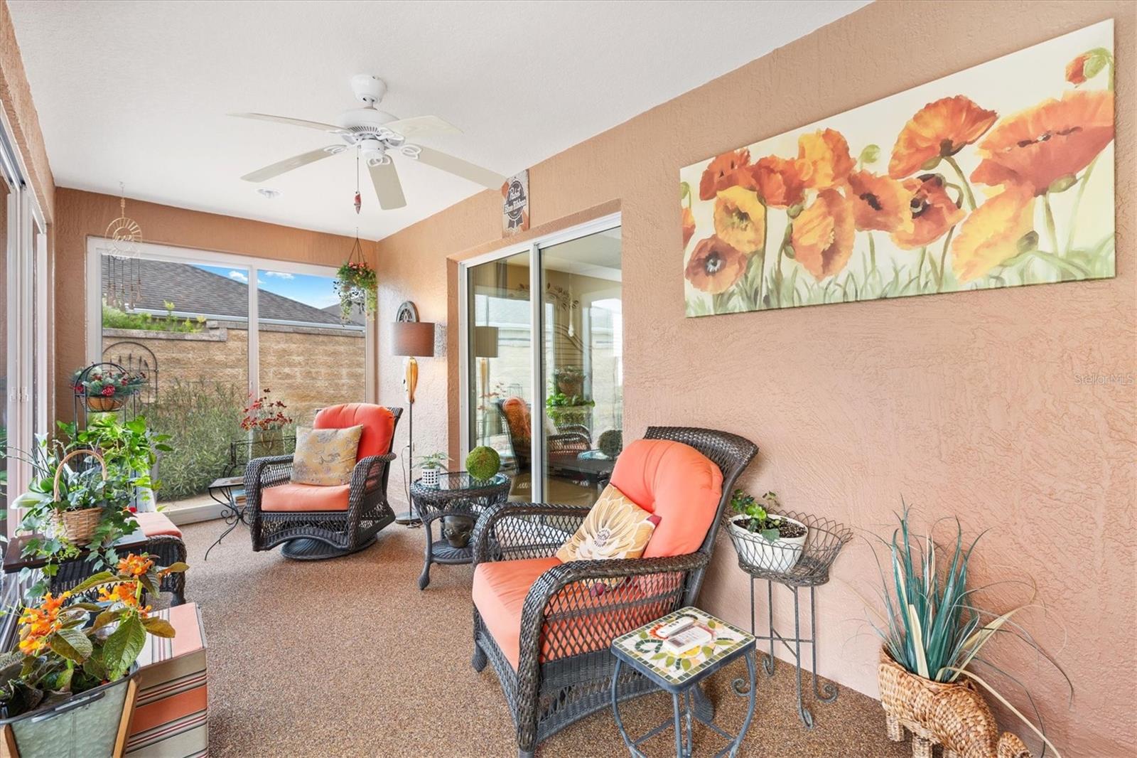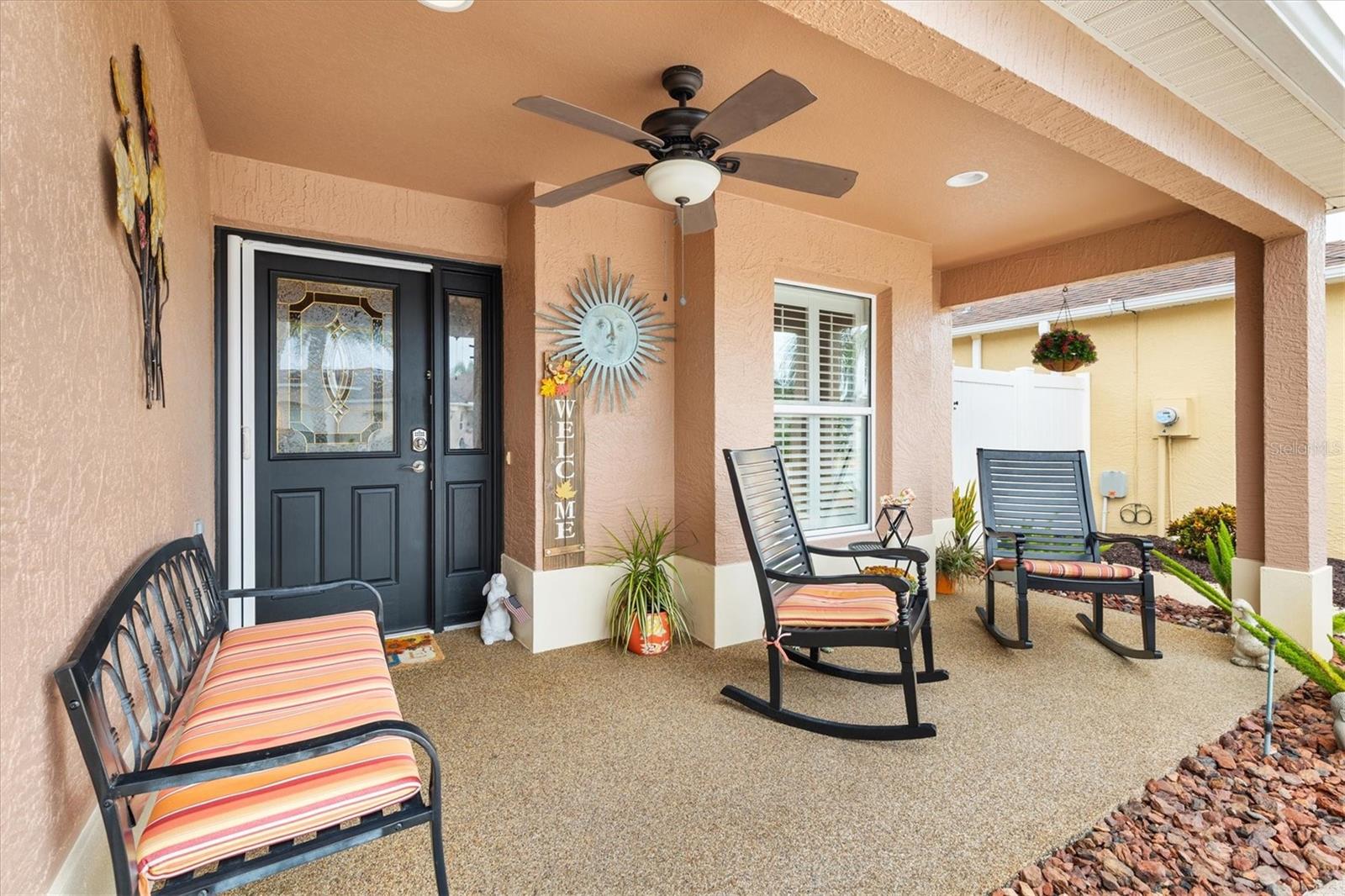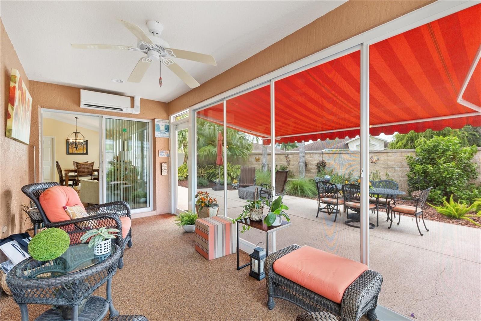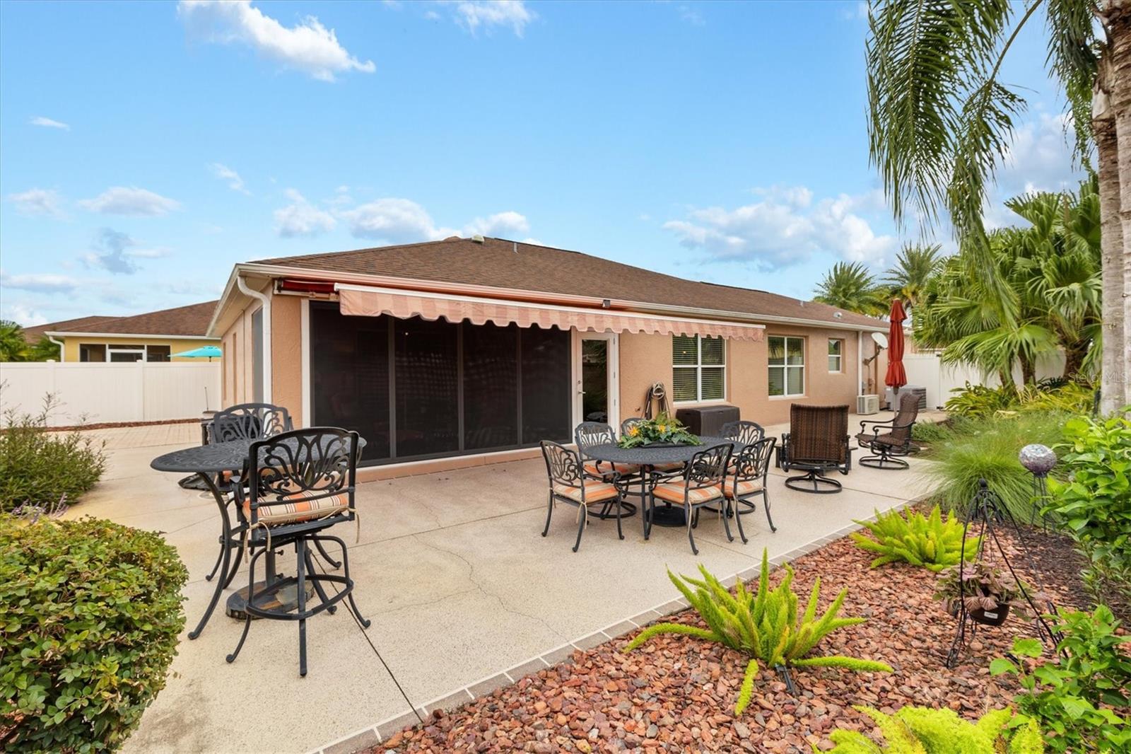 3/2 Vila Arlington na vila de Sanibel. Esta unidade final possui um pátio espaçoso, perfeito para uma banheira de hidromassagem ou piscina. SEM VÍNCULO! Aproveite para visitar os vizinhos em sua varanda coberta e entre pela deslumbrante porta de vitral em uma área de estar aconchegante. A ilha de cozinha com balcão cria um fluxo contínuo nas áreas públicas, ideal para entretenimento. Persianas e cornijas enfeitam as janelas, enquanto o porcelanato realça o piso. Portas deslizantes levam a Lanai fechado e com temperatura controlada, perfeito para diversão durante todo o ano. Beneficie-se de um sistema de ar condicionado mini-split, janelas do chão ao teto e pisos de pedra de rio, além de acesso direto ao quarto principal e ao pátio paisagístico. Um toldo elétrico fornece sombra adicional, tornando o pátio da vila um refúgio perfeito. A cozinha possui eletrodomésticos de aço inoxidável escuro, bancadas de granito, backsplash de azulejos de metrô, iluminação sob os armários, iluminação embutida, despensa e ilha. A barra de café da manhã Granite é expandida 6” em todos os lados. Os quartos de hóspedes são acarpetados, possuem ventiladores de teto, venezianas e compartilham um banheiro com banheira e chuveiro. A suíte Primária possui closet com prateleiras personalizadas e banheiro privativo com pia dupla, armário de roupa de cama e chuveiro com box de vidro. A suíte principal e 1 quarto de hóspedes têm tetos de bandeja. A lavanderia fica convenientemente interna, com pia de lama, armários de armazenamento e uma prateleira suspensa. A Garagem alberga bancada de trabalho, armário de arrumação com prateleiras embutidas, kit de escadas de sótão e espaço para carro e carrinho de golfe. As características adicionais desta casa são: sanca, prateleiras removíveis na cozinha e nos banheiros, tubo solar no banheiro principal, tela elétrica na garagem, porta frontal com tela fantasma e piso de garagem e garagem em epóxi. A apenas 1,6 km do Colony Recreational Center, lojas e restaurantes no Colony Plaza e entre os centros Sumter Landing e Brownwood Town para restaurantes e entretenimento Saboreie a vida com tudo o que The Villages e arredores têm a oferecer. Não deixe de assistir ao nosso tour virtual por esta maravilhosa casa e agende um horário para vê-la hoje mesmo!