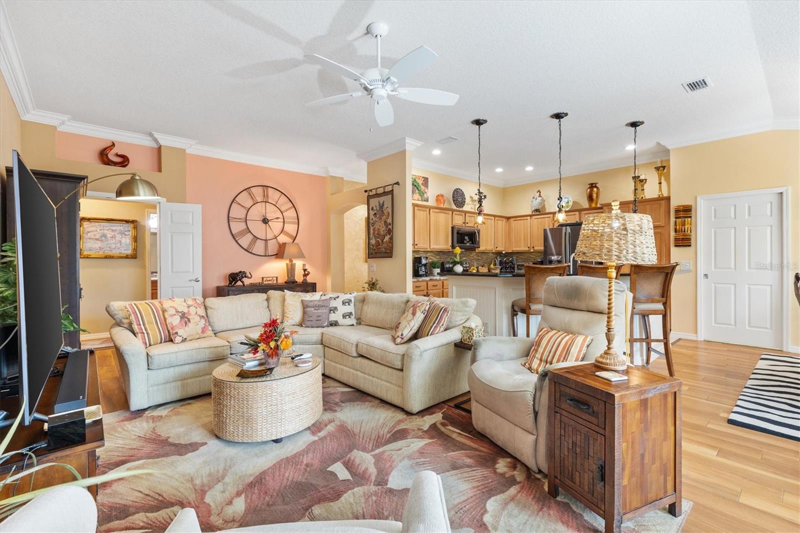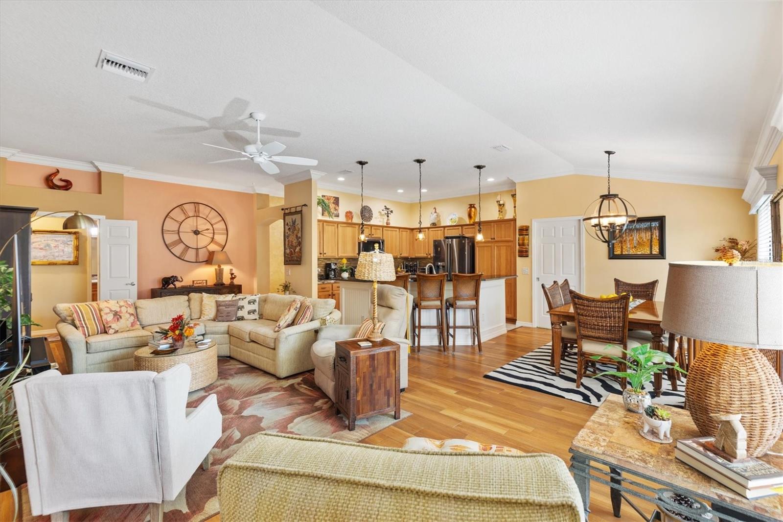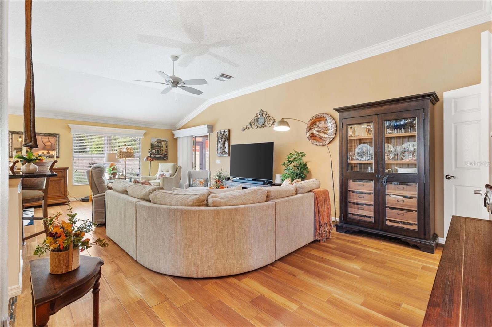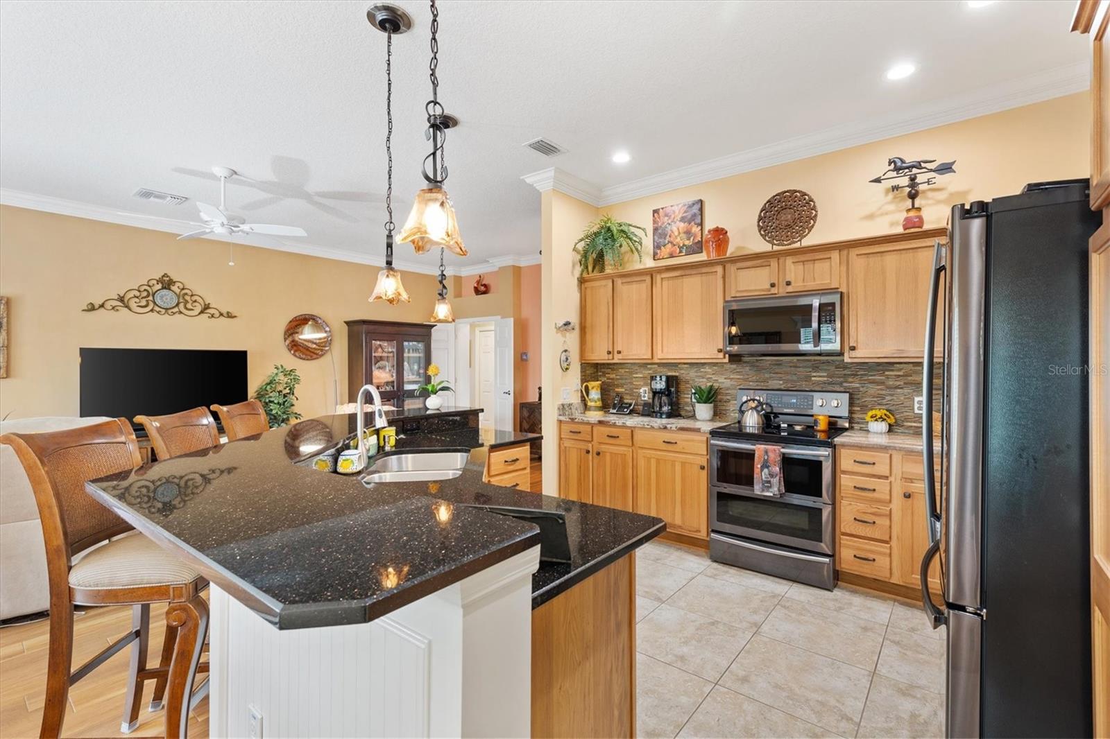 3/2 Vila Arlington na vila de Sanibel. Esta unidade final possui um pátio espaçoso, perfeito para uma banheira de hidromassagem ou piscina. SEM VÍNCULO! Aproveite para visitar os vizinhos em sua varanda coberta e entre pela deslumbrante porta de vitral em uma área de estar aconchegante. A ilha de cozinha com balcão cria um fluxo contínuo nas áreas públicas, ideal para entretenimento. Persianas e cornijas enfeitam as janelas, enquanto o porcelanato realça o piso. Portas deslizantes levam a Lanai fechado e com temperatura controlada, perfeito para diversão durante todo o ano. Beneficie-se de um sistema de ar condicionado mini-split, janelas do chão ao teto e pisos de pedra de rio, além de acesso direto ao quarto principal e ao pátio paisagístico. Um toldo elétrico fornece sombra adicional, tornando o pátio da vila um refúgio perfeito. A cozinha possui eletrodomésticos de aço inoxidável escuro, bancadas de granito, backsplash de azulejos de metrô, iluminação sob os armários, iluminação embutida, despensa e ilha. A barra de café da manhã Granite é expandida 6” em todos os lados. Os quartos de hóspedes são acarpetados, possuem ventiladores de teto, venezianas e compartilham um banheiro com banheira e chuveiro. A suíte Primária possui closet com prateleiras personalizadas e banheiro privativo com pia dupla, armário de roupa de cama e chuveiro com box de vidro. A suíte principal e 1 quarto de hóspedes têm tetos de bandeja. A lavanderia fica convenientemente interna, com pia de lama, armários de armazenamento e uma prateleira suspensa. A Garagem alberga bancada de trabalho, armário de arrumação com prateleiras embutidas, kit de escadas de sótão e espaço para carro e carrinho de golfe. As características adicionais desta casa são: sanca, prateleiras removíveis na cozinha e nos banheiros, tubo solar no banheiro principal, tela elétrica na garagem, porta frontal com tela fantasma e piso de garagem e garagem em epóxi. A apenas 1,6 km do Colony Recreational Center, lojas e restaurantes no Colony Plaza e entre os centros Sumter Landing e Brownwood Town para restaurantes e entretenimento Saboreie a vida com tudo o que The Villages e arredores têm a oferecer. Não deixe de assistir ao nosso tour virtual por esta maravilhosa casa e agende um horário para vê-la hoje mesmo!