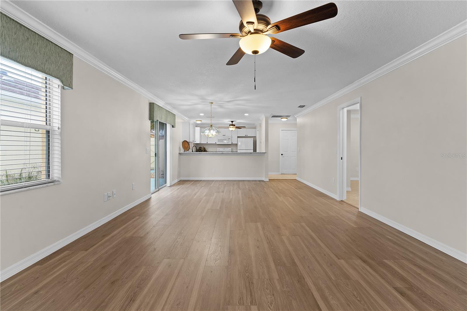 ~ Sem vínculo ~ ~ 2019 telhado ~ ~ cozinha reformada ~ ~ Moldagem da coroa ~ Esta convidativa Villa de Maratona de 2/2 / Durham, localizada na vila de Santiago, San Leandro Villas, oferece estilo e conforto. Cercado por paisagismo estabelecido, incluindo belas palmeiras e camas decorativas, o exterior coloca o palco para uma calorosa recepção. Entre para descobrir a cozinha completamente renovada, com novas ladrilhos de cerâmica, bancadas de granito, armários atualizados, persianas, uma nova pia e torneira e uma despensa para armazenamento extra. Com muito espaço contra o espaço, é o cenário perfeito para preparação e entretenimento de refeições. O jantar e a área de estar de conceito aberto com piso de tábua de vinil de luxo oferece amplo espaço para reuniões, com portas deslizantes da sala de jantar que levam a um encantador quintal lateral. Outro conjunto de portas deslizantes da sala se abre para um lanai selecionado, com pisos de concreto pintados-um espaço ideal para vida ao ar livre, grelhar ou desfrutar de um café da manhã. O quintal totalmente concreto e o muro de privacidade fornecem paz e reclusão para o seu relaxamento ao ar livre. O quarto principal é um retiro sereno com um closet, iluminação atualizada e um ventilador de teto. O banheiro privativo inclui um tubo solar para luz natural e armários atualizados. Os hóspedes aproveitarão sua estadia no segundo quarto, convenientemente localizados perto do banho de hóspedes, ou você pode usar o espaço como um escritório doméstico aconchegante. A lavadora/secadora LG mais recente está na garagem. O telhado e o aquecedor de água quente são 2019 e o HVAC é 2014. Além disso, há molduras para coroa! Esta vila fica a poucos minutos do Clube Polo das Aldeias, do Complexo de Softball Saddlebrook, do Savannah Center e Glenview Country Club. Você está perto das compras e restaurantes do Southern Trace, bem como da Praça da Cidade de Spany Springs, onde encontrará uma abundância de opções de refeições e compras, além de entretenimento noturno.