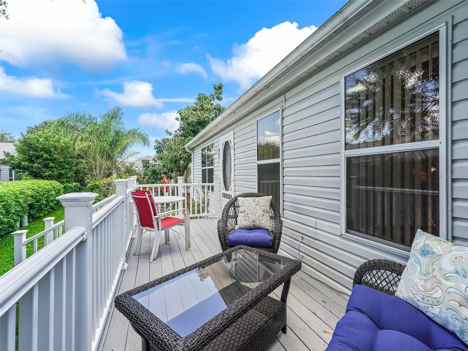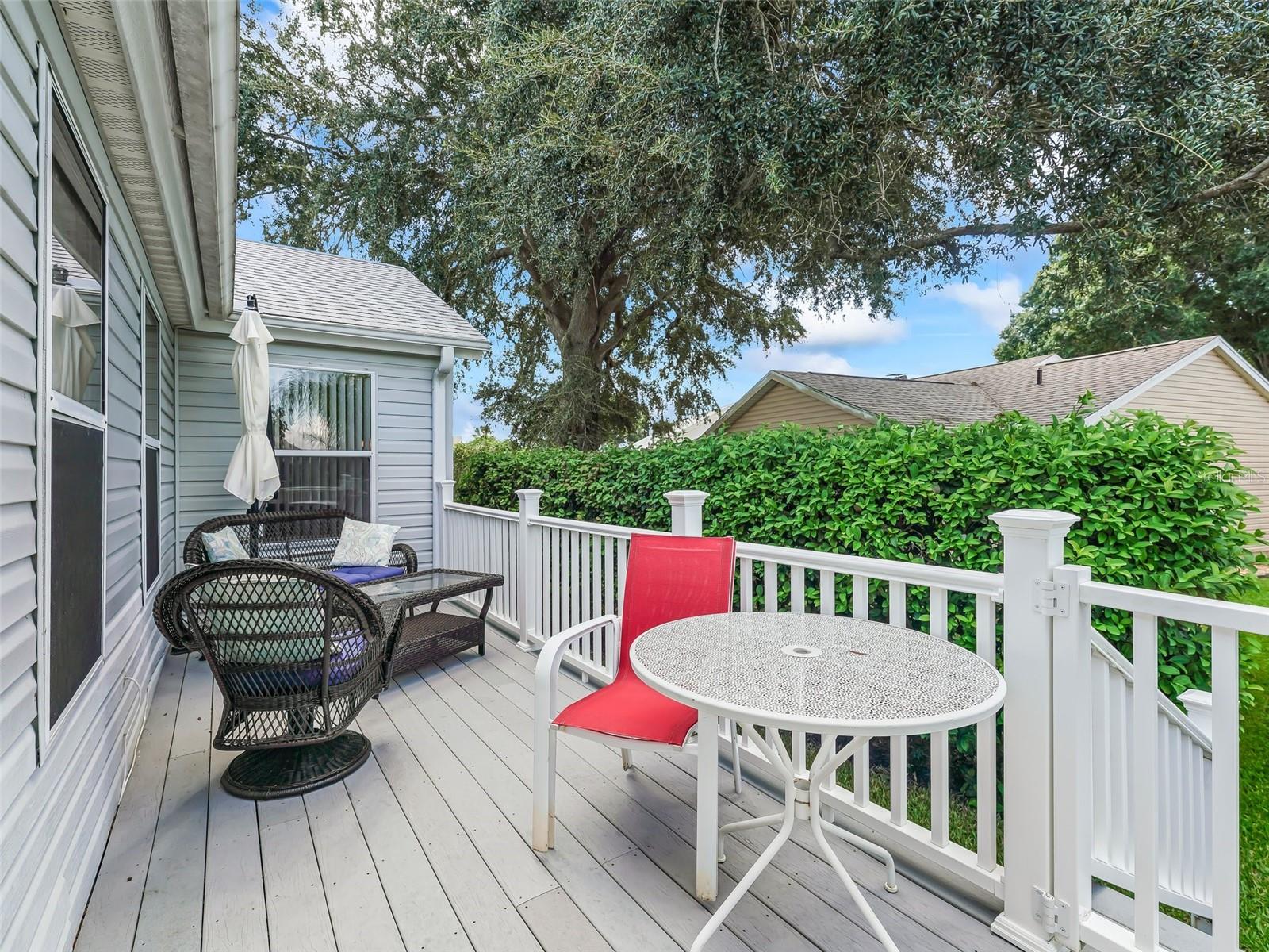 Descubra este charmoso modelo 2/2/2 Coronado com Garagem OVERSIZED em forma de L. Esta bela propriedade TURN-KEY oferece uma área de estar espaçosa e confortável com uma enorme cozinha perfeita para entretenimento. ideal para residentes a tempo inteiro ou investidores numa excelente localização em The Villages. 1 mi para SS e 3 milhas para LSL. SEM LIGAÇÃO OU MANUTENÇÃO DE LIGAÇÃO, TELHADO (2020) AC (2023), HWT (2020), QUARTZO na cozinha e BANHEIRO PRINCIPAL, LAVANDERIA INTERNA, NOVO LVP NA COZINHA E SALA FLÓRIDA, 3 TUBOS SOLARES PARA LUZ NATURAL EXTRA. A área de bônus fora do quarto principal tem lavanderia interna grande o suficiente para torná-la sua sala de artesanato / hobby pessoal e até mesmo espaço para adicionar uma cama para o neto, se necessário. Aproveite seu café da manhã ou coquetel noturno em seu deck nos fundos com privacidade paisagística.