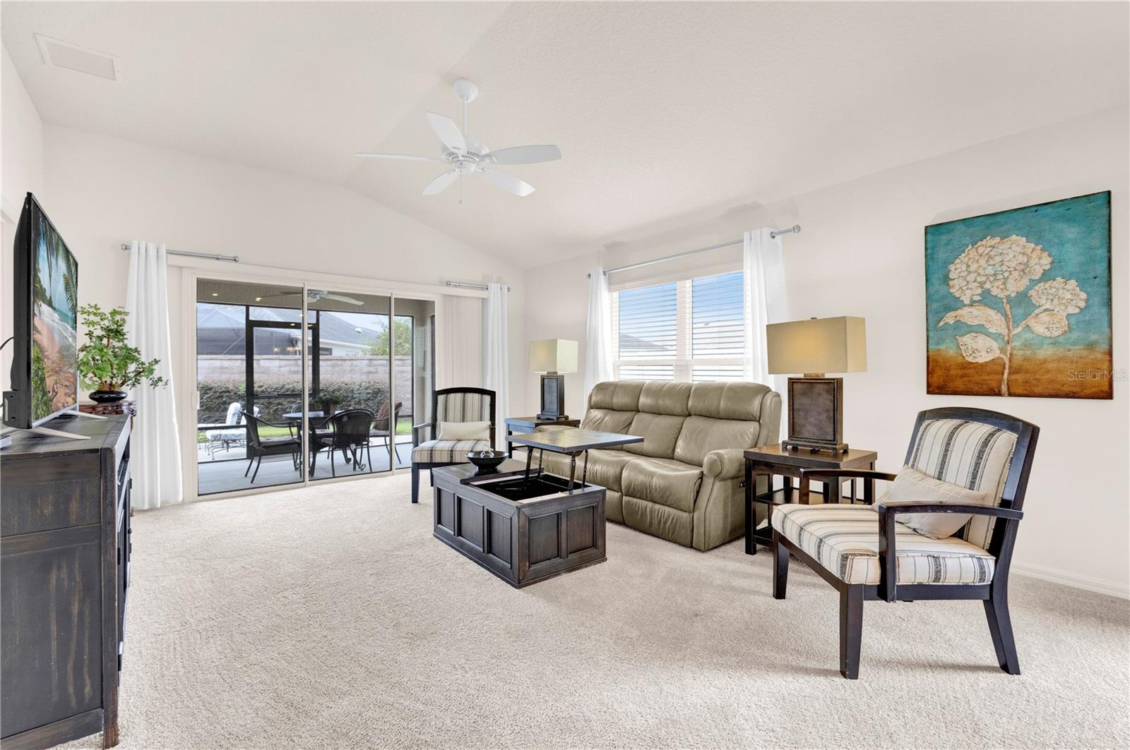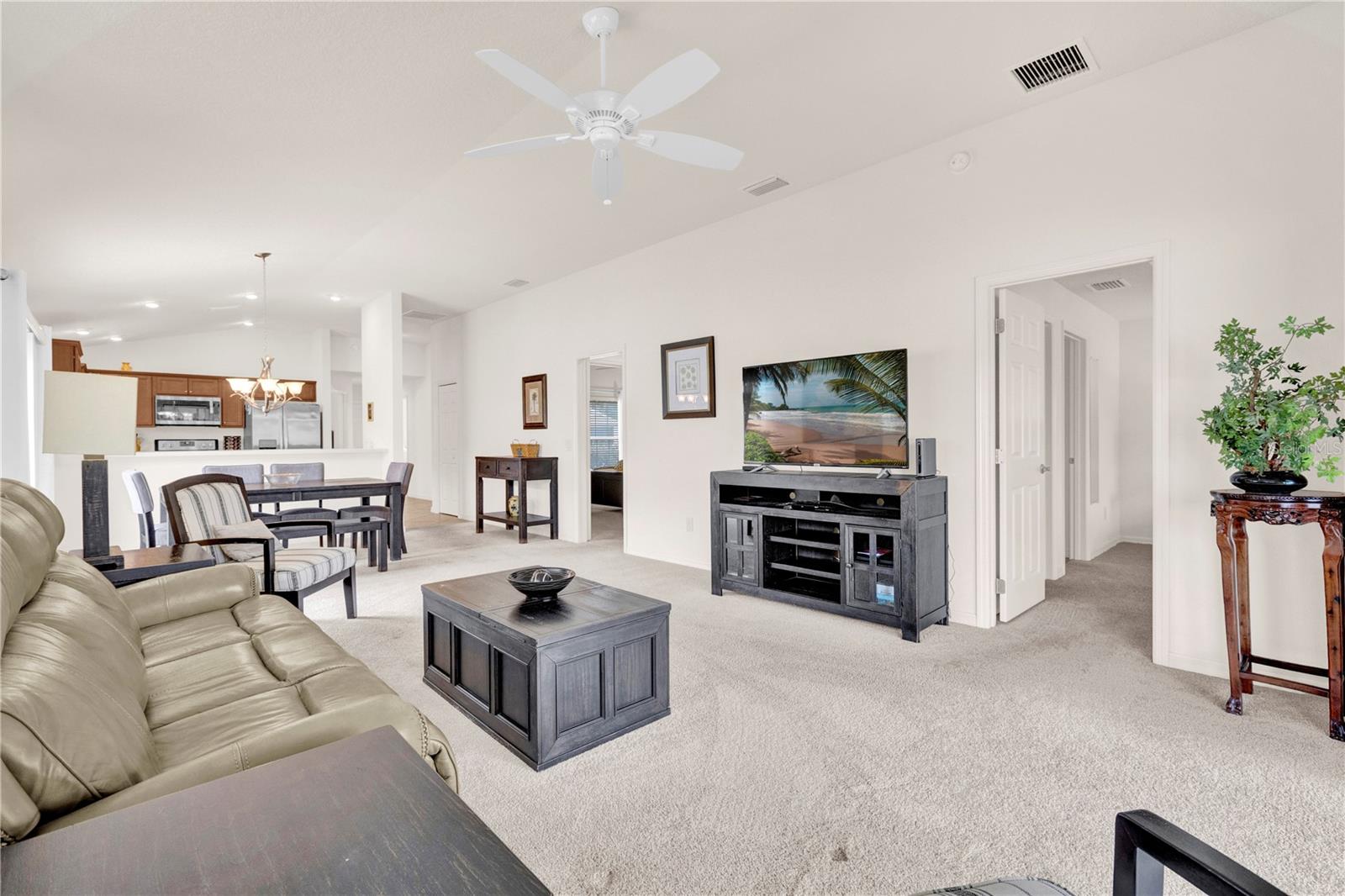 Localização, localização, localização!!! Esta é sua chance de morar no muito procurado Village of Alden Bungalows, a poucos passos da Brownwood Paddock Square! Este charmoso bairro boutique é conhecido por sua localização privilegiada, oferecendo fácil acesso a música ao vivo, lojas, restaurantes e entretenimento a poucos passos de Brownwood. Esta Charlotte Courtyard Villa pronta para uso com 3 quartos e 2 banheiros se estende por 1.531 m² e inclui uma garagem para 2 carros. Com paisagismo de baixa manutenção, esta casa possui tetos abobadados, planta aberta e uma cozinha espaçosa. A cozinha possui armários de bordo com sancas e muito armazenamento e gavetas para panelas, eletrodomésticos Whirlpool, fogão elétrico de topo liso, micro-ondas e balcão de café da manhã para refeições casuais. Um armário de despensa conveniente oferece armazenamento extra. A varanda com tela de 10 'x 12' é acessível através de portas de vidro deslizantes da sala de estar e do quarto principal que se abrem para um espaçoso quintal privado cercado. A suíte master do proprietário oferece teto falso, banheiro privativo com chuveiro de azulejos e um espaçoso closet na parte de trás da casa. As características adicionais incluem uma lavanderia interna (lavadora e secadora incluída), um quarto de hóspedes e banheiro com combinação de banheira/chuveiro com porta de correr para privacidade e um terceiro quarto ou escritório na frente da casa. Os móveis, a decoração e a churrasqueira estão incluídos, deixando esta casa pronta para morar. Contacte-nos hoje para tornar esta bela casa sua e começar a desfrutar do The Villages Lifestyle!
