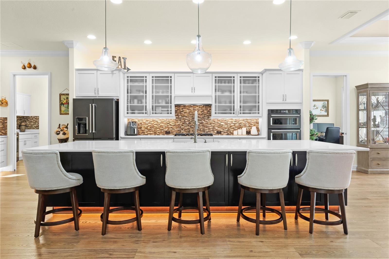 NOVO PREÇO! Esta casa 3/2.5 + DEN, PERSONALIZADA BRIDGEPORT, localizada na vila de FENNEY, oferece uma mistura cativante de design, luxo e atualizações atenciosas. A partir do momento em que você chega, a ENTRADA PINTADA e o quintal meticulosamente paisagístico criam uma atmosfera calorosa e convidativa. A casa está completa com uma GARAGEM GRANDE PARA 2 CARROS E GARAGEM PARA CARRINHO DE GOLFE, toda cercada por uma paisagem lindamente cuidada que realça a propriedade de frente para trás. Ao entrar pela deslumbrante PORTA DE VIDRO COM CHUMBO com LUZES LATERAIS, você é recebido em um grande hall de entrada que se abre para uma ampla planta aberta. PISO DE TÁBUA DE VINIL DE LUXO, MOLDURA DE COROA, RODAPÉS DE 5” E CANTOS REDONDOS fluem por toda parte. A sala de estar, com seu impressionante TETO DE BANDEJA E VENTILADOR DE TETO ATUALIZADO, flui perfeitamente para a sala de jantar, também ostentando um TETO DE BANDEJA E VENTILADOR DE TETO ATUALIZADO. A cozinha em si é uma peça de exibição, com bancadas de QUARTZO, um elegante BACKSPLASH DE TELHA e ILUMINAÇÃO SOB E SOBRE-GABINETE aprimorada, bem como ILUMINAÇÃO DA TOE BOARD DO ARMÁRIO. FIXAÇÕES DE ILUMINAÇÃO ATUALIZADAS, incluindo elegantes LUZES PENDENTES sobre a ampla ilha, adicionam um toque de sofisticação moderna. Todos os eletrodomésticos são auxiliares de cozinha de alta qualidade. Uma aconchegante área de alimentação abaixo de outro TETO DE BANDEJA oferece um local perfeito para refeições casuais. A abundância de armários proporciona amplo armazenamento, enquanto uma GRANDE DESPENSA equipada com um REFRIGERADOR SAMSUNG garante que todas as necessidades da sua cozinha sejam atendidas. A LAVANDERIA foi cuidadosamente projetada com LAVADORA E SECADORA LG MAIS NOVA, PIA DE VAIDADE e muitos armários para armazenamento adicional. Há também um BAR DE CAFÉ E BEBIDAS PERSONALIZADO! Da sala de jantar, portas de correr levam você a uma GRANDE LANAI COBERTA e GABINETE DE PÁSSAROS anexado. Este espaço exterior é perfeito para relaxar, com SALA PARA PISCINA e vista para a SERENE PRESERVE. Seja mergulhando na banheira de HIDROMASSAGEM ou apreciando o ambiente pitoresco de árvores e natureza, a área de estar ao ar livre oferece um oásis de calma e tranquilidade. Há até uma área aberta fora da gaiola para grelhar e observar pássaros! O quarto principal é um retiro espaçoso, com 2 ARMÁRIOS PERSONALIZADOS, TETO DE BANDEJA E PORTAS FRANCESAS que se abrem para a varanda. O banheiro privativo é um espaço luxuoso com pias duplas, bancadas de QUARTZO, um CHUVEIRO ROMANO DE TELHA, uma cômoda separada e um armário de linho profundo e personalizado. O QUARTO DE HÓSPEDES é espaçoso com um ARMÁRIO PERSONALIZADO EMBUTIDO e o QUARTO / ESCRITÓRIO frontal GRANDE tem um ARMÁRIO PERSONALIZADO, bem como um centro de entretenimento que permanecerá. Entre os 2 há uma banheira JACK & JILL com um GRANDE CHUVEIRO DE TELHA com PORTAS DESLIZANTES DE VIDRO e bancadas de QUARTZO. Há também um ½ BANHEIRO no corredor para maior comodidade do seu hóspede. Perto da copa, há outro ESCRITÓRIO com VENTILADOR DE TETO ATUALIZADO e iluminação embutida. Todas as ESTORES são feitas sob medida, assim como as CORNICAS, há um SISTEMA DE ÁGUA QUENTE INSTANTÂNEO, todas as PORTAS E PAREDES são ALTAS, AS PORTAS são APROVADAS pela ADA e CALHAS cercam a casa. Em toda a casa, inúmeras atualizações e recursos personalizados melhoram a funcionalidade e o estilo. O TELHADO, HVAC e aquecedor de água quente são todos 2018. Há também um FILTRO DE ÁGUA E AMACIADOR PEGASUS. Localizada a poucos minutos do Fenney Grill, dos campos de golfe executivos Red Fox e Gray Fox, dos centros de recreação Spanish Moss e Blue Heron, bem como do popular Fenney Putt & Play, tornam esta casa uma mistura perfeita de conforto, luxo e conveniência. Com tantas atualizações e recursos, esta casa realmente precisa ser vista para ser totalmente apreciada.