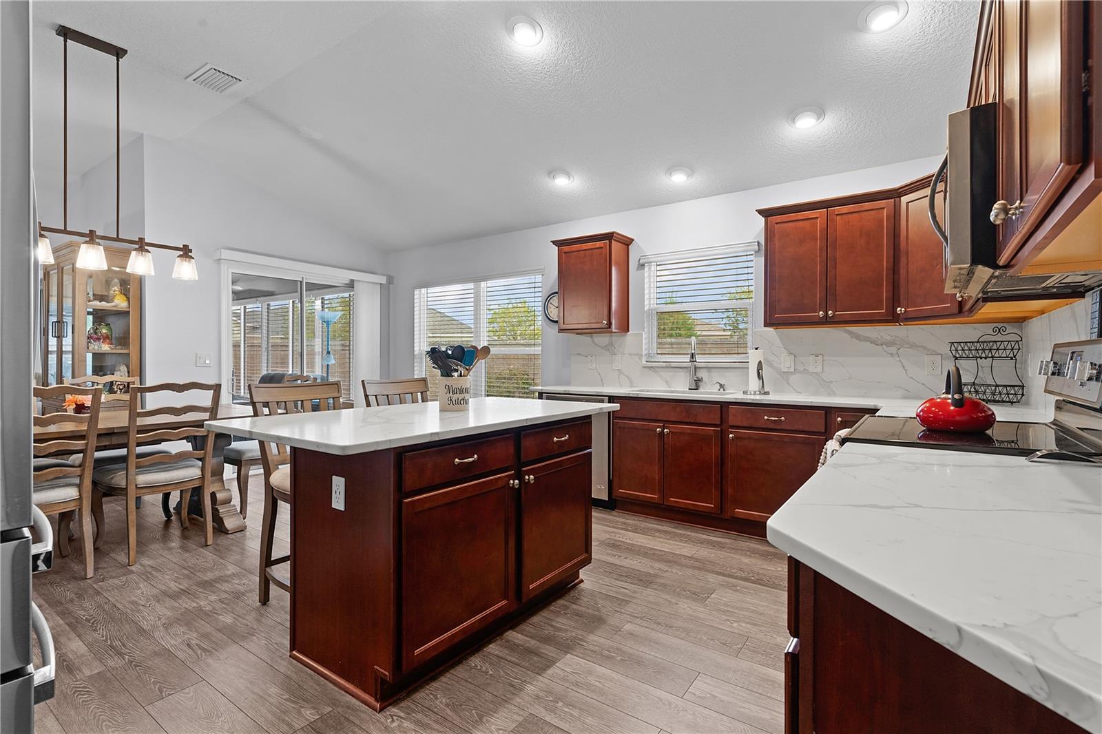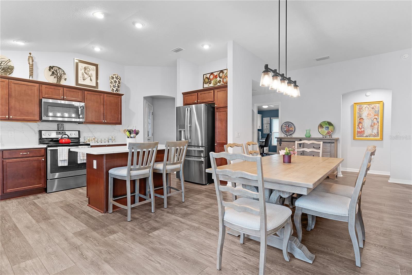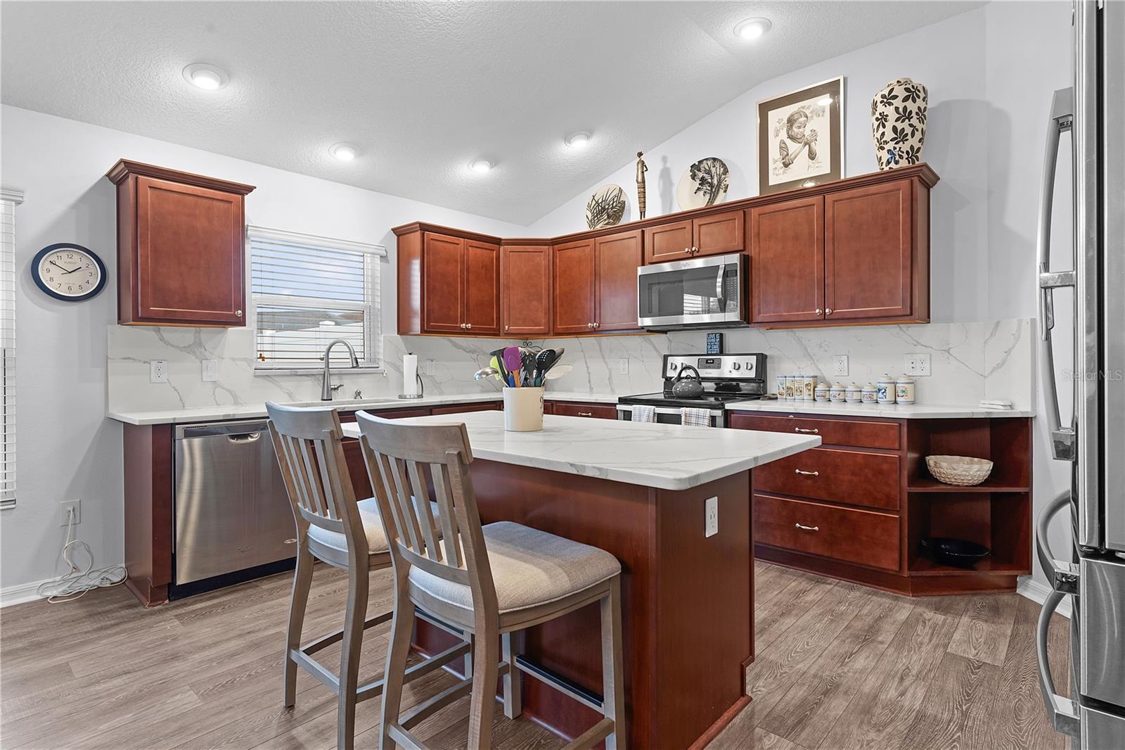 ~ Lote de canto ~ ~ 2016 telhado ~ ~ quartzo ~ ~ todas as novas luzes e ventiladores de teto ~ ~ grande gaiola de pássaros ~ Bem -vindo a este encantador 3/2 Avondale Courtyard Villa, situado em um lote pitoresco na vila de Woodbury Phillips Villas. Uma calçada de concreto estampada, ao lado de rochas, arbustos e grama bem cuidados, cria um apelo caloroso e convidativo. A varanda da frente é o local perfeito para relaxar e desfrutar do ambiente tranquilo do bairro. Passe pela elegante porta da frente de vidro com chumbo e entre em uma casa lindamente atualizada. A cozinha, o sonho de um chef, possui bancadas de quartzo e backsplash, lançamentos, nova geladeira GE e uma torneira de toque moderna. O piso de tábua de vinil de luxo corre por toda a casa, aumentando seu charme contemporâneo. Adjacente à cozinha, a sala de jantar acompanha confortavelmente 6, enquanto a ilha grande oferece assentos adicionais para 2, tornando -o perfeito para refeições casuais ou convidados divertidos. A sala de estar de conceito aberto flui perfeitamente da cozinha e da área de jantar, garantindo um espaço confortável e fácil para hospedar. Luminárias de iluminação atualizadas na sala de jantar, sala de estar e quarto primário trazem uma sensação moderna e moderna para a casa. A TV montada na parede na sala transmite. O espaçoso quarto primário é um retiro sereno, com um teto de bandeja com ventilador, um closet de design personalizado (armários por design), e um banho de suíte com pias duplas, um vaso sanitário separado e um luxuoso chuveiro Jetta Walk-in e bancadas de pedra de Jetta. Seus convidados da noite para o dia se sentirão em casa no quarto de hóspedes generosamente de tamanho, onde todos os móveis, além das três fotos atrás das camas. O outro quarto é atualmente projetado como um escritório funcional, completo com mesas embutidas, prateleiras e armários. O banho de hóspedes com bancadas de quartzo tem uma combinação de banheira/chuveiro com portas de vidro. As portas deslizantes da sala de estar e da sala de jantar levam a um lanchone fechado com pisos pintados, persianas e acesso a uma grande gaiola. Com 2 ventiladores de teto, todos os móveis de gaiola transmitem e a iluminação externa fazem deste um espaço fantástico para vida e entretenimento ao ar livre. O telhado é 2016 (limpo recentemente), bem como o HVAC e o aquecedor de água quente, também todo 2016. Convenientemente localizado ao virar da esquina do Mulberry Rec Center e do First Responders Rec Center, do Mulberry Grove Shopping Center (incluindo compras, jantar e médico), o VA Medical Center, e Nancy Lopez Country Club, além de 4 campos de golfe executivos! Uma localização fabulosa!