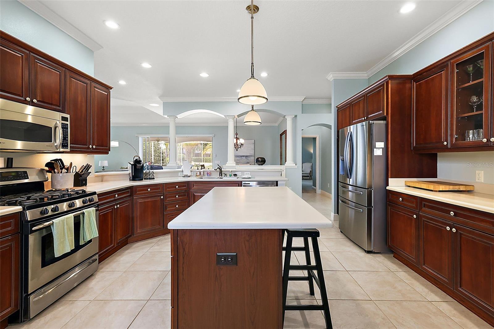 CASA COM PISCINA na vila exclusiva de BRIDGEPORT NO LAKE SUMTER! Este lindo PREMIER WILLIAMSBURG está posicionado em um terreno de esquina, sem casas logo atrás! Ótima localização, uma entrada no bairro. A cozinha possui belos armários CHERRY, balcões SOLID SURFACE, ILHA central e eletrodomésticos de aço inoxidável, incluindo fogão a gás e geladeira lado a lado. A copa oferece o local perfeito para um jantar casual! A área de estar de conceito aberto apresenta MOLDURA DE COROA, teto de bandeja na sala e portas de vidro DESAPARECIDAS para a varanda. O quarto principal é espaçoso e tem teto falso e acesso à varanda por portas francesas. O banheiro principal tem uma banheira de jardim, pias duplas, penteadeira, toalete separado e box amplo de azulejos! A espaçosa varanda tem uma COZINHA DE VERÃO com churrasqueira a gás embutida, exaustor, pia e geladeira embaixo da bancada! A PISCINA AQUECIDA oferece os sons suaves da água em cascata da cachoeira! As plantações tropicais proporcionam privacidade a este maravilhoso espaço de entretenimento ao ar livre. Esta linda casa está CENTRALMENTE LOCALIZADA em uma das Aldeias Premier mais procuradas!
