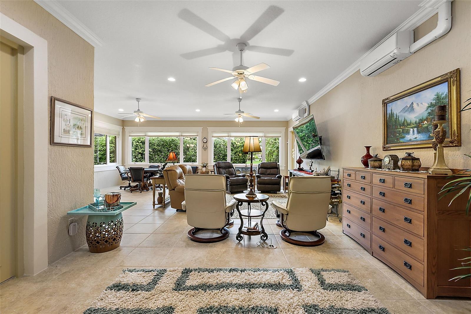 Bem-vindo a esta deslumbrante casa Expanded Liberty Premier com uma enorme garagem para mais de 3 carros, o sonho de um artista situado na ALL-PREMIER Village de Heathrow, no Lago Deaton. Ao se aproximar da residência, você será recebido por uma charmosa varanda frontal, ideal para tomar seu café da manhã ou relaxar lendo um livro, completa com ventilador de teto para maior conforto. Ao entrar, um hall de entrada com um conveniente armário de casacos dá o tom para esta casa acolhedora e convidativa. A ampla sala de estar possui grandes janelas com vista para o quintal paisagístico, criando uma atmosfera iluminada e arejada. A iluminação embutida realça o ambiente, enquanto o fluxo aberto para a sala de jantar e duas varandas protegidas o tornam perfeito para reuniões. A sala de jantar, possivelmente a maior do The Villages, apresenta tetos abobadados adornados com detalhes profundos em bandejas e sancas, criando um espaço elegante para jantares familiares e celebrações. A cozinha é uma delícia para o chef, com luxuosas bancadas de GRANITO, eletrodomésticos de aço inoxidável, ilha e fornos de parede dupla. Uma enorme despensa com prateleiras e gavetas embutidas do chão ao teto garante que tudo que você precisa esteja facilmente acessível. Retire-se para o quarto principal, que oferece tranquilidade e conforto com banheiro privativo e teto falso. Grandes janelas permitem que a luz natural preencha o espaço. O banheiro principal foi projetado para relaxar, com pias duplas com penteadeira, box amplo com bancada e closets duplos com embutidos personalizados. Os quartos 2, 3 e 4 apresentam tetos abobadados, ventiladores de teto e armários generosos. A sala bônus no andar de cima é um refúgio ideal para entretenimento ou relaxamento, proporcionando espaço adicional de convivência ou armazenamento que atende a diversas necessidades. As comodidades para os hóspedes incluem um banheiro com banheira e chuveiro com portas de vidro e um lavabo elegante com bancadas de granito. Saia para descobrir duas varandas com tela, ambas equipadas com tetos mecânicos retráteis de última geração. A área da cozinha externa é um verdadeiro paraíso do entretenimento, completa com churrasqueira a gás Evo embutida, frigobar, pia e bancadas de pedra. A ampla garagem climatizada oferece espaço para mais de 3 carros com portas separadas e inclui uma área de armazenamento segura, escadas rebatíveis para acesso ao sótão com elevador de última geração. Além disso, um gerador para toda a casa com um tanque de propano subterrâneo de 250 galões proporciona tranquilidade. As melhorias em toda a casa incluem um piso de garagem redesenhado, novos armários e prateleiras e eletrodomésticos atualizados – todos protegidos por uma garantia Broward Home transferível. Todos os sistemas mecânicos, elétricos e hidráulicos foram meticulosamente mantidos, com atualizações recentes, incluindo um novo aquecedor de água quente e um sistema de circulação de água quente para toda a casa. Complementada por uma calçada e passarelas, esta casa excepcional oferece a combinação perfeita de luxo, funcionalidade e espírito de entretenimento. A vila de Lake Deaton fica perto da Brownwood Paddock Square; Evans Prairie, Bonifay e Belle Glade Golf and Country Clubs; Piscina e Centro Recreativo do Lago Deaton; Parque do Lago Okahumpka; Lake Deaton, Freedom e Colony Plazas; e uma abundância de lojas, restaurantes, serviços bancários adicionais e muito mais! ASSISTA NOSSO VÍDEO PASSADO DESSA CASA ESPETACULAR! Ligue hoje para agendar sua exibição privada ou tour virtual.