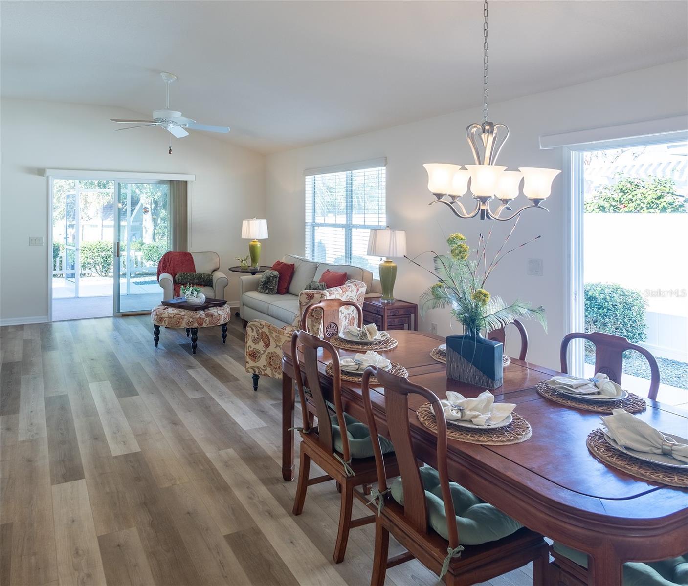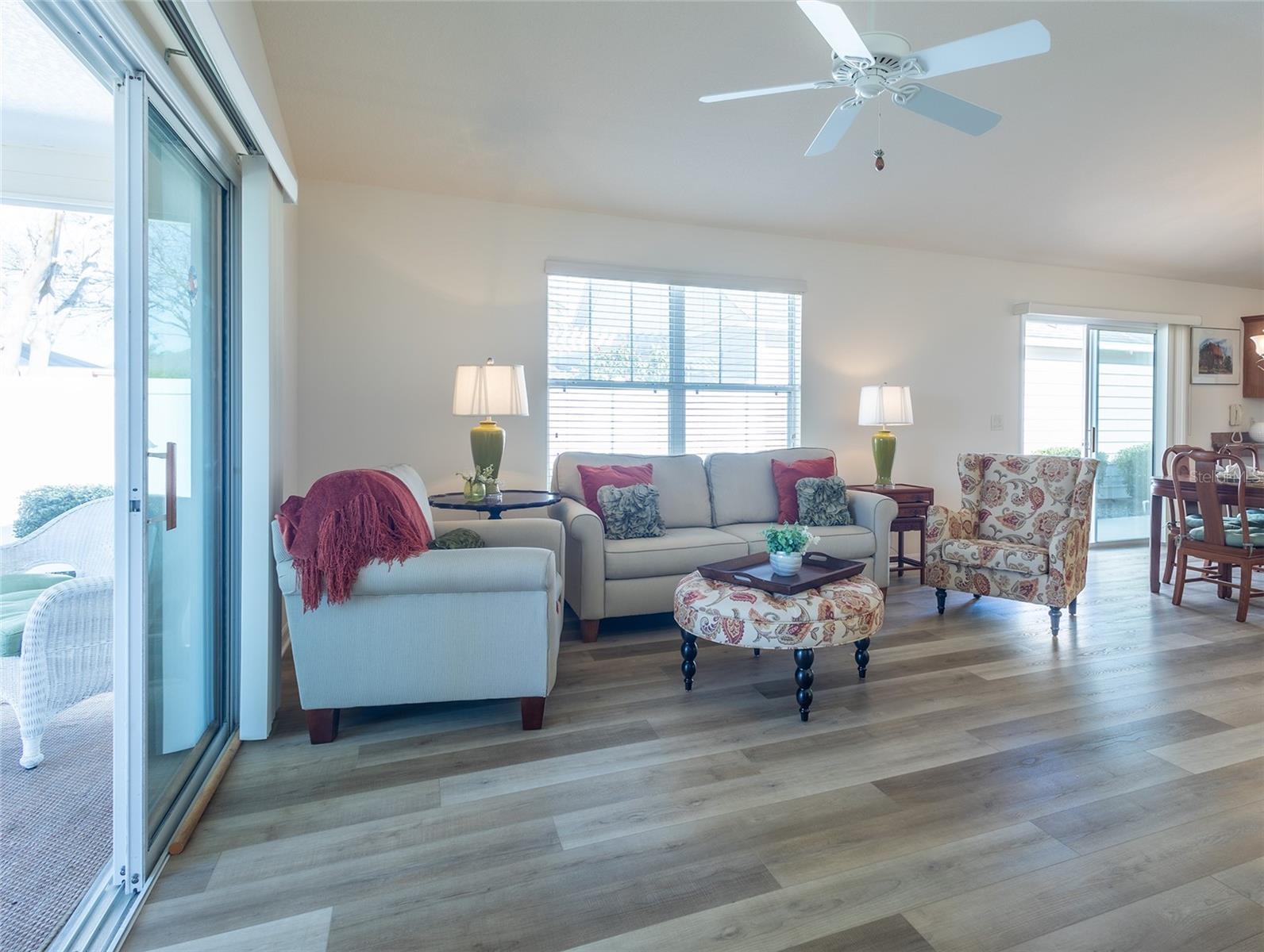 Novo telhado a caminho - a ser concluído antes do fechamento do comprador !! Vendedor motivado !! Novo preço incrível para uma linda frente de golfe 3 camas Courtyard !! Bem -vindo para casa nesta villa do pátio do tempo do tee com 3 quartos e 2 banheiros novos pisos LVP BONITOS !! Você vai adorar a vista para a lagoa e o campo de golfe da traseira Lanai. Os tetos abobadados nesta beleza dão uma sensação espaçosa, juntamente com tubos solares para muita iluminação natural. Um piso plano aberto oferece um espaço perfeito para entretenimento ou apenas sair desfrutando da paisagem e do pôr do sol deslumbrante. A cozinha é espaçosa e equipada com toneladas de armários, toneladas de espaço de bancada e até uma despensa para armazenamento. Esta casa de bom gosto de bom gosto inclui todos os produtos domésticos que você precisa para começar a desfrutar do estilo de vida das aldeias. Seu quarto principal é espaçoso e tem um grande closet. Sua lavanderia está dentro e equipada com uma pia de utilidade e um gabinete de porta de bolso. A suíte convidada tem um fechamento de porta de bolso para a privacidade dos convidados. Esta entrada da vila está posicionada na beira de uma lagoa que tem uma visão perfeita dos lançamentos espaciais - compartilhados por muitos na comunidade. Não perca esta oportunidade de desfrutar de uma vista deslumbrante do campo de golfe e de um lago da Lanai traseira.