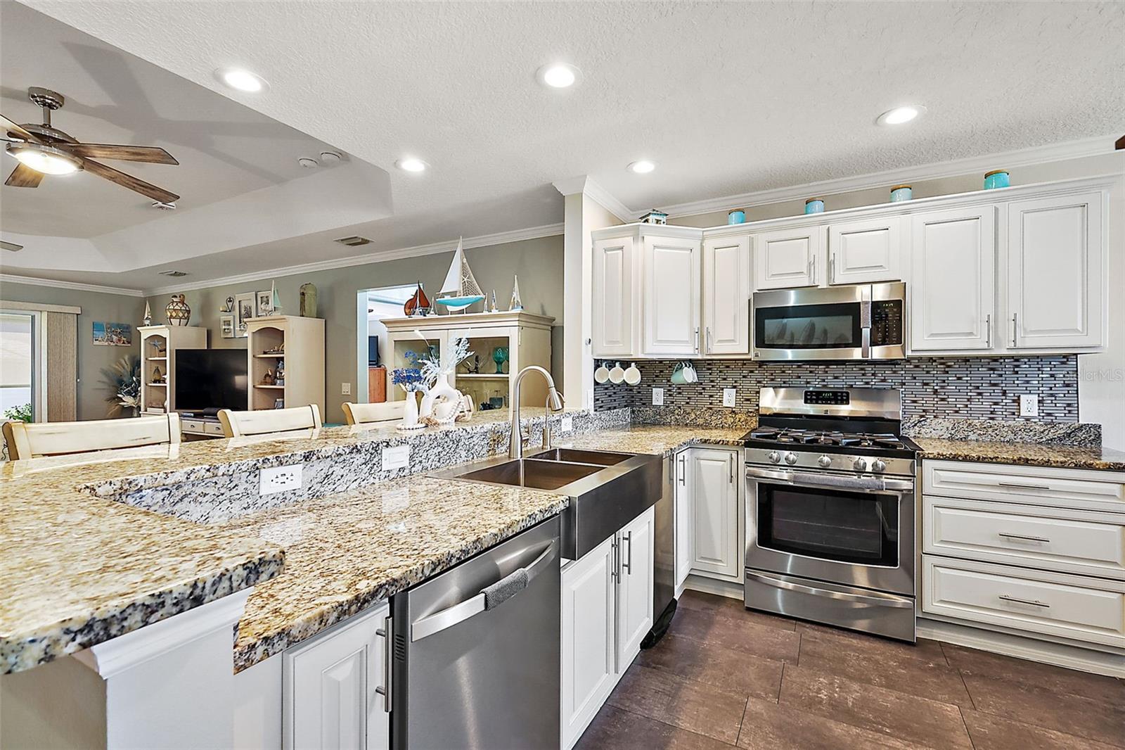 Bem -vindo ao Your Dream 3/2 Wisteria Model em um grande lote de canto localizado na bela vila de Woodbury. Bond pago !! Esta casa impressionante possui uma garagem completa de dois carros com piso de PVC, molduras de coroa por toda parte, cozinha e banheiros personalizados e um sonho de um artista. O paisagismo aprimorado apresenta uma parede de fronteira e pedra e a entrada de automóveis pintada cria uma recepção calorosa ao se aproximar da casa. Ao entrar, você é recebido por uma ampla sala de estar com um teto de bandeja e ventiladores de teto duplo, criando uma atmosfera elegante e convidativa. A planta aberta conecta perfeitamente o espaço de estar ao coração da casa. A cozinha é uma delícia de chef, com cozinha a gás, bar de café da manhã, utensílios de aço inoxidável e backsplash personalizado elegante que complementa os armários brancos atualizados. Os armários foram estendidos para incluir uma despensa e café perfeitos para as manhãs. A grande área de lanchonete é enquadrada por amplas janelas, permitindo que a luz natural inundasse o espaço, tornando -a perfeita para refeições casuais ou convidados divertidos. Retire para o quarto principal, onde você encontrará um ventilador de teto para obter um conforto adicional, um banheiro em suíte com pias de pedestal duplo, trilhos de deficientes e um amplo armário que oferece bastante armazenamento. O banho principal é uma experiência semelhante ao spa, com um grande chuveiro, oferecendo luxo e funcionalidade. Os quartos 2 e 3 apresentam ventiladores de teto e armários embutidos, proporcionando conforto e conveniência para membros da família ou convidados. Um banho de hóspedes cuidadosamente projetado inclui um chuveiro e vaidade, garantindo amplo espaço para as necessidades de seus convidados. Saia para o oásis externo destacado por uma grande lanai de vidro, perfeita para desfrutar do seu café da manhã ou se desenrolar à noite enquanto aprecia as vistas serenas da paisagem circundante. As atualizações incluem: telhado: 2021, HVAC: 2024, amaciador de água: 2023, sistema de filtragem da pia da cozinha: 2023. A vila de Woodbury está convenientemente localizada a cinco quilômetros da praça da cidade de Spanish Springs; Perto do Primeiro Centro de Recreação e Campeonato de Golfe de Championship; várias piscinas, golfe e bola de picles; e 441 com uma abundância de compras, restaurantes, bancos e medicina. Assista ao nosso vídeo explicativo desta linda casa e ligue hoje para agendar sua exibição particular ou turnê virtual!