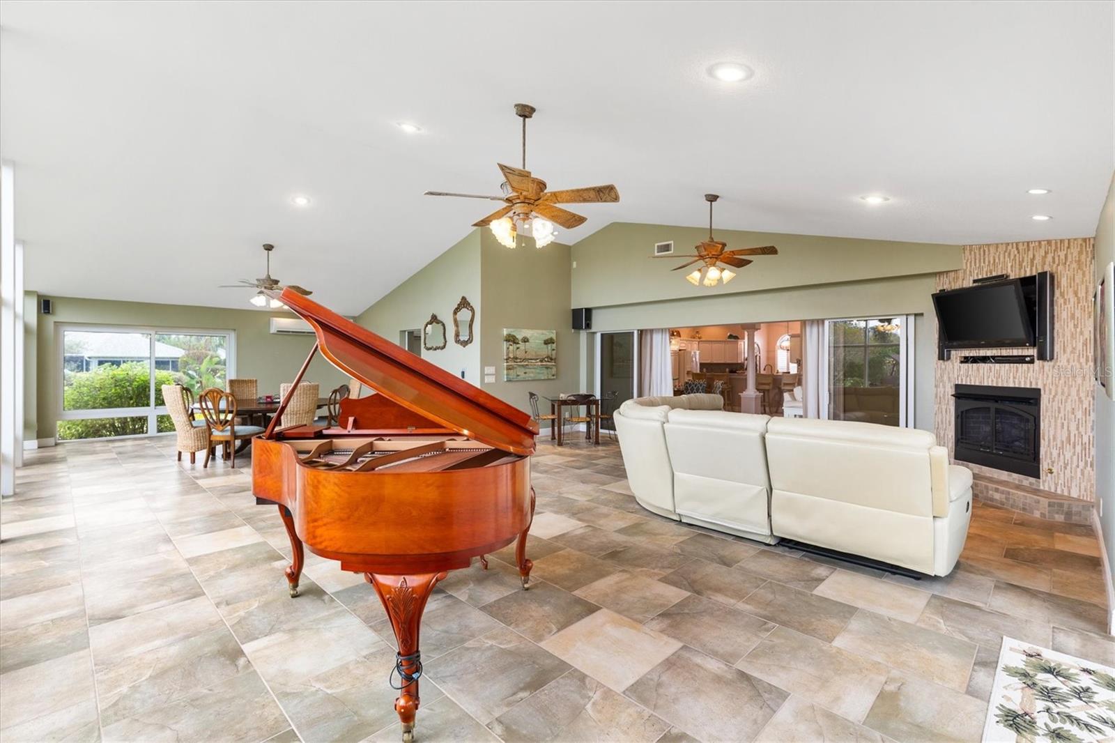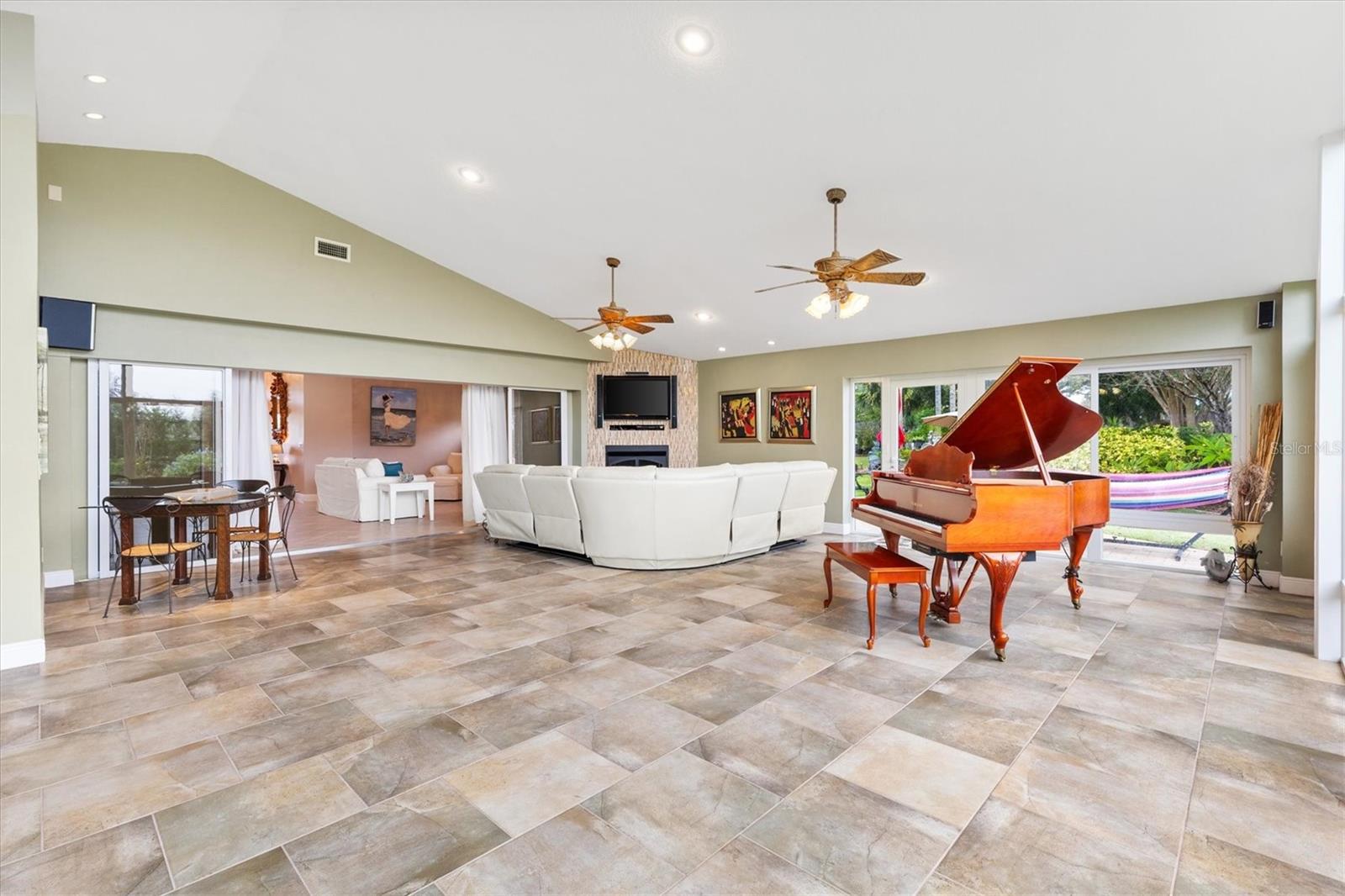 LOCALIZADO A MINUTOS DA PRAÇA DA CIDADE DE SUMTER LANDING! PREÇO ABAIXO DA AVALIAÇÃO! TÍTULO PAGO! TELHADO 2020. COMPLETAMENTE mobiliado com piano de cauda. Este modelo exclusivo de Gardenia Designer expandido 3/2 (3.000 pés quadrados) é a mistura perfeita de conforto e estilo. Esta planta aberta e dividida foi projetada para entretenimento sem esforço. Abra as portas deslizantes empilhadas para revelar uma grande sala multifuncional de 1.000 pés quadrados com janelas do chão ao teto com vista para um jardim sem vizinhos traseiros. Desfrute de conforto durante todo o ano com um sistema mini split, tornando este espaço ideal para entretenimento, reuniões, dança, abrigando seu hobby favorito ou simplesmente relaxando com espaço para todos os seus avós. O interior apresenta elegantes pisos de cerâmica e laminado com aspecto de madeira nos quartos, complementados por venezianas e tubos solares para luz natural na sala e no banheiro de hóspedes. A cozinha é o sonho de qualquer chef, com bancadas de granito revestido de couro, backsplash elegante de azulejos, forno embutido, micro-ondas de convecção, fogão e prateleiras extraíveis. A ilha não só oferece armazenamento extra, mas também serve como local para refeições casuais. Retire-se para o quarto principal, que possui uma mesa de escritório embutida e armazenamento atrás de portas duplas, além de um banheiro privativo com pia dupla, box amplo, armário de roupa de cama grande e 2 closets. Os quartos de hóspedes compartilham um banheiro com penteadeira atualizada e uma combinação de banheira e chuveiro. A casa vem totalmente mobiliada, com piano de cauda, cama embutida e móveis de alta qualidade, deixando-a pronta para o seu próximo capítulo. Características adicionais que agregam valor a esta casa são sistema de aspiração central, gás natural, interior recém-pintado, lavanderia interna, pátio externo para grelhar e jantar, escadas do sótão, calçada de pavimentação recentemente lavada e vedada à pressão e paisagismo atualizado. A garagem para 2 carros e carrinho de golfe tem armazenamento adicional, bancada de trabalho e pia. Localizado a poucos minutos de carrinho de golfe do Lago Sumter Landing para compras, restaurantes e entretenimento. Na mesma rua do Canal Street Recreation Center e da Virginia Trace Pool e para o golfista ávido, a poucos minutos do Mallory Hill Country Club e do campo de golfe e do acesso a mais de 50 campos de golfe em The Villages. Viva na melhor localização e saboreie a vida em tudo o que o The Villages proporciona. Esta casa realmente tem tudo! Não deixe de assistir ao nosso tour virtual por esta maravilhosa casa e agende hoje mesmo seu tour privado!