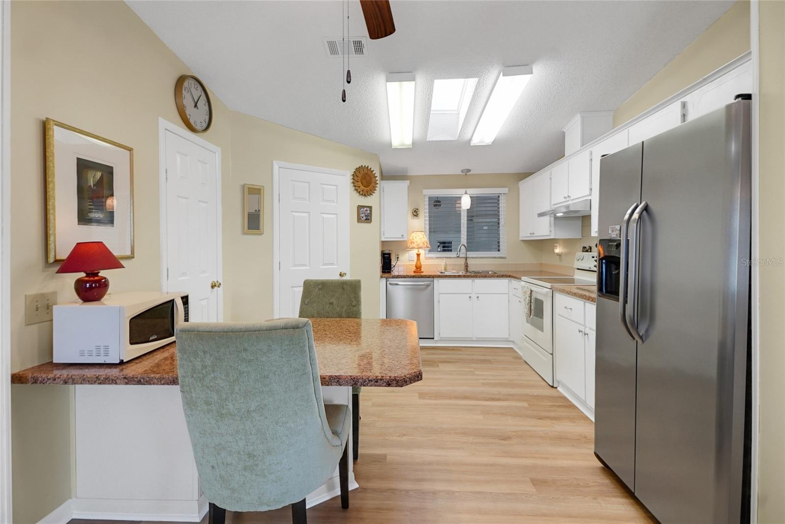 Bem -vindo a este super espaçoso atualizado com bom gosto 2/2 com garagem de carrinho de golfe grande e 2 automóveis para casa com 1336 pés quadrados aquecidos (um dos maiores) certamente agradarão na desejável vila de Country Club Hills! A partir do momento em que você entra nesta adorável casa fabricada remodelada, prepare -se para ficar impressionado! Este fabuloso 2 quartos e 2 banheiros mostra como uma casa modelo e apresenta novos pisos de tábua de vinil deslumbrantes com telhas de 14 polegadas nos banheiros e um bônus raro é a lavanderia interna! Todas as janelas (exceto a janela do chuveiro) foram substituídas nos últimos anos, com as janelas do quarto sendo substituídas em outubro de 2024. A cozinha tem muito armazenamento e também come uma área! O quarto principal é muito espaçoso e possui 3 áreas de armário (WOW) e o banheiro principal apresenta uma caminhada no chuveiro. O quarto de hóspedes é de bom tamanho e pode acomodar uma cama queen size facilmente. O banheiro de hóspedes tem uma combinação de banheira/chuveiro. Todas as luminárias foram substituídas e o interior foi pintado profissionalmente em 2024. Ao longo da planta aberta, o deslumbrante piso de tábua de vinil de luxo (2024) fornece uma bela tela para todas as suas idéias de decoração e a luz natural, os tetos abobadados e a abertura da casa e faz com que se sinta muito maior! Uma das casas mais limpas e com bom gosto nas aldeias! O HVAC é mais recente (2019), HWH é novo (12/2024) e o telhado é um teto de membrana, portanto não há problemas de seguro! Além disso, a lavadora é nova com uma garantia transferível. Por mais incrível que seja o interior, o espaço ao ar livre é acolhedor com uma garagem pintada, paisagismo adorável, incluindo uma área de árvore em forma de coração, garagem para carrinho de golfe, uma lancinai de 10 x 18 e uma área de pátio para grelhar. O melhor de tudo: não há vínculo e você está apenas 3 minutos para a laranjeira CC, golfe, hospital e todas as compras, restaurantes e comodidades que tornam a vida nas aldeias muito divertida! Pergunte sobre o recebimento de uma cópia do limpo 4 pontos realizado em 17/12/24.