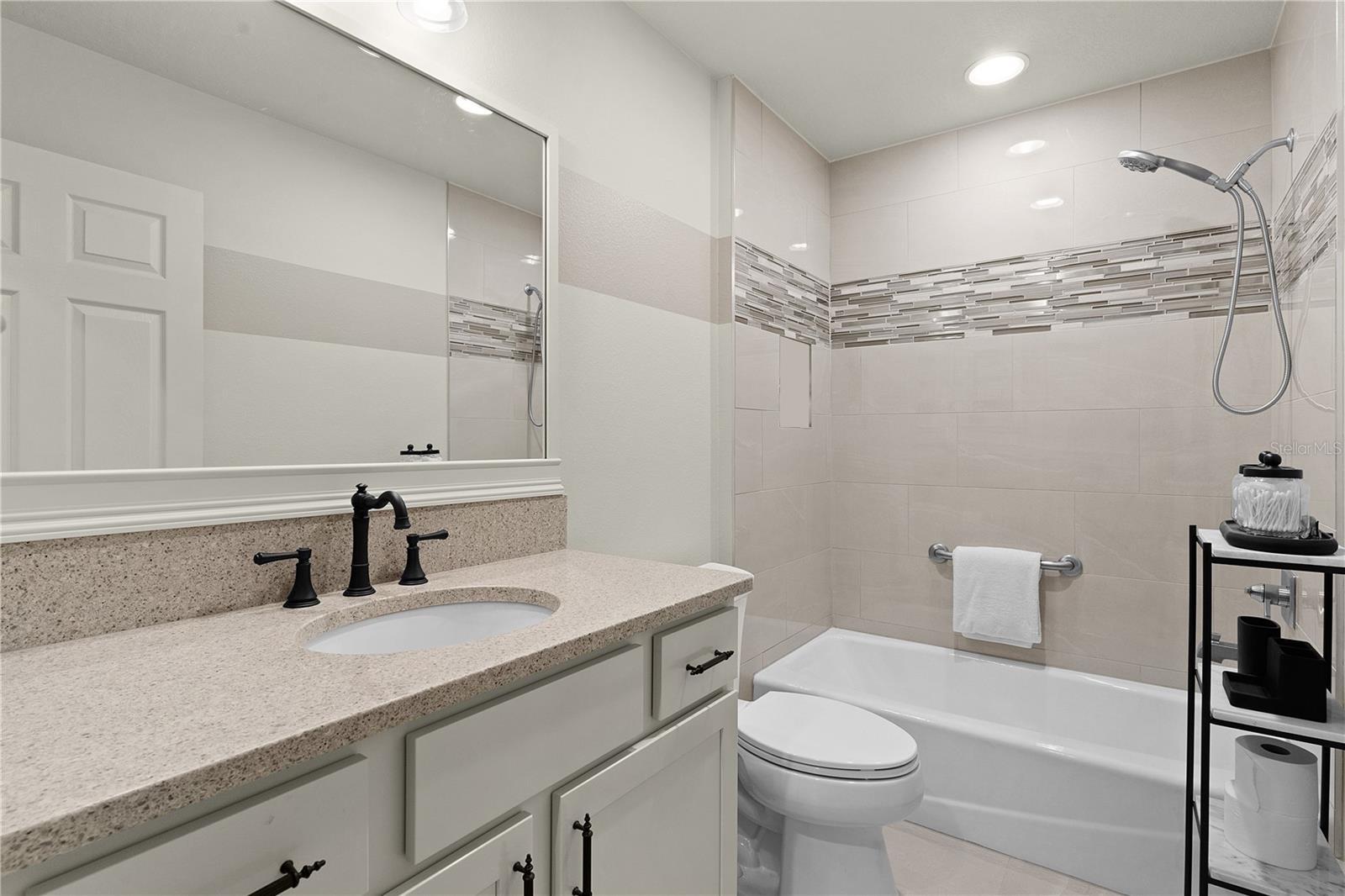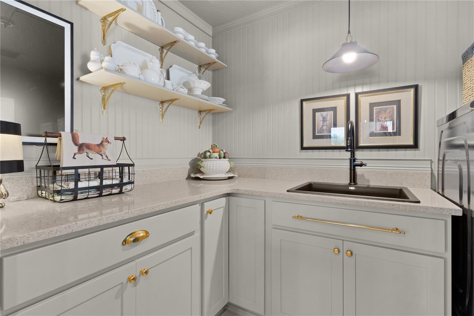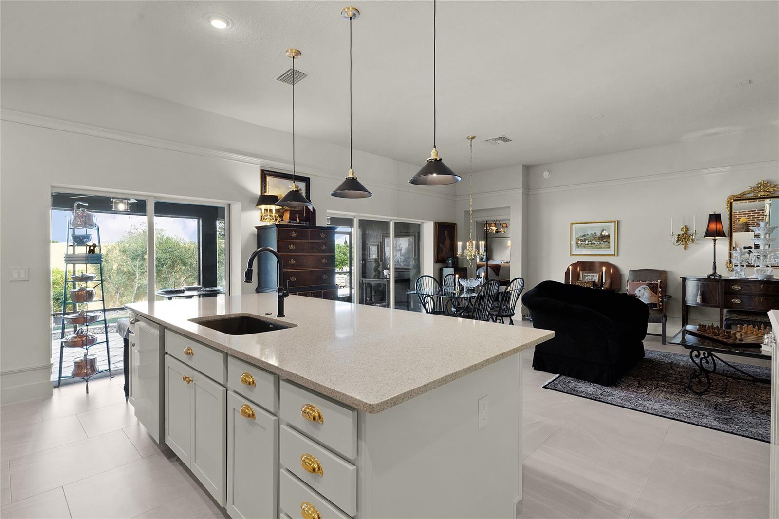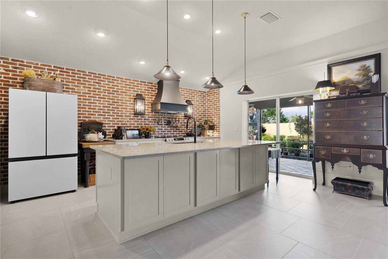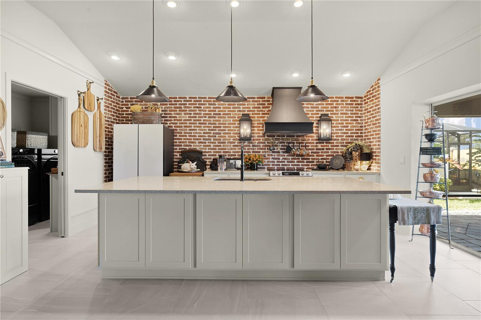 EXTRAORDINÁRIO vem à mente ao descrever este designer INDIGO INCRÍVEL e PERSONALIZADO de 3 quartos e 3 banheiros com características e decoração IMPRESSIONANTES com um grande pátio de cascalho orgânico e FOGUEIRA com PAREDE DE PRIVACIDADE atrás! Esta casa METICULOSA oferece excelente apelo de meio-fio, desde a entrada de tijolos pavimentada até a entrada frontal PERGOLA, e convidativa porta de VIDRO COM CHUMBO de designer! Ao entrar, você encontrará piso de azulejo adorável em “padrão de alvenaria” no hall de entrada e em toda a área de estar, cozinha, lavanderia e banheiros. Há um armário de casacos no hall de entrada e uma porta de correr que leva a um dos quartos de hóspedes e ao seu próprio banheiro de hóspedes. Você encontrará acessórios PERSONALIZADOS em toda a casa e molduras ELEGANTES em toda a área de estar e cozinha. A cozinha de design ISLAND com iluminação PENDANT oferece lindas bancadas de QUARTZO, armários shaker brancos com ferragens de LATÃO de luxo, uma parede de tijolos IMPRESSIONANTE com iluminação personalizada em ambos os lados do CAPÔ PERSONALIZADO de bronze montado sobre o tampo elétrico integrado de topo liso - fogão de linha. Você vai adorar a porta GLASS 3 correspondente, o refrigerador de balcão com “centro de bebidas” oculto e muito mais. Fácil acesso à DESPENSA e lavanderia do MORDOMO com painéis decorativos, estantes personalizadas e lavadora e secadora FRONT LOAD em pedestais. Você certamente pode adicionar banquetas de altura de balcão à ilha para um jantar casual, mas também pode desfrutar de um ambiente mais formal em sua sala de jantar e de uma sala de estar aconchegante, mas espaçosa, completa com TV montada na parede. O pitoresco quarto de hóspedes da frente e o quarto principal oferecem paredes BEADBOARD emolduradas com molduras pintadas na mesma cor das portas e acabamentos para uma aparência elegante e personalizada incrível. O quarto da frente tem um grande armário de porta dupla com uma útil estante embutida. Esta suíte de hóspedes privativa tem um armário de roupa de cama no corredor e seu próprio banheiro com paredes de madeira, balcões de quartzo, espelho emoldurado personalizado e lindo chuveiro de azulejos com porta de vidro FRAMELESS. O outro quarto de hóspedes fica no lado oposto da casa, também com armários de portas duplas e banheiro próprio para hóspedes com as mesmas características de luxo, mas com banheira/chuveiro. Todos os quartos foram aprimorados com piso LUXURY VINYL PLANK! O quarto principal tem teto falso e lindas atualizações com persianas plissadas e banheiro EN-SUITE. O banheiro oferece pias duplas com balcões de quartzo, bastante espaço nos armários personalizados, banheiro privativo e chuveiro romano com parede parcial de vidro e janela alta para iluminação natural. O armário grande e generoso foi projetado com prateleiras e prateleiras extras para todas as suas necessidades pessoais. Mas espere até ver o que está esperando por você lá fora! É difícil imaginar uma varanda elegante, mas é exatamente isso que esta casa oferece. Um ambiente tranquilo com a PRIVACIDADE de uma parede mas muito espaço com este lote maior nas traseiras. Paisagismo atraente e parede de pedra empilhada ao redor de toda a casa. O 2 carros + GOLF CART GARAGE tem um incrível revestimento de piso de garagem Rust-Oleum Rock Solid indestrutível. Este bairro está situado ao longo do extremo sul da Reserva Chitty Chatty, com vistas deslumbrantes. Você encontrará trilhas e caminhos que levam a todas as suas comodidades favoritas nos Centros Recreativos Rohan Regional e Everglades, nas proximidades. Lojas, restaurantes e golfe nas proximidades! ESTA É UMA CASA ESPETACULAR QUE VOCÊ NÃO QUER PERDER!