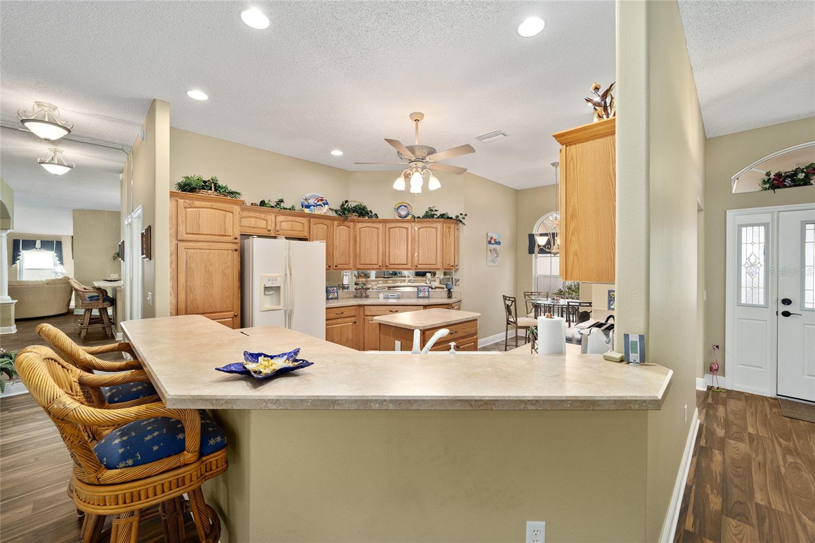 Venha ver esta bela casa na Gardenia, na vila de Winifred, na Winifred Way. Você notará a beleza, o charme e a adorável vista no momento em que você entra. Do vestíbulo de entrada, você pode ver as grandes árvores de carvalhos com musgo pingando no primeiro buraco de Laurel Valley, no belo campo de golfe do Campeonato de Legends de Palmer. Você pode literalmente caminhar pela rua e até o Palmer Club a partir desta casa espetacular, não apresentando Bond, ótimos recursos e é uma chave de volta. A bela cozinha fica à direita do vestíbulo de entrada e apresenta um recanto de café da manhã aberto à cozinha. A cozinha tem embutidos, tetos altos e armários altos e encantadores. Após o corredor do hall de entrada, a grande sala de estar e a sala de jantar estão à esquerda, tanto com vistas da grande Lania quanto muito grande, com vista para o campo de golfe e mais longe, uma área de reserva de jogo. Após mais adiante, você terá o grande quarto primário à esquerda, com um banho e chuveiro privados, com vaidades duplas e grande área de chuveiro. O quarto também tem uma porta de vidro abrindo a área de Lania e gaiola. Do outro lado do corredor do quarto principal fica uma lavanderia muito agradável, levando a garagem espaçosa com pisos epóxi recém -pintados. De volta ao hall de entrada da frente, há uma porta que leva ao que agora é um estudo com prateleiras de livros embutidas, uma mesa longa e um sofá e um sofá-cama. Isso pode servir facilmente como um quarto. Um banheiro de Jack e Jill com chuveiro e banheira, separe esta sala de um grande quarto com armário embutido. Mudando -se para a garagem, o chão foi recentemente terminado e pintado e é uma adição muito agradável à calçada de paralelepípedos. Este bairro fica perto de Lake Sumter Landing, lojas, restaurantes, bem como serviços médicos e clínicos em torno da área. Ao norte, fica a 466 a apenas três rotatórias, com abundância de compras, além de restaurantes, bancos, escolas e muitos outros locais. O centro de recreação regional de Laurel Manor também está por perto. Sem vínculo e chave na mão! Venha ver esta adorável casa, que fica em uma área muito procurada das aldeias! Redução de preços!