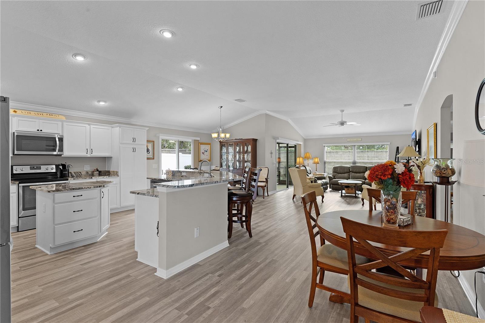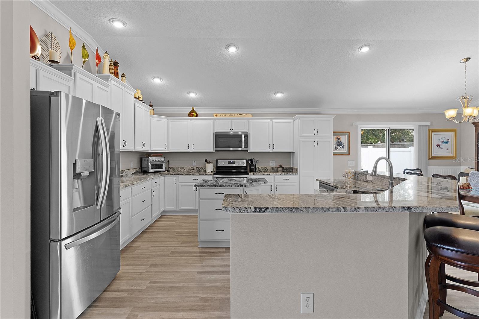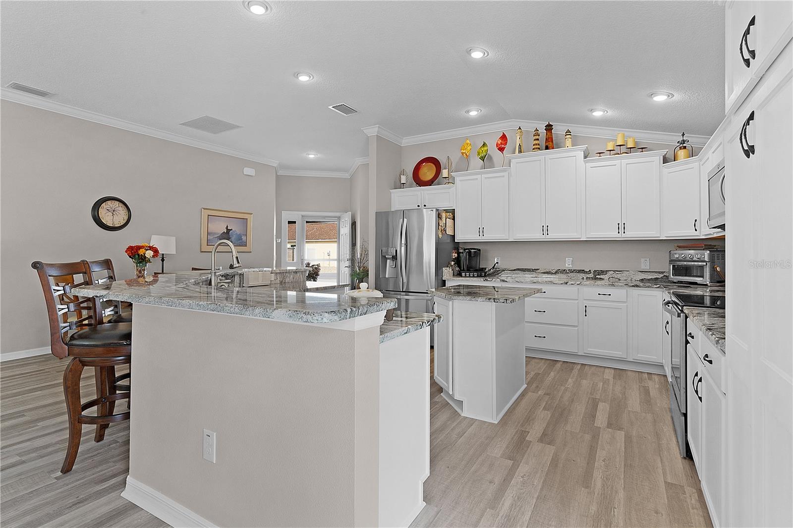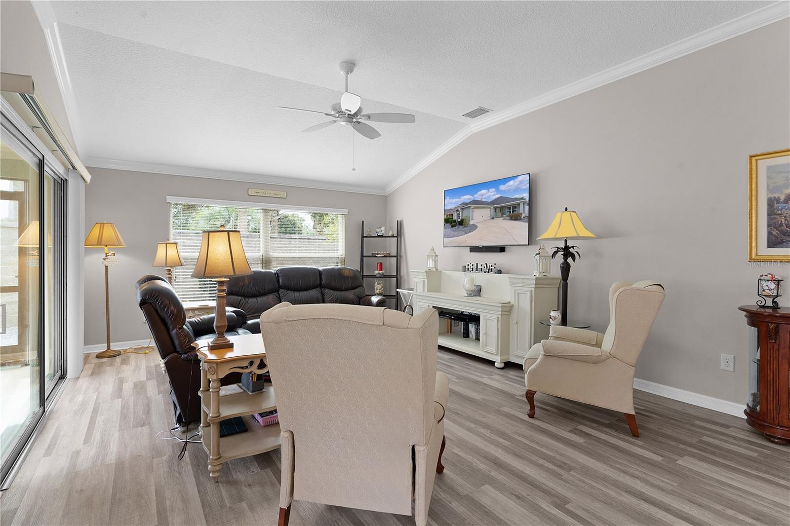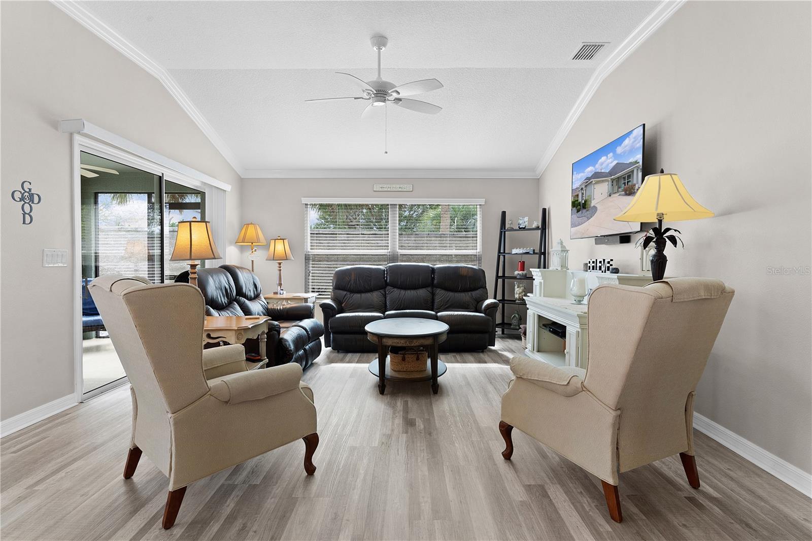 ~ 2016 telhado ~ ~ garagem rara de 2 carros ~ ~ Moldagem da coroa ~ ~ Sala para uma piscina ~ Bem-vindo a esta bela casa de 3/2 estendida em Montclair com uma garagem rara de 2 carros, aninhada na encantadora vila de Woodbury, Phillips Villas. O paisagismo de rochas e arbustos sem manutenção cria uma primeira impressão calorosa e convidativa ao entrar nesta residência impressionante. A casa apresenta pisos laminados elegantes e molduras de coroa, complementadas por uma cozinha dos sonhos com armários escalonados, uma conveniente ilha central para preparação de refeições, bancadas de granito, utensílios de aço inoxidável e uma barra de café da manhã de tamanho generoso, perfeito para entreter jantares grandes ou desfrutar de um café da manhã rápido. A espaçosa sala de jantar acomoda confortavelmente 6 e abre para o pátio lateral através de portas de vidro deslizantes, fornecendo uma vida perfeita para fora do interior. A sala de estar é igualmente impressionante, oferecendo acesso direto ao rastreado em Lanai, que possui um piso pintado e um ventilador de teto para maior conforto. Do Lanai, entre no quintal privado Oasis, um cenário ideal para entreter os hóspedes ou relaxar com sua bebida de noite favorita. Há até espaço para uma piscina! O quarto principal é um retiro tranquilo com um closet, teto da bandeja e ventilador de teto. O banho de suíte atualizado inclui bancadas laminadas pintadas, pias duplas e um chuveiro com um chuveiro atualizado. Os hóspedes se sentirão em casa nos 2 quartos adicionais, um convenientemente localizado do outro lado do salão do banho de hóspedes com laminado pintado e uma combinação de banheira/chuveiro. Para maior conveniência, a casa possui uma lavanderia interna com armários superiores para armazenamento extra e lavadora e secadora de rainha de velocidade. A garagem de 2 carros é funcional e elegante, com seu piso exóxico e escadas no sótão para facilitar o acesso a espaço de armazenamento adicional. Idealmente localizado perto dos centros de recreação Mulberry e First Responseres, o Hospital VA e uma variedade de lojas e restaurantes, esta casa oferece conforto e conveniência. Os moradores de Phillips Villas também gostam de acesso a uma piscina familiar, shuffleboard e tribunais de bocha, tornando essa comunidade o lugar perfeito para chamar de lar.
