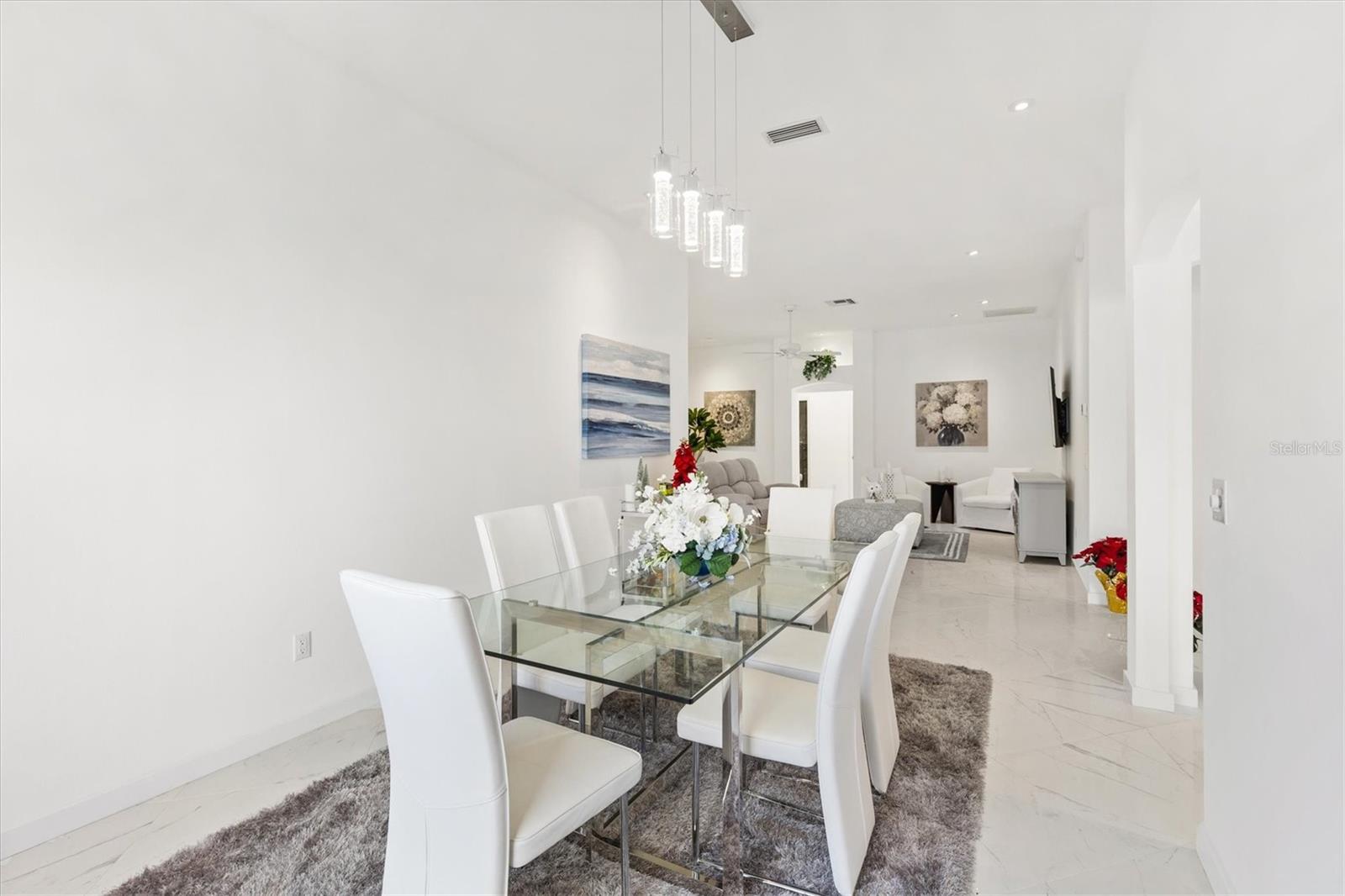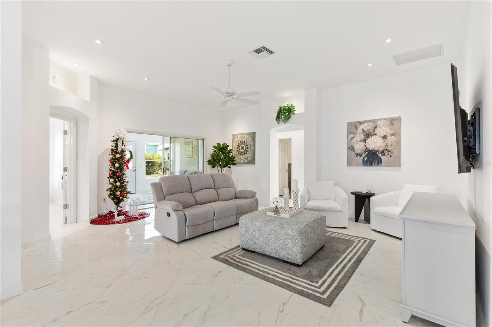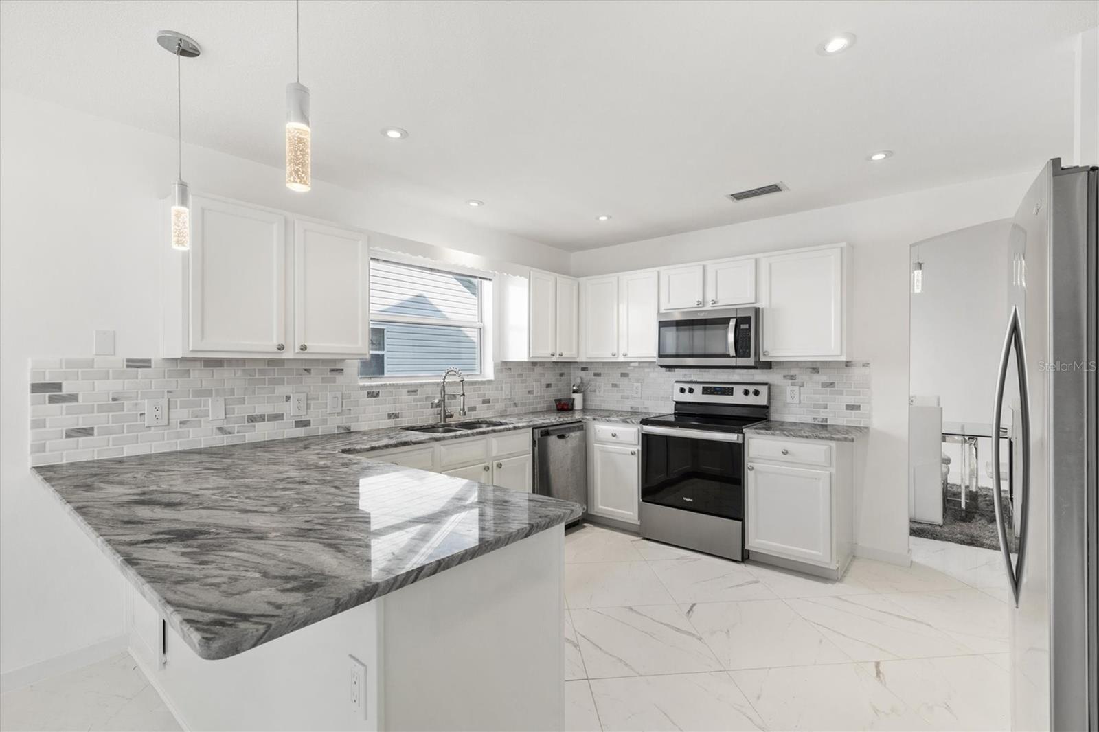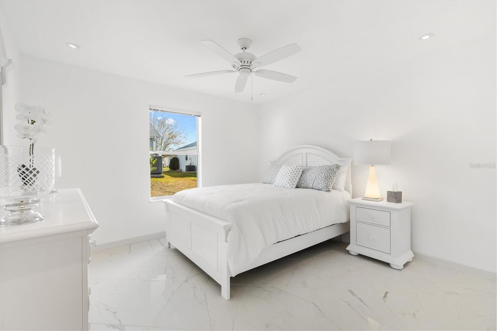 Este modelo Vera Cruz de 1.908 pés quadrados completamente remodelado com 3 quartos e 2 banheiros é IMPERDÍVEL! Esta casa foi atualizada de cima a baixo sem nada ser poupado. Abrir a porta da frente é como entrar no céu com o piso de porcelanato grande e luxuoso instalado em ângulo em toda a casa - sem carpete. Paredes, acabamentos e armários em tons de nuvem em cada esquina. A moderna iluminação LED embutida adiciona ambiente a todos os ambientes com dimmers que podem ser ajustados para combinar com o clima. A cozinha possui eletrodomésticos mais novos de aço inoxidável e bancadas de granito com muito espaço para uma mesa de jantar com vista para as janelas salientes. As áreas de estar e jantar oferecem amplo espaço para entretenimento e relaxamento. O grande quarto principal e o banheiro privativo oferecem o refúgio perfeito com armários flutuantes, um chuveiro de luxo personalizado com um verdadeiro chuveiro de floresta tropical, varinha de mão e um painel de chuveiro de 6 jatos. O quarto principal possui dois closets com bastante espaço para roupas e armazenamento adicional. O Vera Cruz é uma planta dividida. No lado oposto da casa há dois quartos espaçosos e um banheiro de hóspedes que também possui uma penteadeira flutuante e um luxuoso chuveiro personalizado. Mas espere, tem mais! A sala Florida de 13 'x 10' acabada, ao lado da sala de estar, é um lugar perfeito para um escritório, sala de artesanato ou uma sala adicional para entretenimento de TV. A casa está localizada a menos de 800 metros do Tierra del Sol Country Club - com centro recreativo, quadras de tênis, piscina, pistas de bocha e estúdio de teatro. Esta localização central é o coração de The Villages - você desfrutará de viajar menos de 10 minutos de carrinho de golfe até Sumter Landing e Spanish Springs Town Squares, além de muitas lojas e restaurantes nas proximidades. O título está pago. O HVAC e o aquecedor de água foram substituídos em 2022, e o telhado foi substituído em 2016. Entre em contato e agende hoje mesmo seu tour privado por esta casa lindamente remodelada!