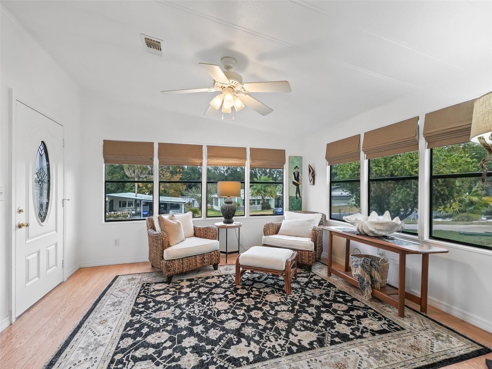 Recalibração motivada ao preço do vendedor. A/C 2023, sem vínculo. Esta bela casa fabricada de 2 quartos e 2 banheiros oferece 1.400 pés quadrados de espaço bem projetado e fica em uma colina encantadora, oferecendo uma vista elevada e privacidade adicional. A entrada da frente recebe você em uma sala brilhante e convidativa de 4 temporadas, com portas de celeiro. Ao entrar na sala de estar, você tem a opção de privatizar a sala de quatro temporadas, fechando as elegantes portas do celeiro. A cozinha espaçosa apresenta uma janela de sacada que enche a área com luz natural enquanto entretenam seus convidados na área de jantar, aparelhos mais recentes A espaçosa Lanai é aprimorada com piso de trac de seixos duráveis e inclui uma lavanderia conveniente com muito armazenamento. O quarto principal e o suíte apresentam um chuveiro de caminhada e um armário de linho, você pode sair dos controles deslizantes que o convidam para fora para uma espaçosa Lania, com uma bela vista dos majestosos carvalhos. O quarto de hóspedes é notavelmente espaçoso e inclui um closet. Para maior conveniência, esta casa possui uma garagem para carrinho de golfe, ideal para armazenar seu carrinho de golfe ou itens extras. Esta casa combina conforto, funcionalidade e uma localização pacífica e elevada. O carrinho de golfe está disponível para compra se estiver interessado.
