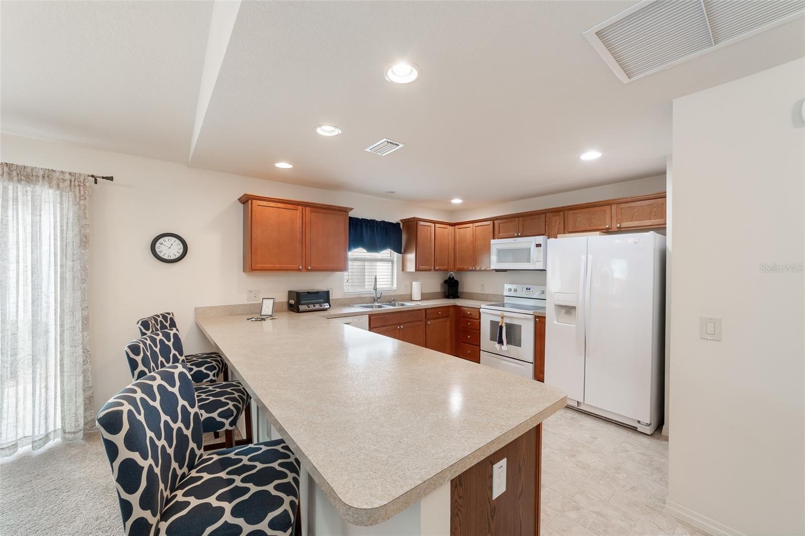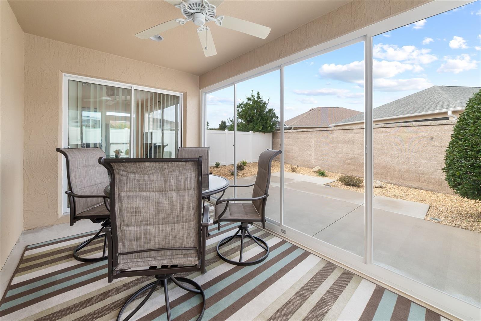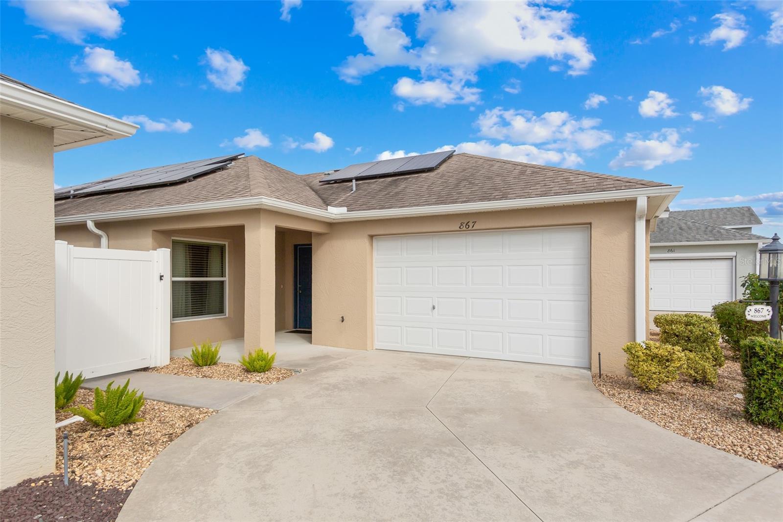 Ajuste do preço !!! Pátio chave na mão !! Pátio de baixa manutenção, sem roupa de cama de grama e roupas de cama e completamente cercadas. O Villa é uma casa de dois quartos de dois quartos em uma ótima localização. O quarto primário tem um closet de tamanho agradável, portas de vidro deslizantes do quarto primário até o lanai fechado. O chuveiro no banho primário tem uma porta de vidro. O quarto de hóspedes é privado com uma porta de bolso fechando -a da área de estar, o banheiro de hóspedes tem uma combinação de banheira de chuveiro e há um armário de linho no corredor. Ambos os quartos têm colchões de tamanho completo. A área de estar e jantar tem muito espaço para entretenimento e prazer. Os móveis foram comprados recentemente. Há também portas de vidro deslizantes da área de estar para o lanai e um controle deslizante da área de jantar até o pátio lateral. O Lanai foi recentemente fechado com controles deslizantes de vidro e telas! Isso lhe dá um espaço de vida adicional. A cozinha está completamente abastecida com tudo o que você pode esperar ou precisar. Barra de café da manhã, onde você pode ter espaço para comer adicional completo com bancos confortáveis de bar. Há energia solar que é paga e não há vínculo. Você tem uma taxa mensal de CDD de US $ 199. Lavadora/secadora localizada na garagem. Afundamento da utilidade na garagem. Carrinho de carro e golfe cabem na garagem de um carro! Há muitas compras e refeições na área, juntamente com inúmeras piscinas e campos de golfe. Você está localizado entre o Lake Sumter Landing e o Brownwood Paddock, onde há entretenimento noturno grátis.